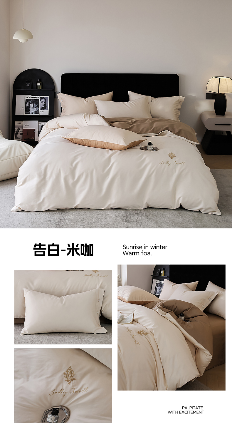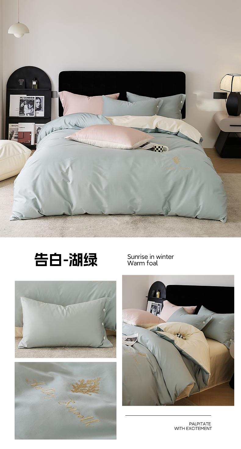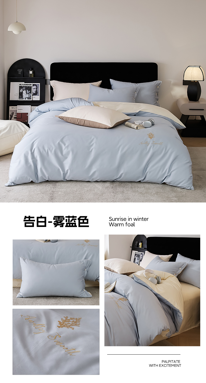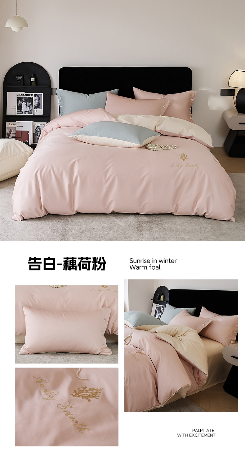 【品牌直发】加倍生活 60支长绒棉纯棉珊瑚绣花款四件套-告白系列 7色可选 yc0205006