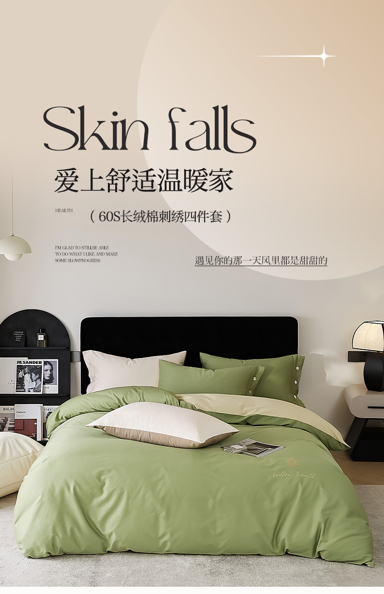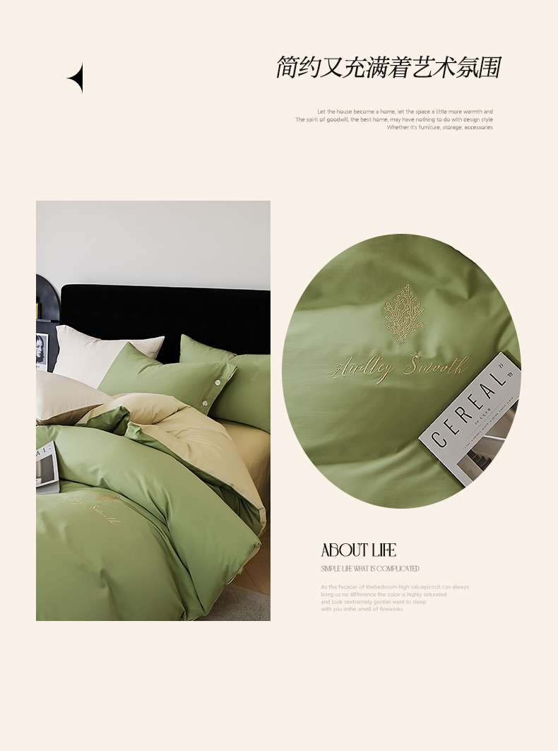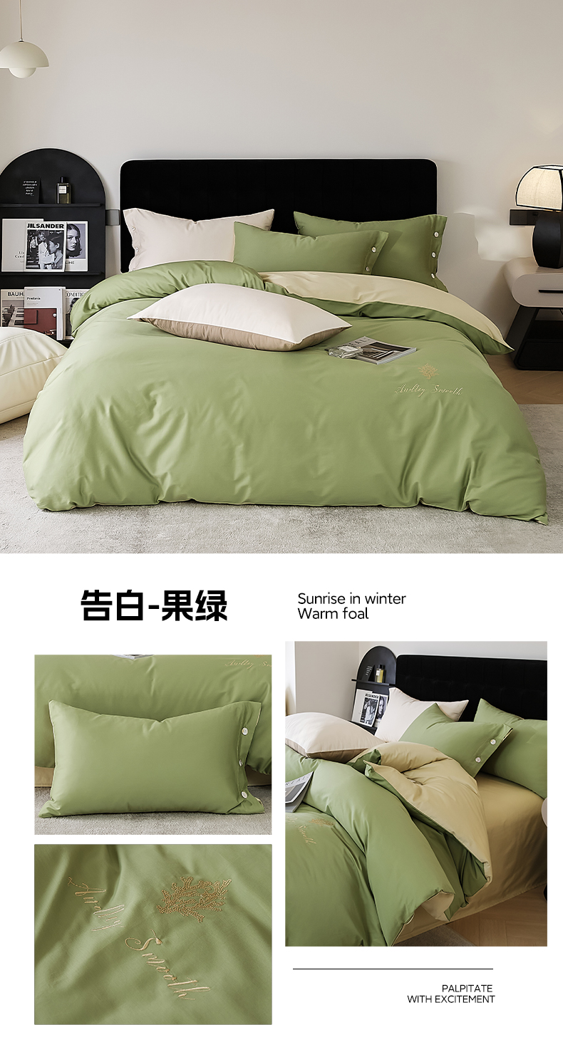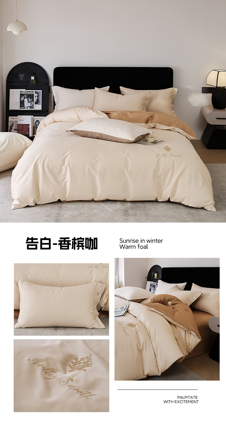 【品牌直发】加倍生活 60支长绒棉纯棉珊瑚绣花款四件套-告白系列 7色可选 yc0205006
