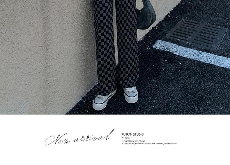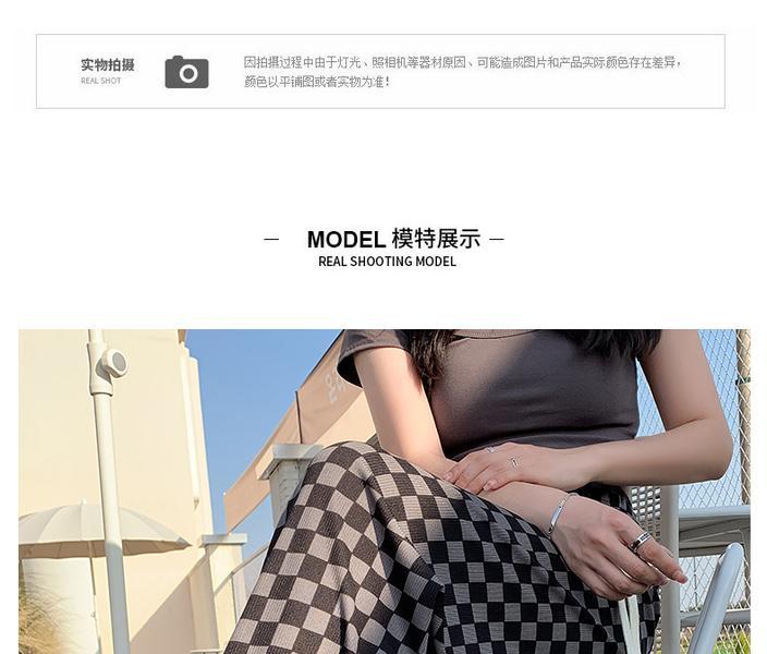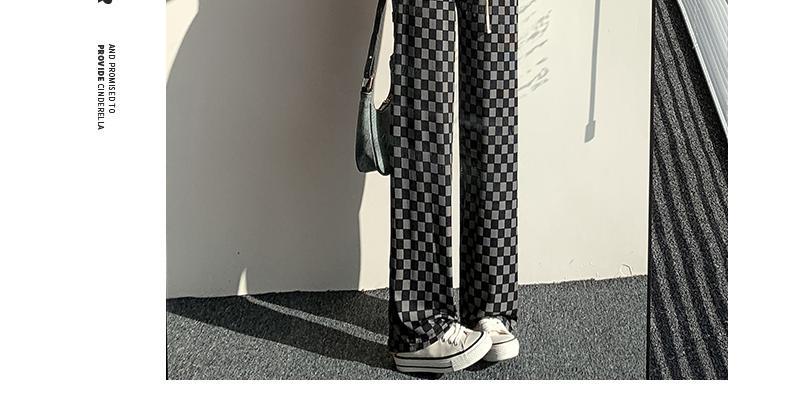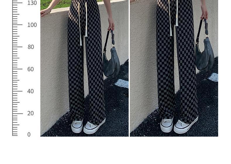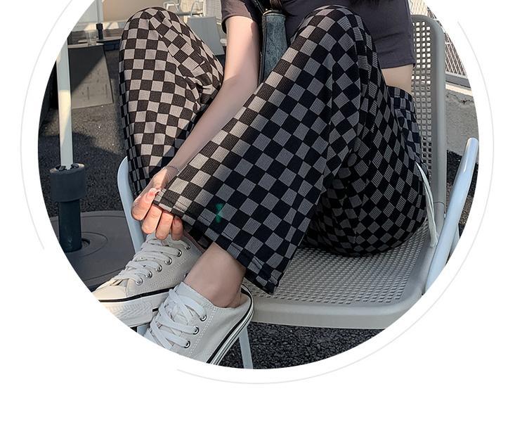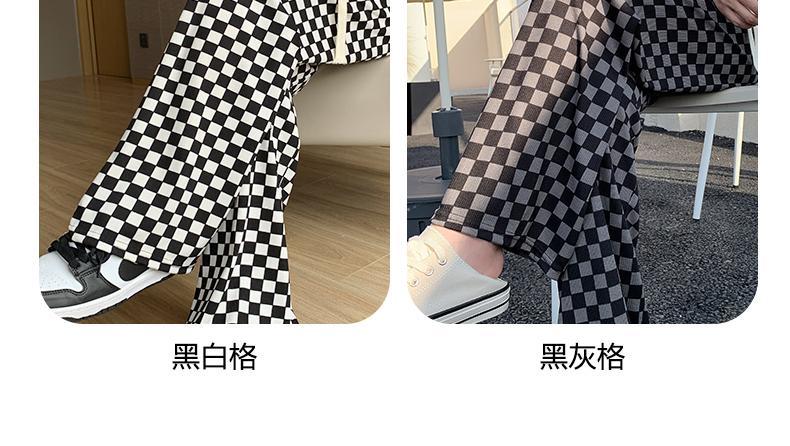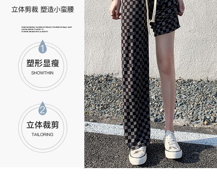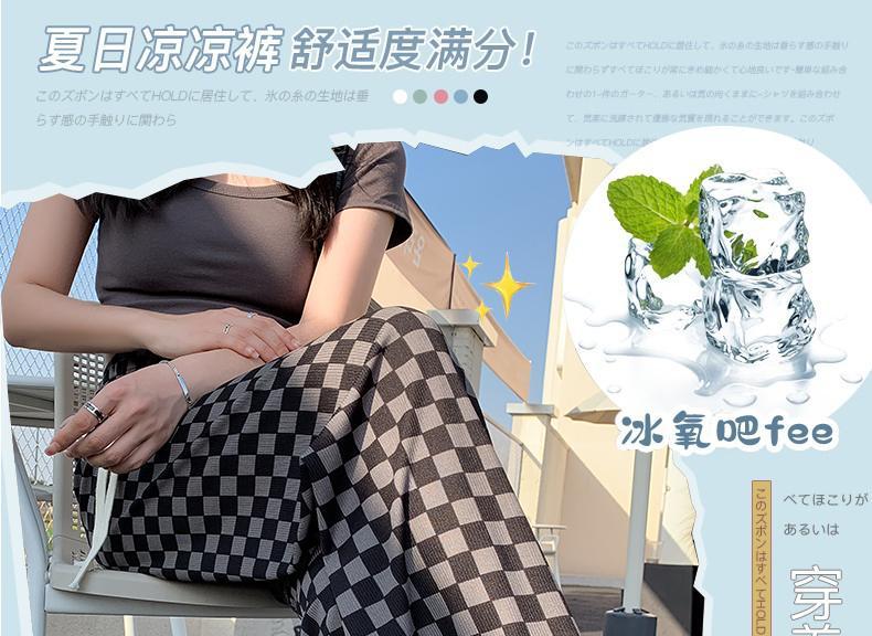 黛唯梵冰丝阔腿裤女夏季薄款2022新款高腰垂感小个子休闲直筒棋盘格裤子