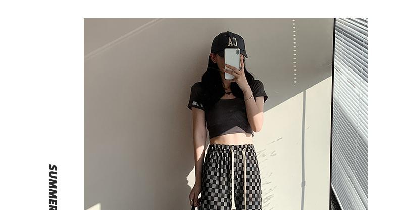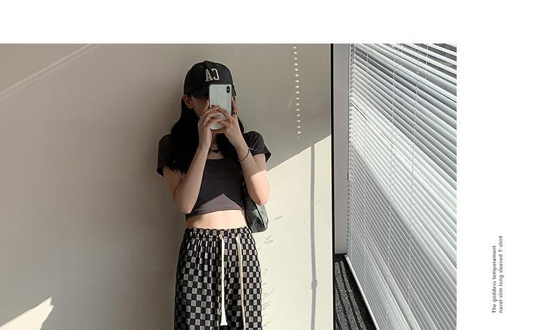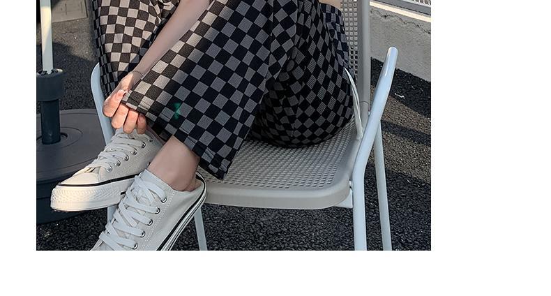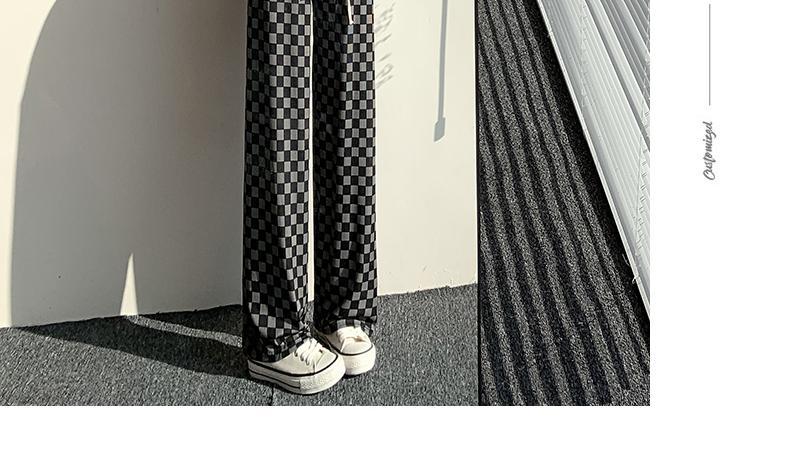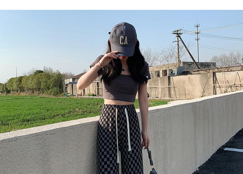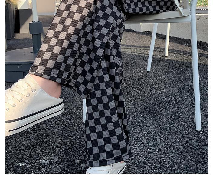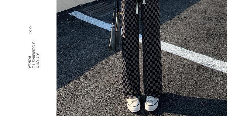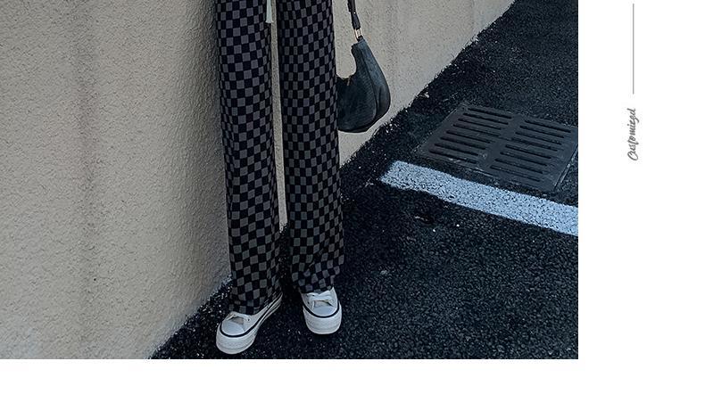 黛唯梵冰丝阔腿裤女夏季薄款2022新款高腰垂感小个子休闲直筒棋盘格裤子