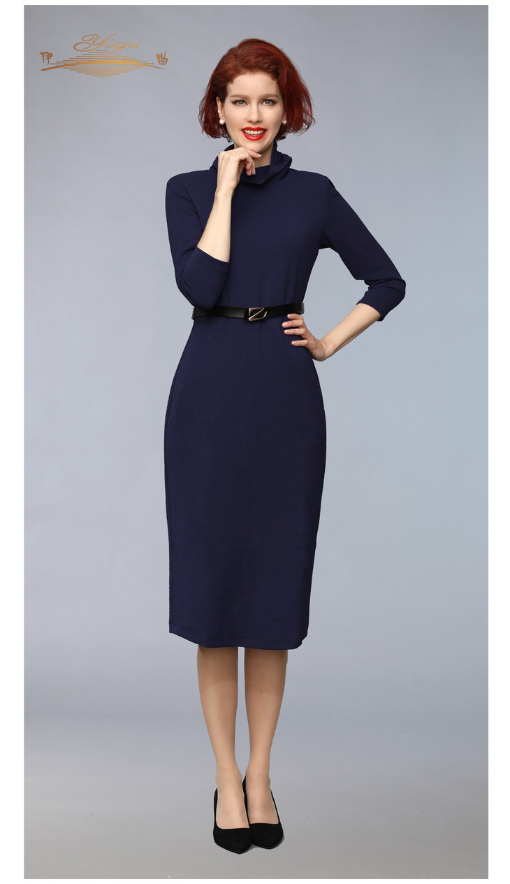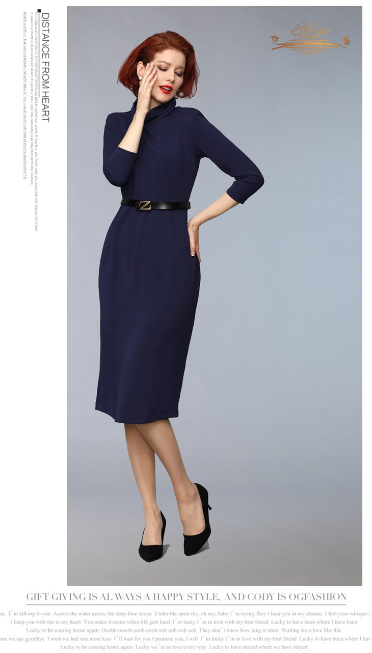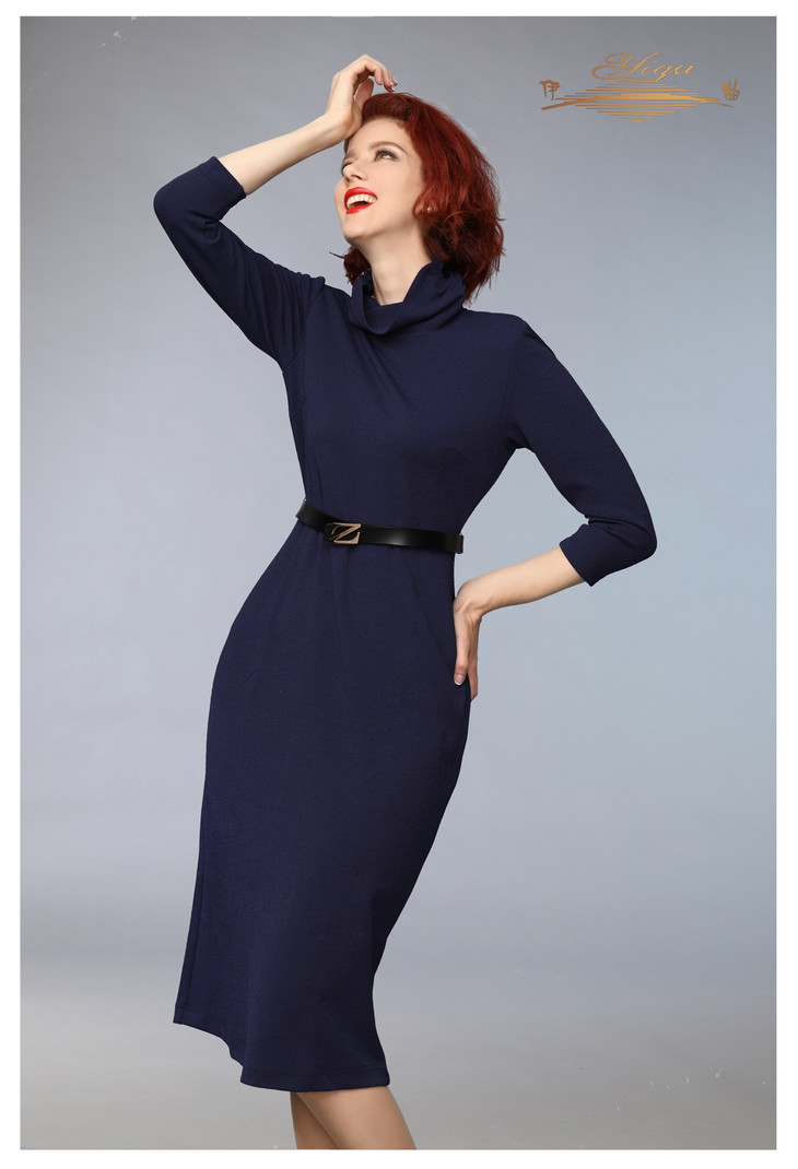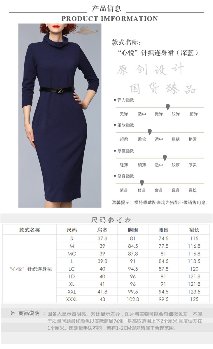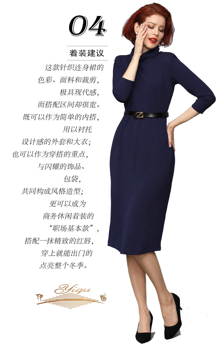 【特惠】YIQU | “心悦”针织连身裙(深蓝)PT