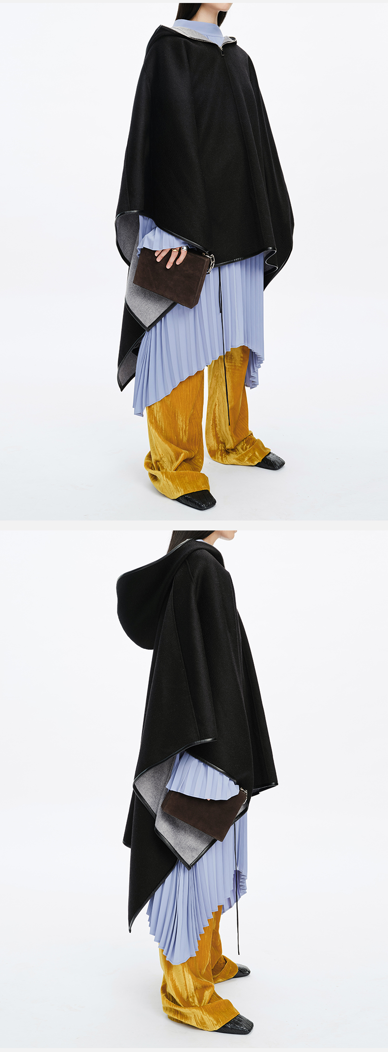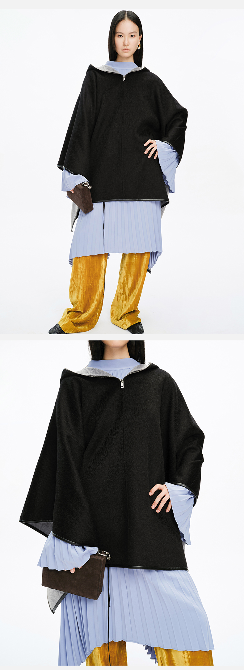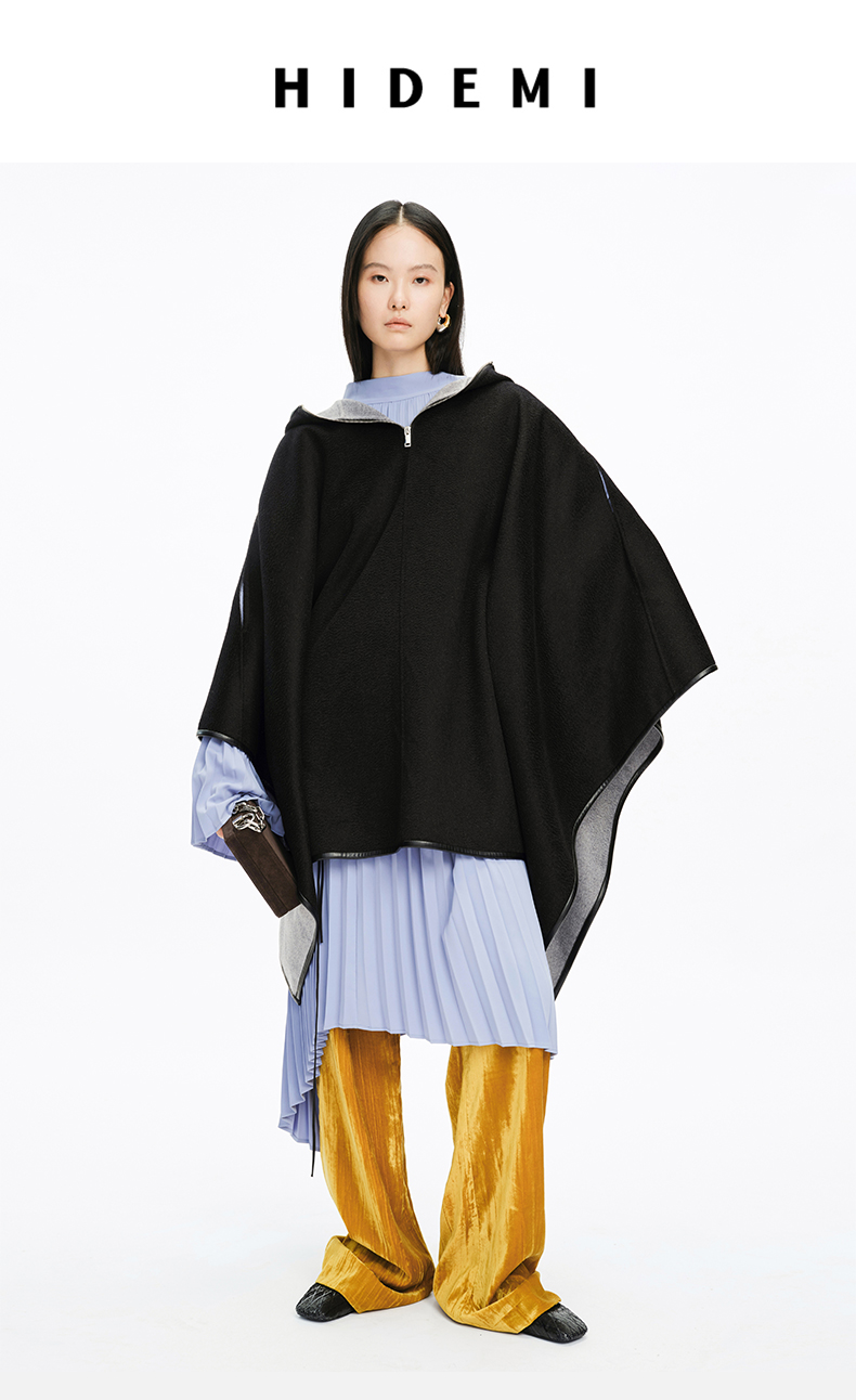 HIDEMI 水波双面双色羊毛拉链廓形大斗篷大衣