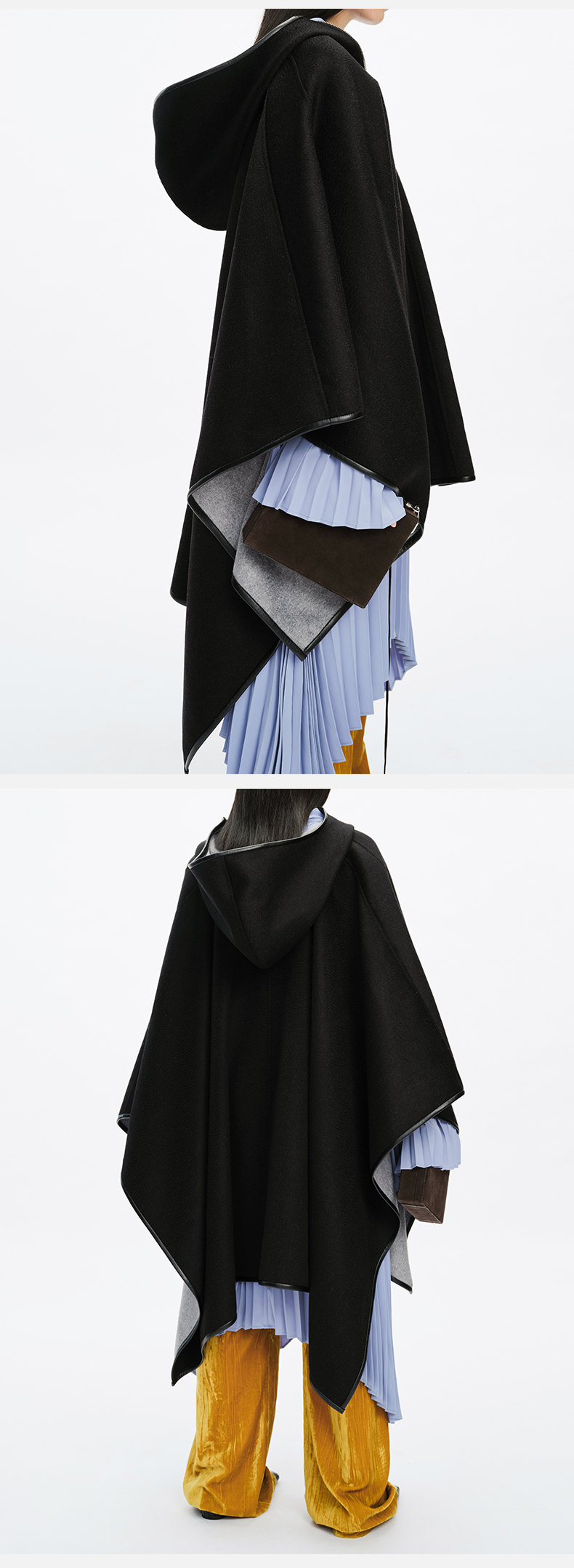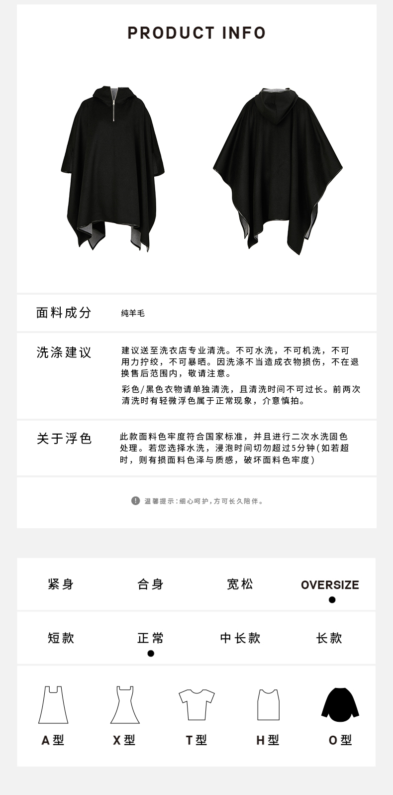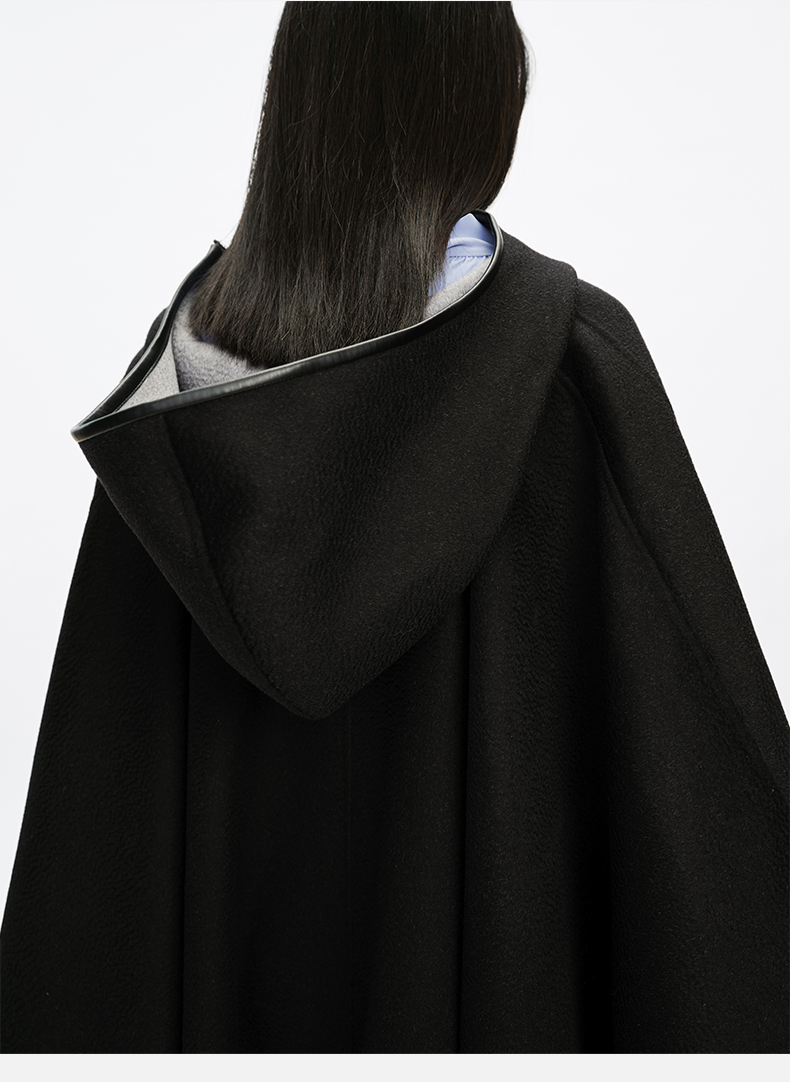HIDEMI 水波双面双色羊毛拉链廓形大斗篷大衣