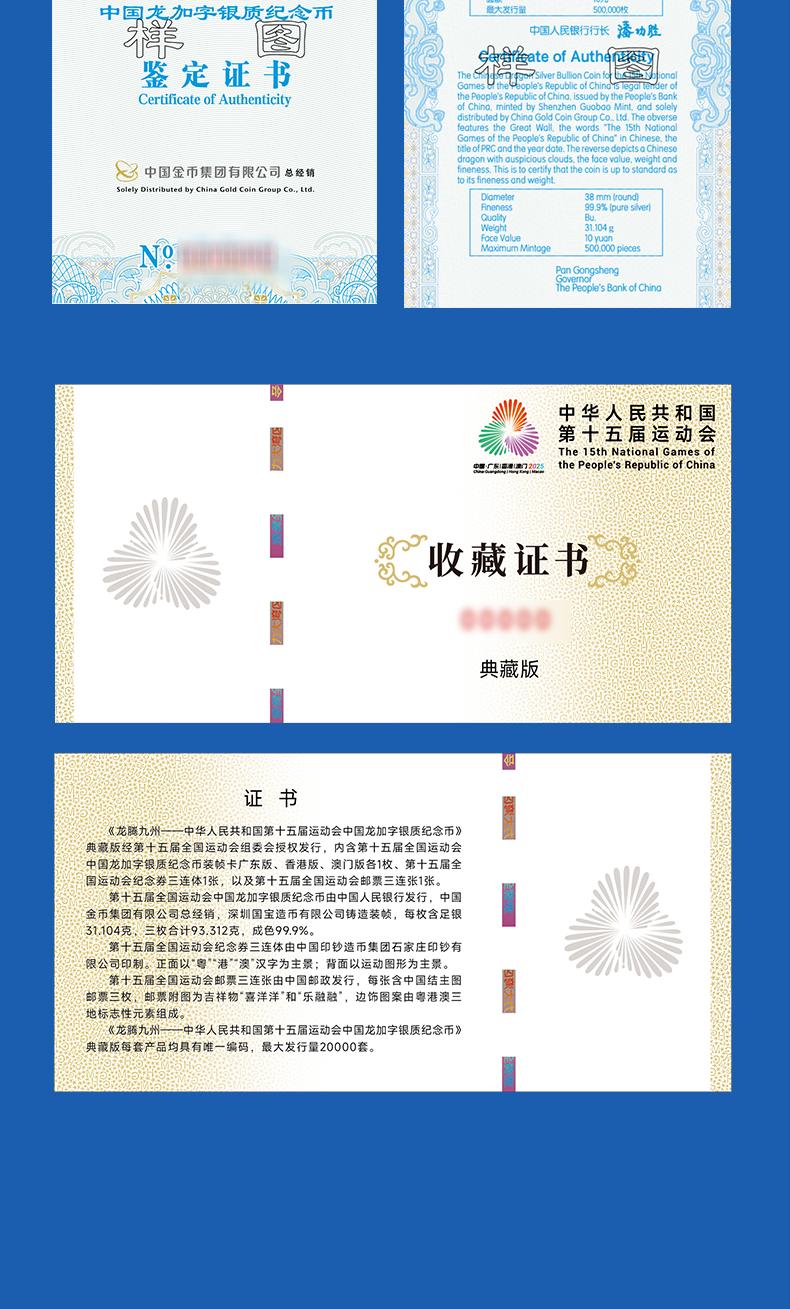 龙腾九州-第十五届运动会中国龙加字银质纪念币典藏版