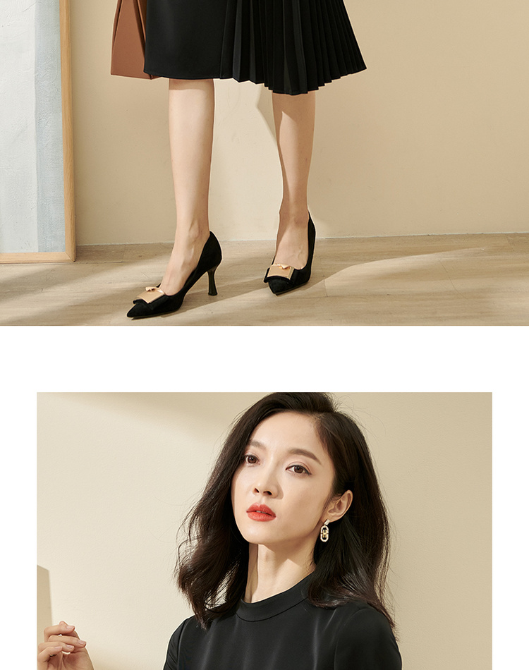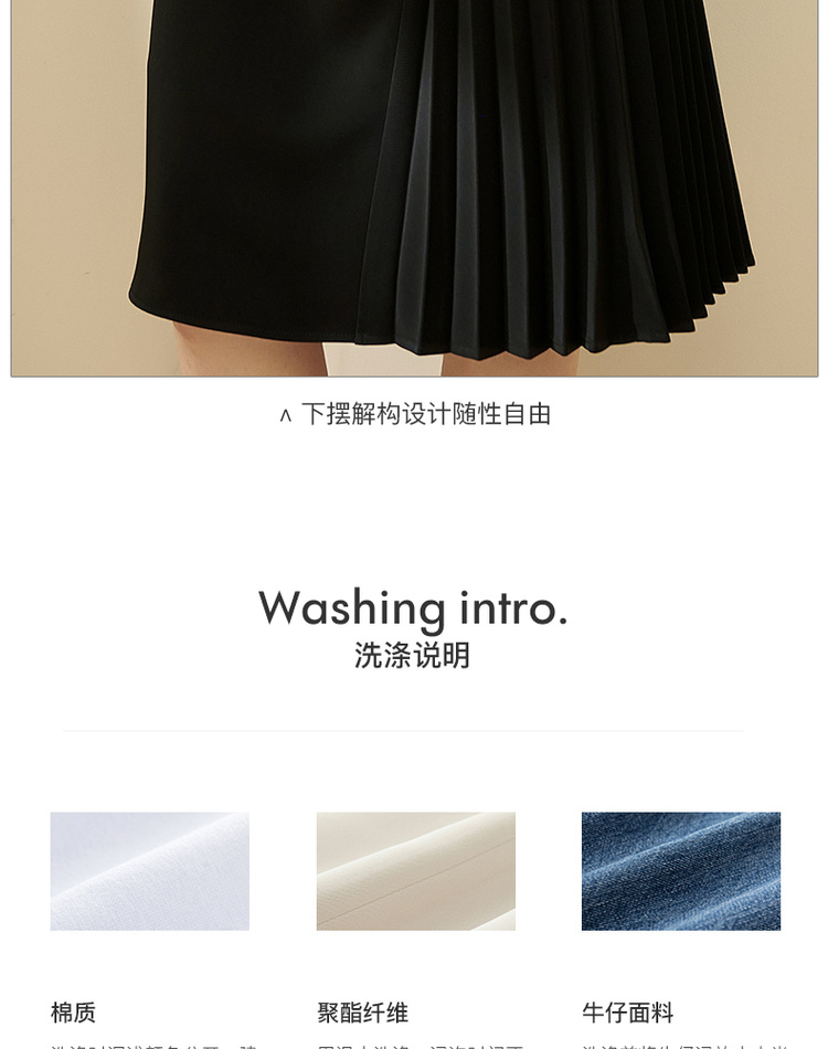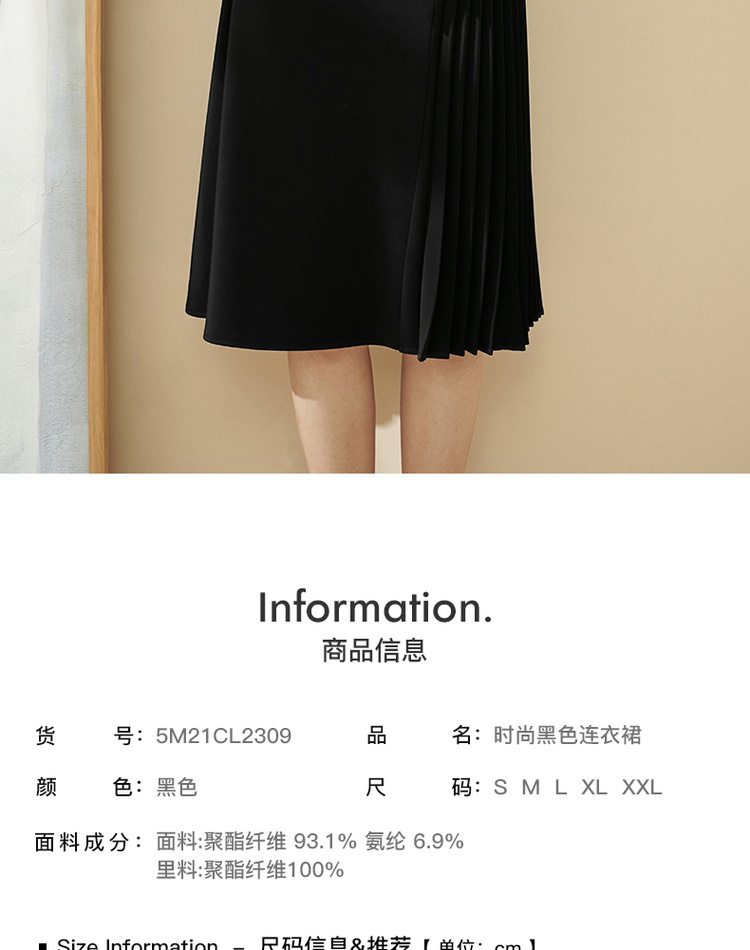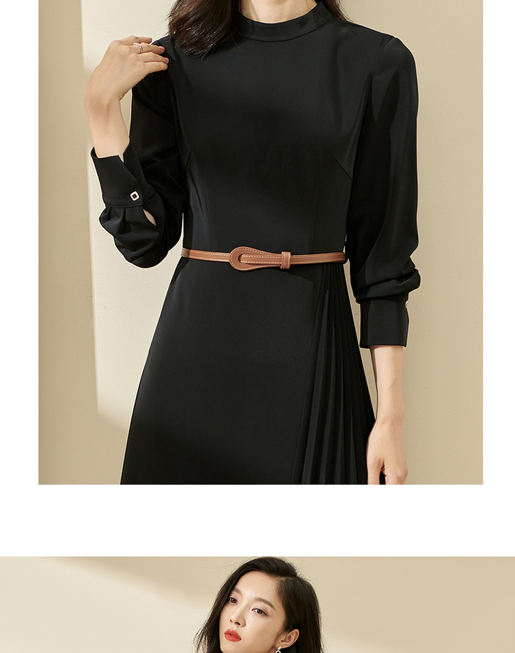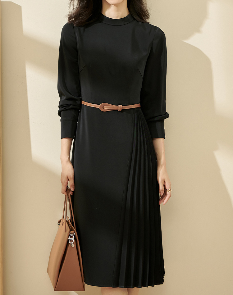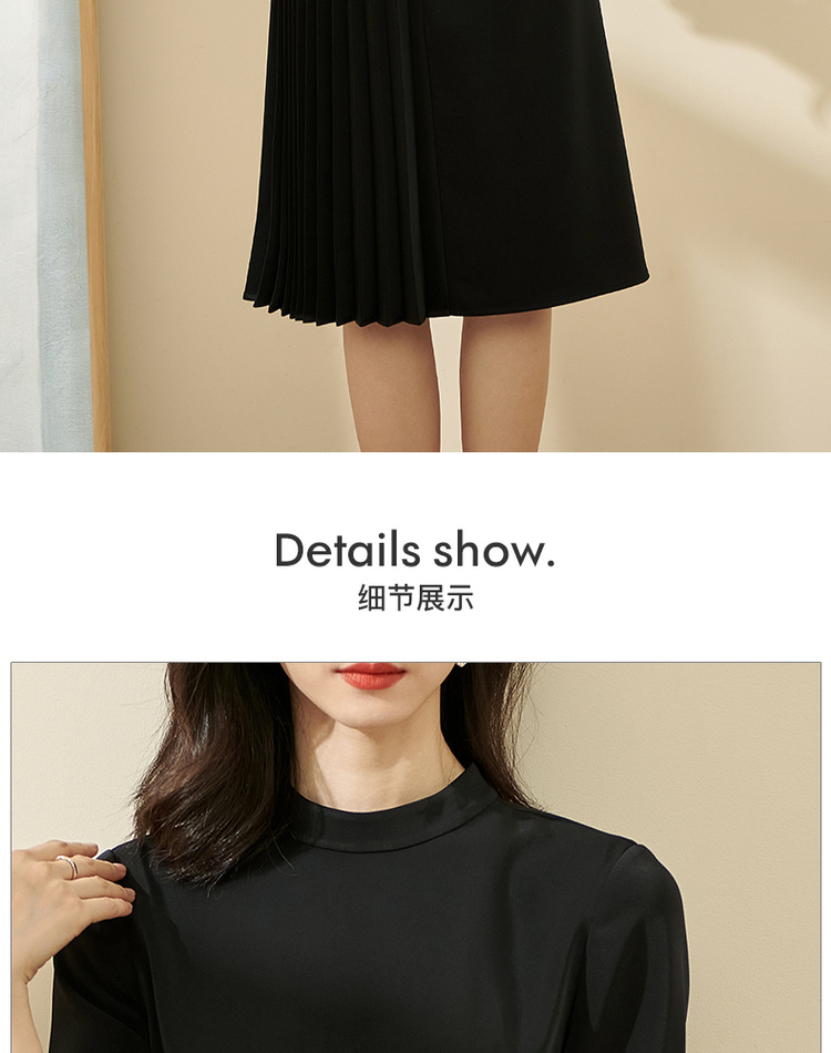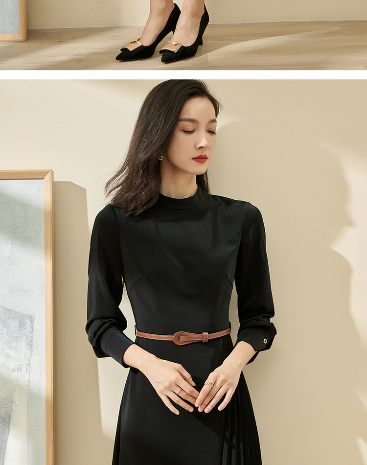 米思阳知性轻熟连衣裙小众不规则百褶2025新款中长款黑色裙子2309