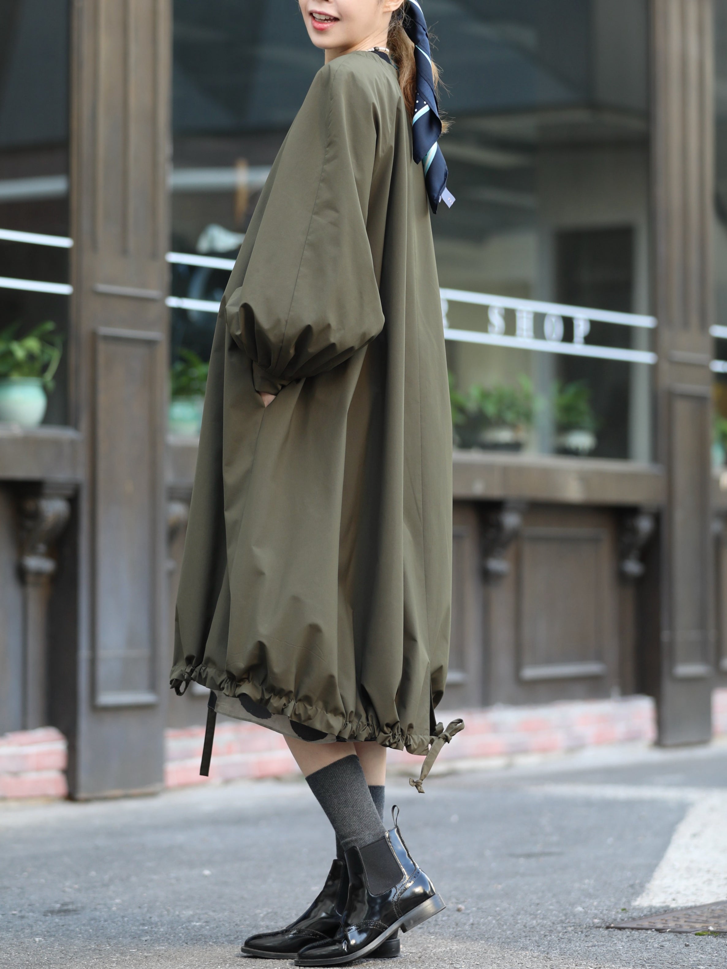TYNVIE 气球袖防水抽绳派克大衣-橄榄色