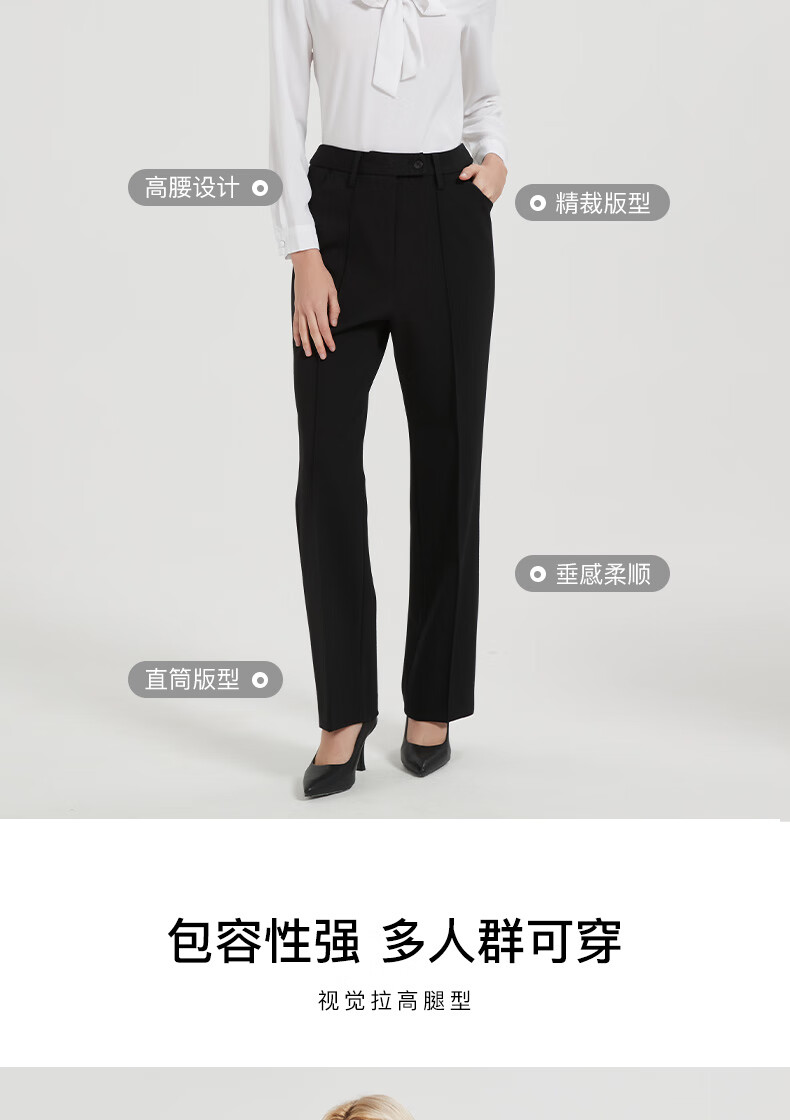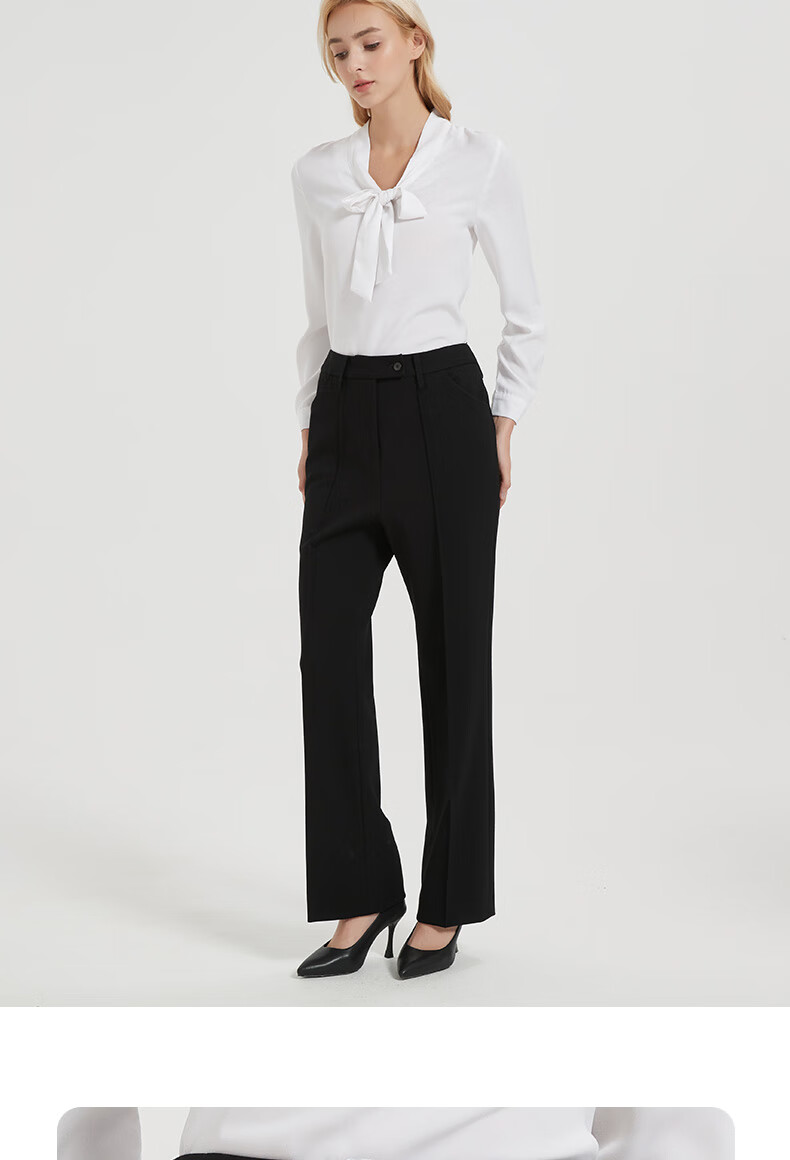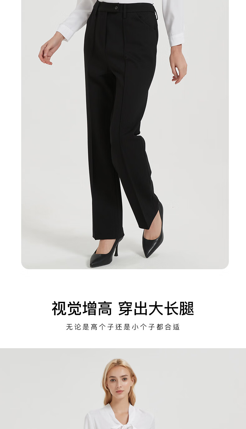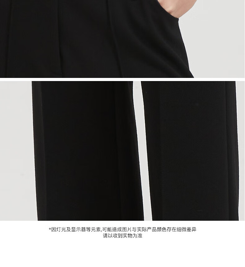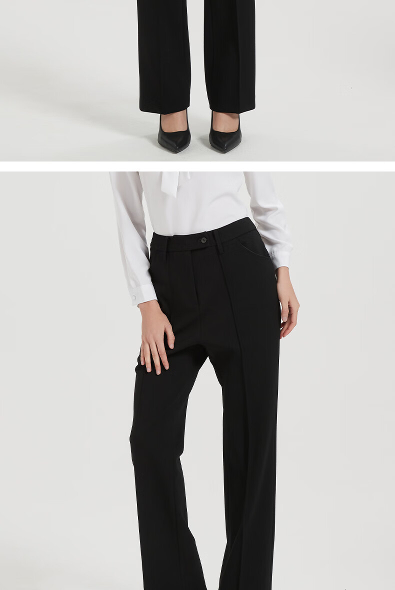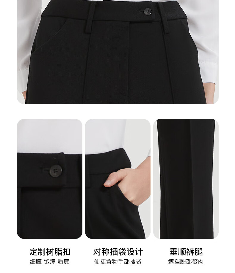 皮尔卡丹女黑色直筒裤西裤垂感简约通勤休闲职业九分裤C44TL77B0