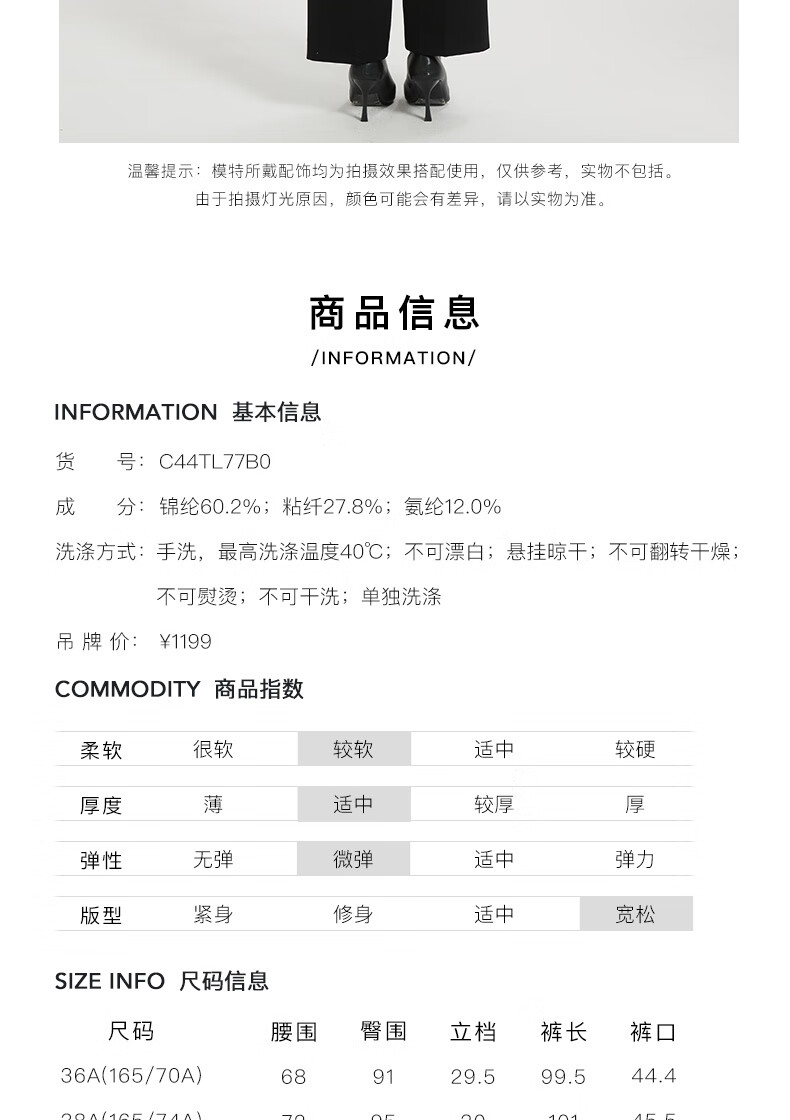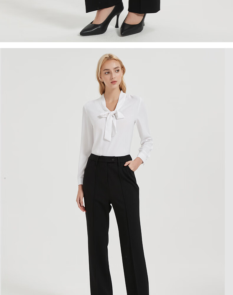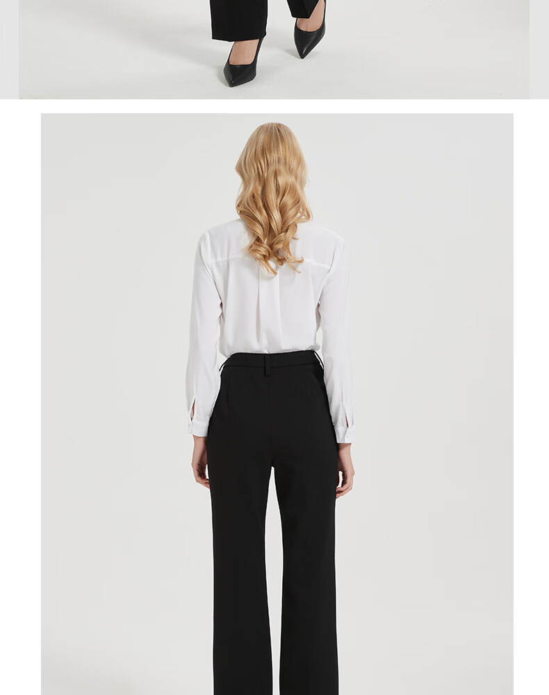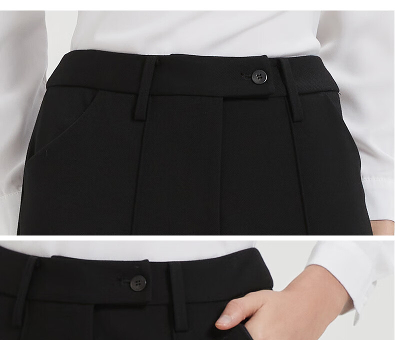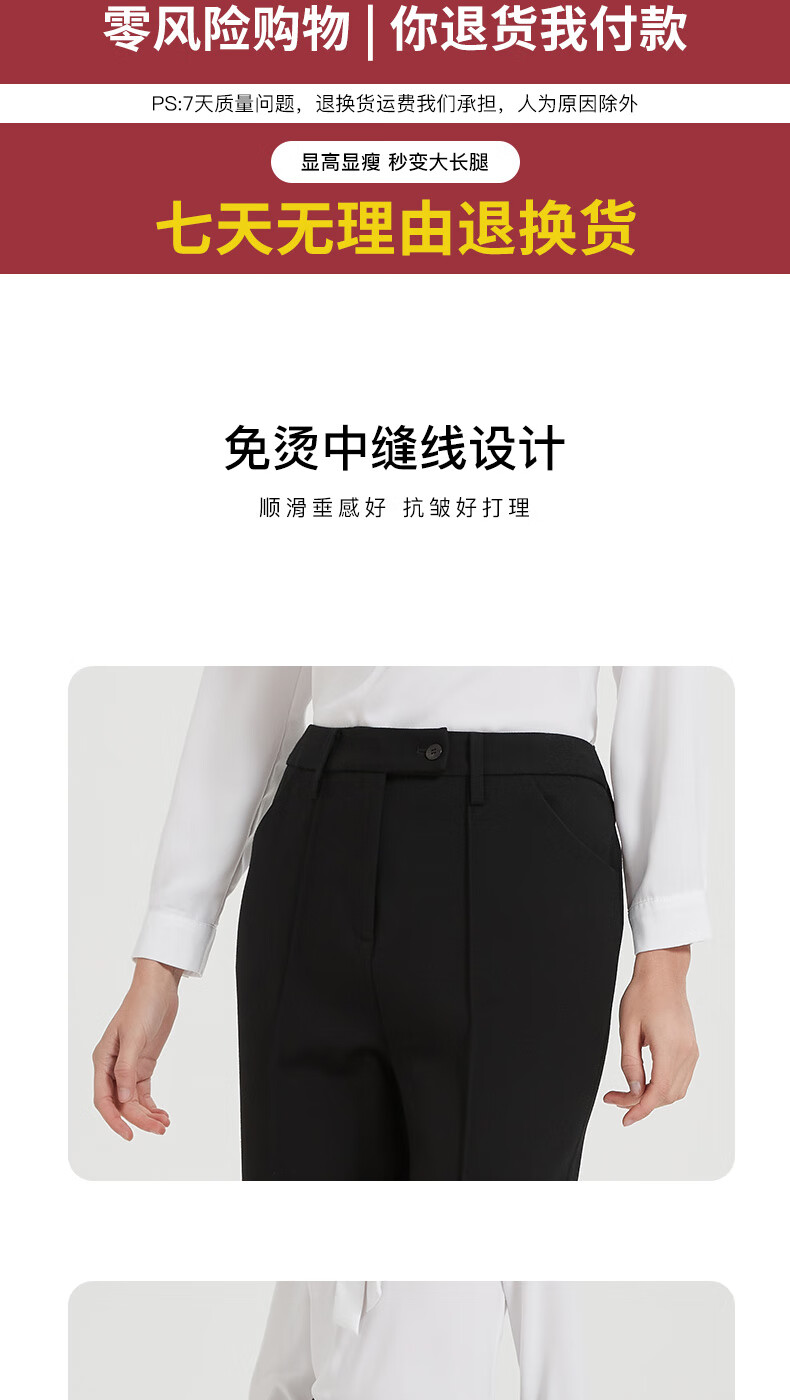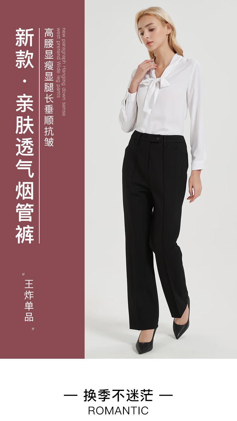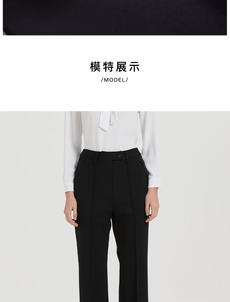 皮尔卡丹女黑色直筒裤西裤垂感简约通勤休闲职业九分裤C44TL77B0