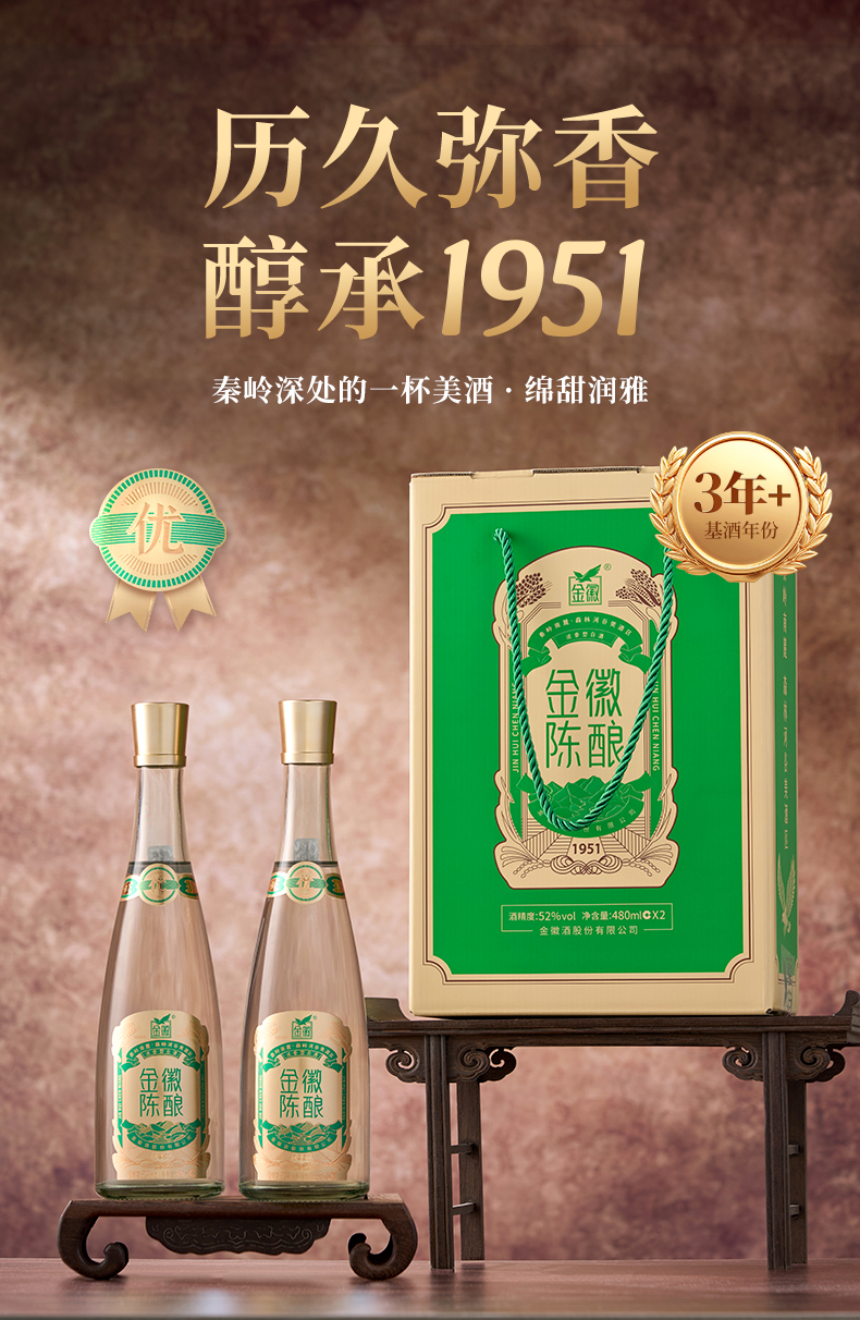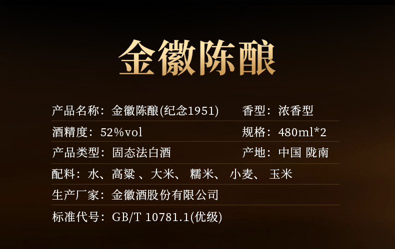 金徽酒 金徽陈酿·纪念1951 52度480ml*2瓶 浓香型白酒