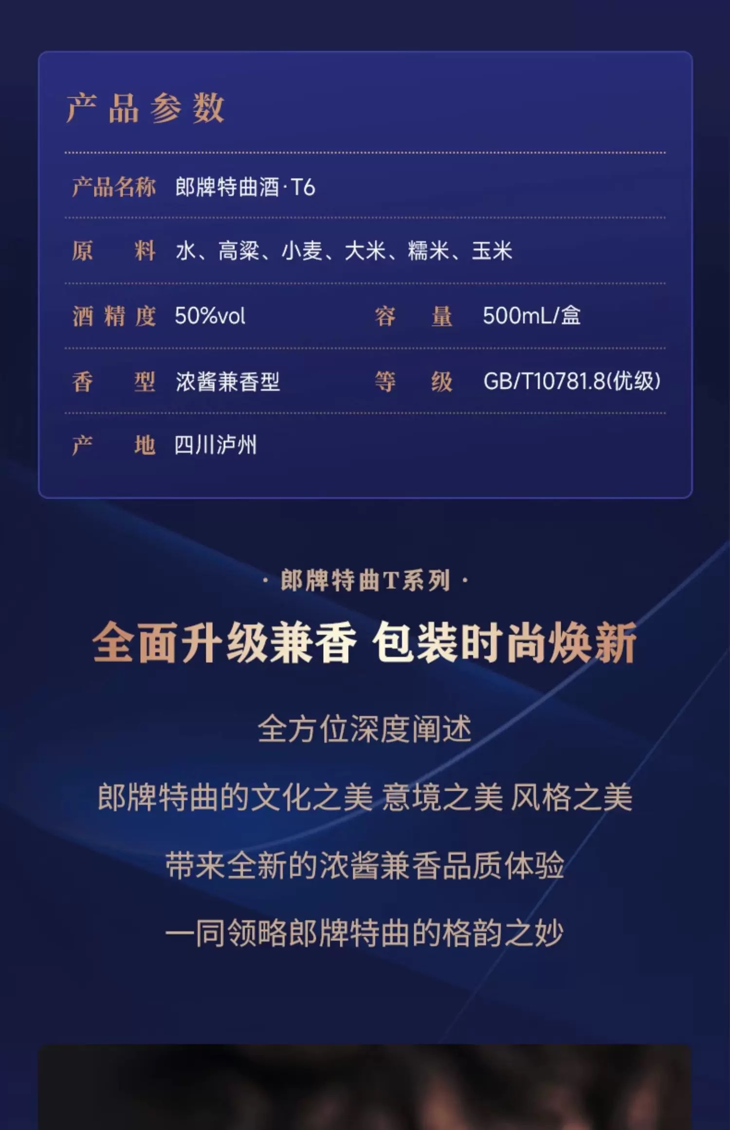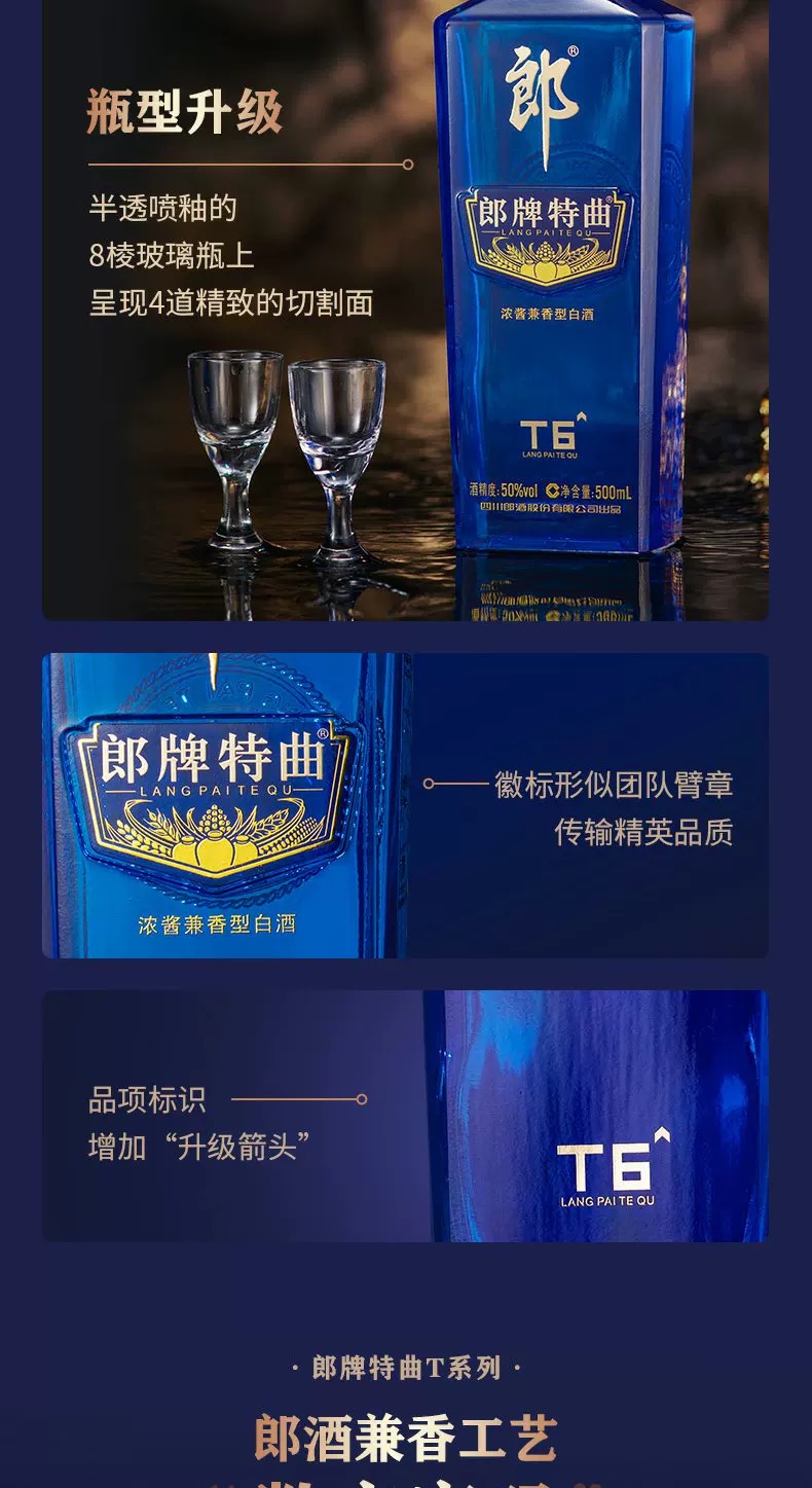 郎酒 郎牌特曲酒·T6 浓酱兼香型白酒 50度 500mL x6 整箱装