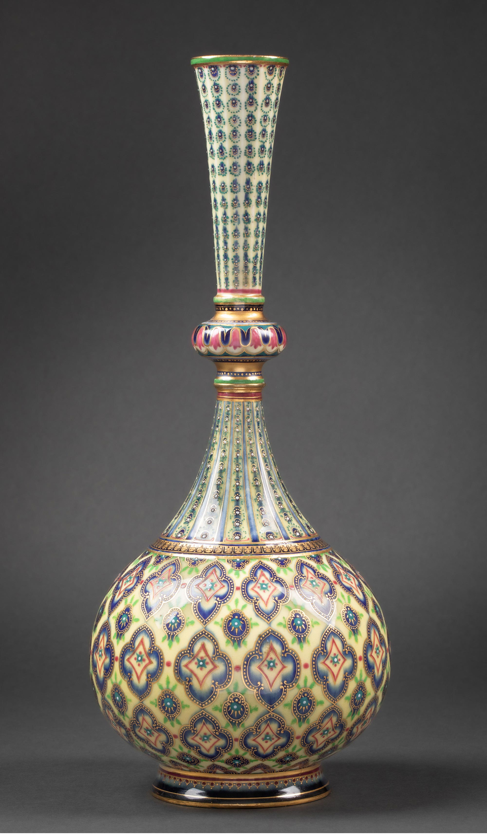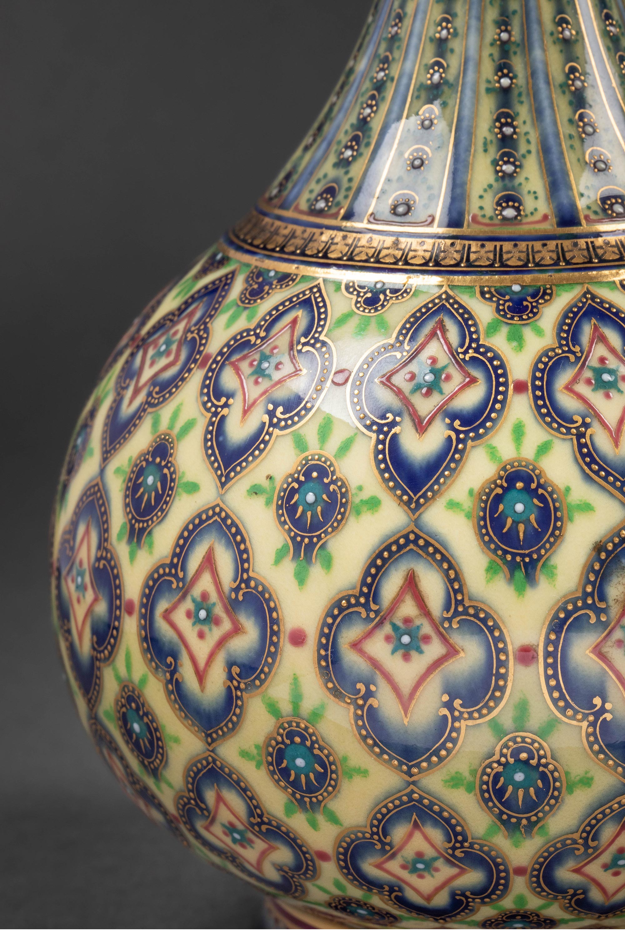 独角鹿西洋古董 1885-1887年代法国御窑出品Carrier-Belleuse设计波斯风格手绘描金Bouteille Persane器形瓷瓶一对