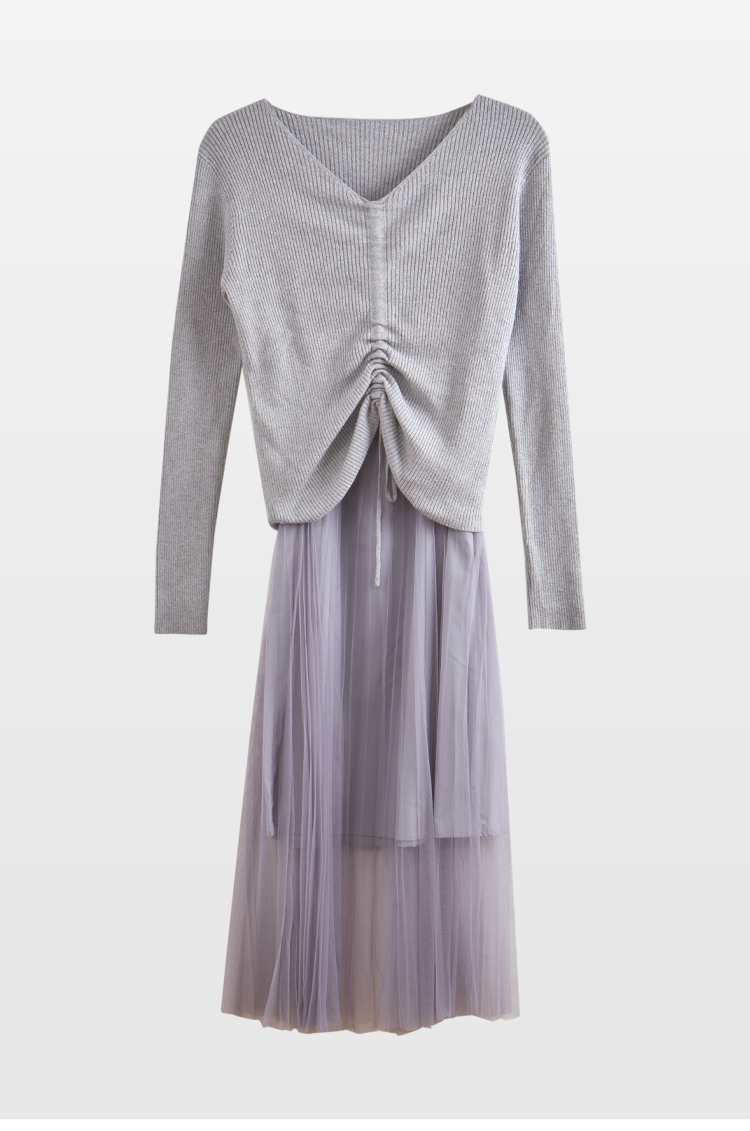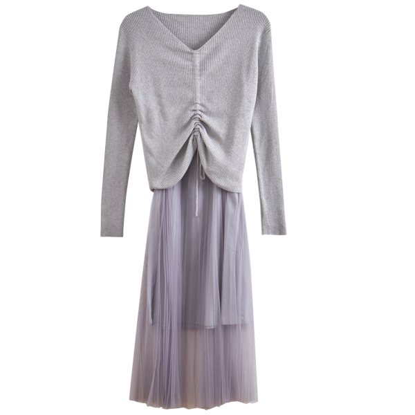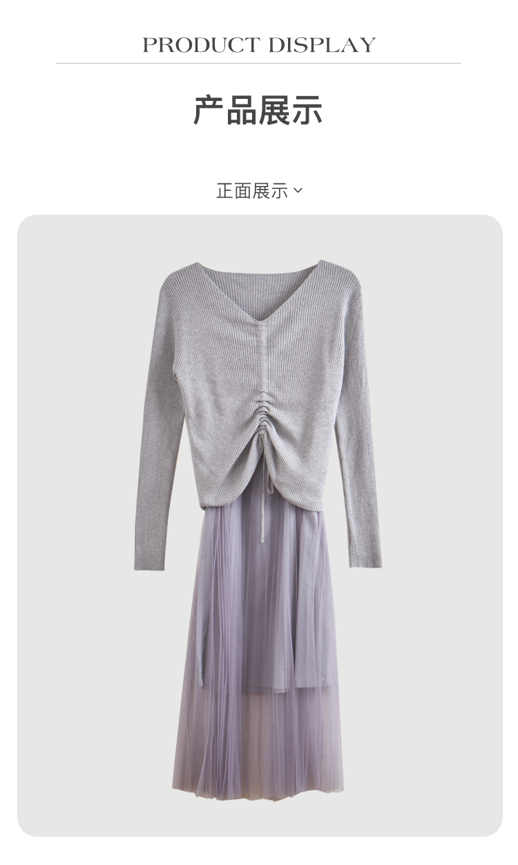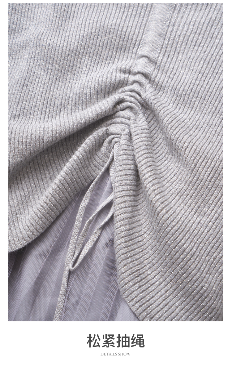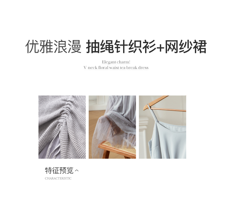 欧芮儿V领针织衫加百褶网纱裙很仙的两件套洋气网红套装女新裙子春