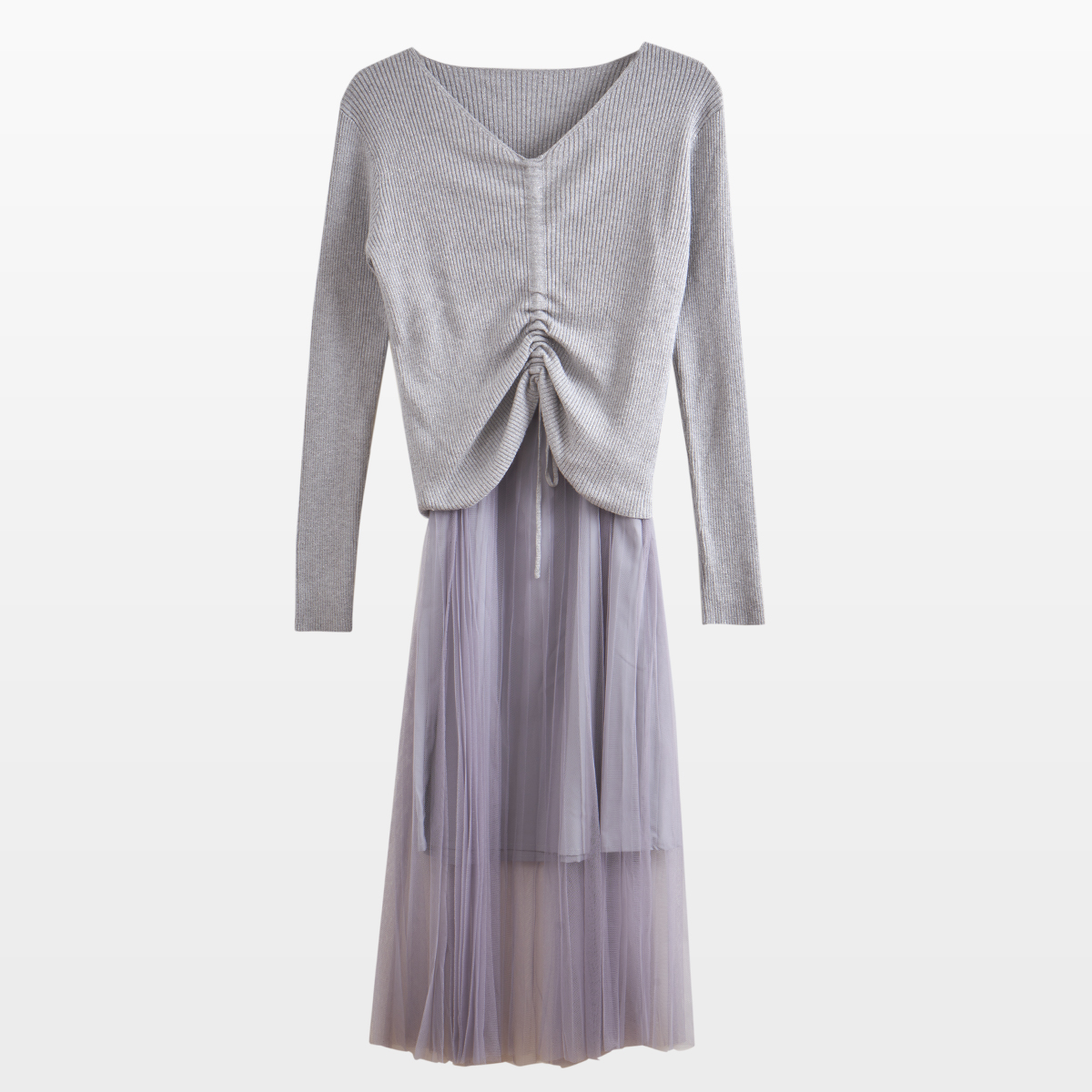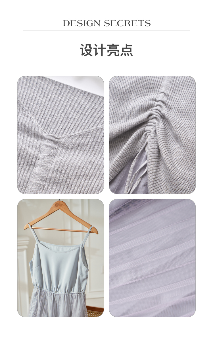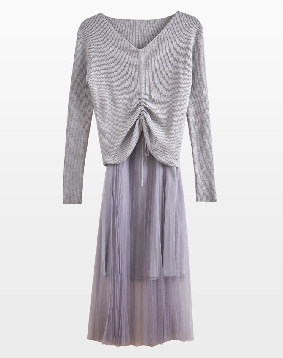 欧芮儿V领针织衫加百褶网纱裙很仙的两件套洋气网红套装女新裙子春