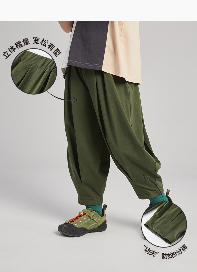 漫画家潮童装男童凉感防蚊裤冰感凉凉棉速干“功夫”儿童9分裤子