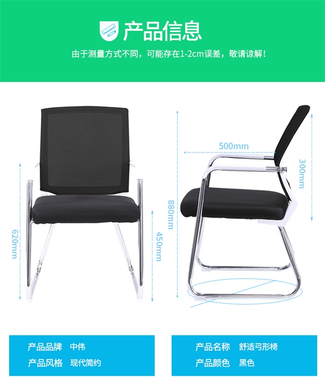 中伟电脑椅会议桌办公椅家用网布椅子-黑色