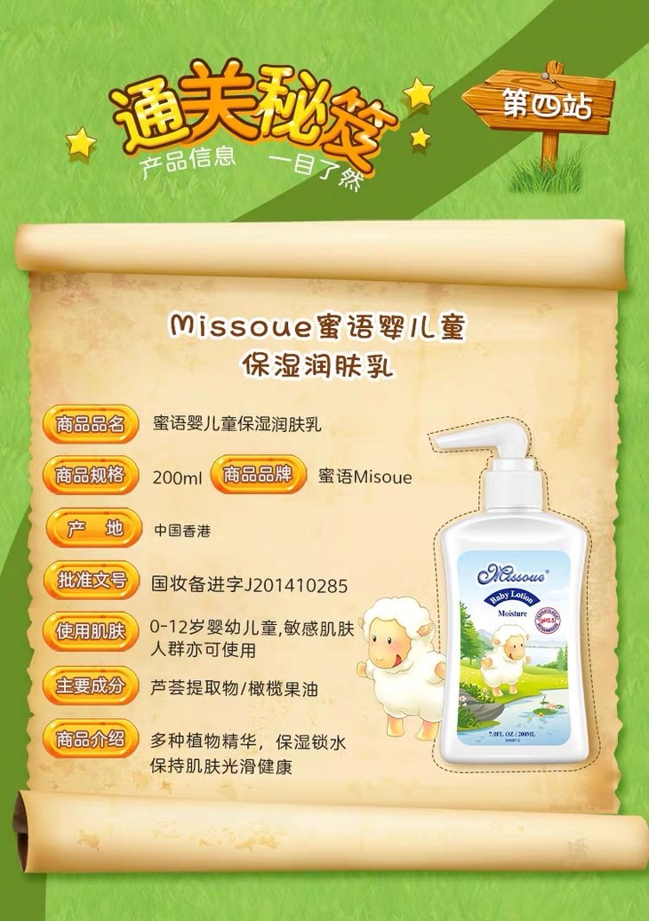 澳洲Missoue蜜语婴儿润肤乳 滋润保湿儿童润肤露(绵羊霜)200ml