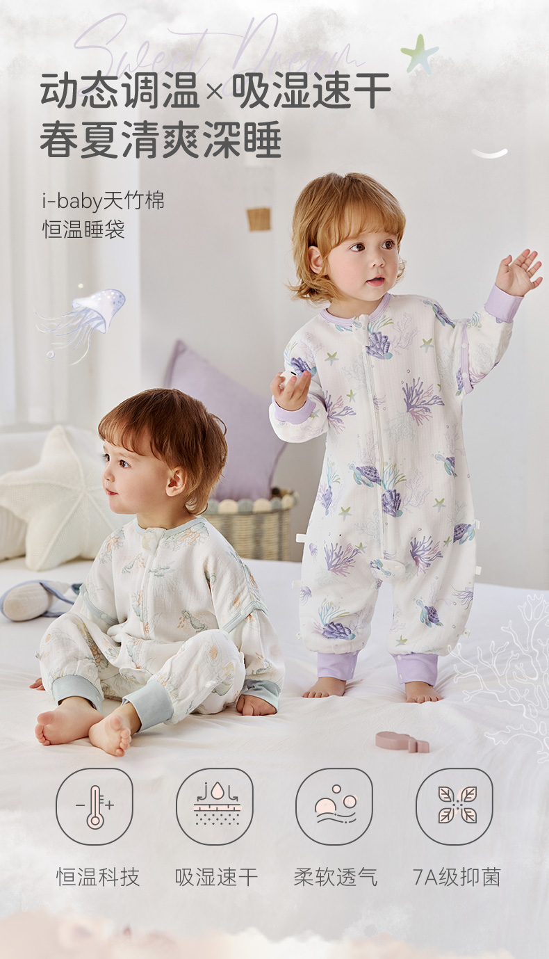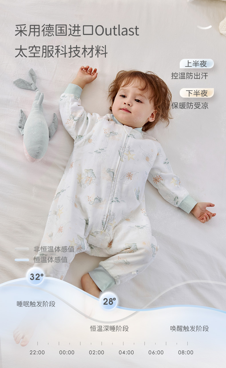 【2025年春夏新品 】i-baby/英伦宝贝&outlast童梦奇境纱布恒温分腿睡袋春夏防踢被