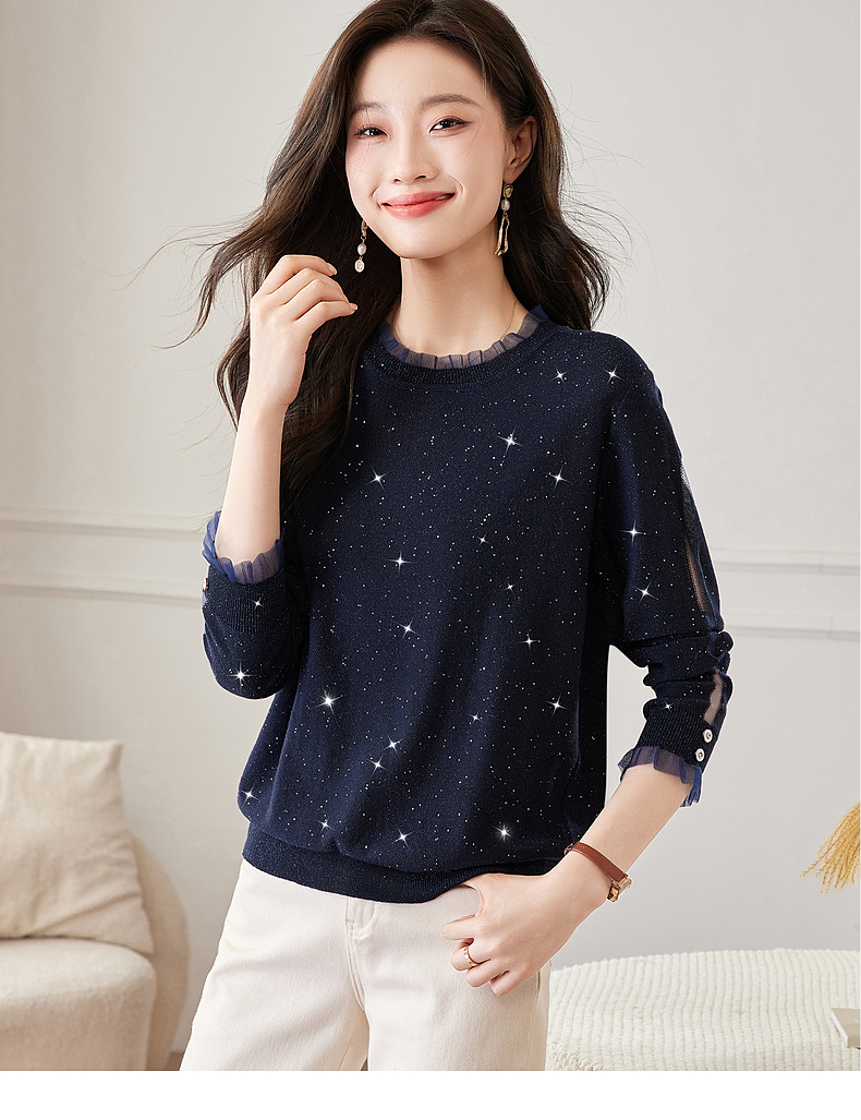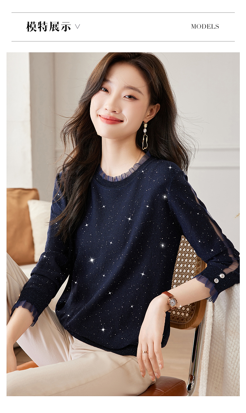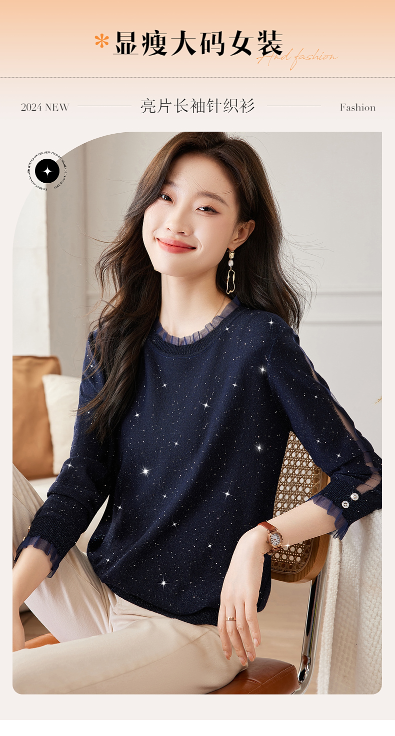 针织打底衫女早春秋季2026新款大码女装蕾丝长袖t恤上衣洋气小衫