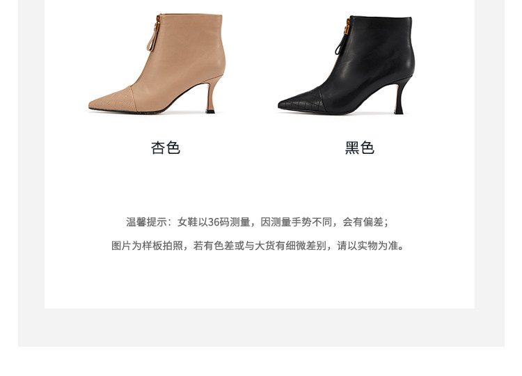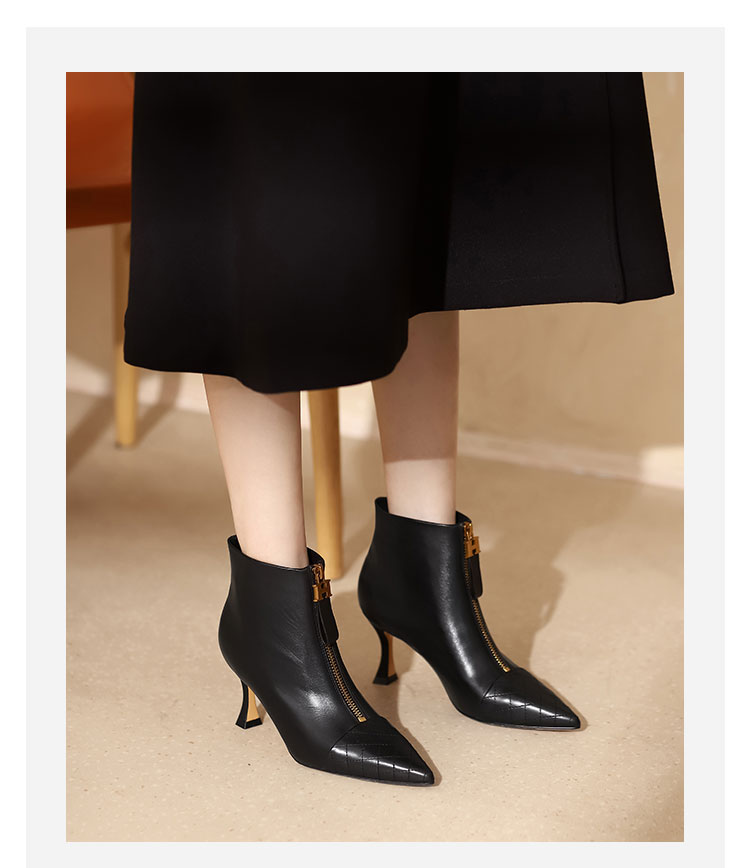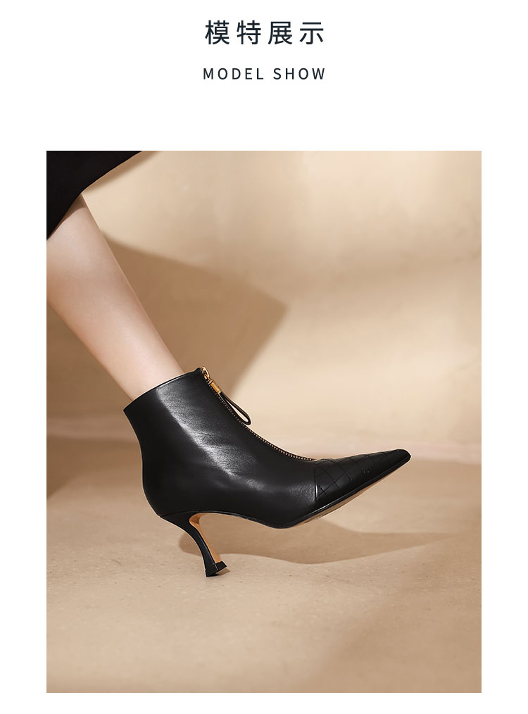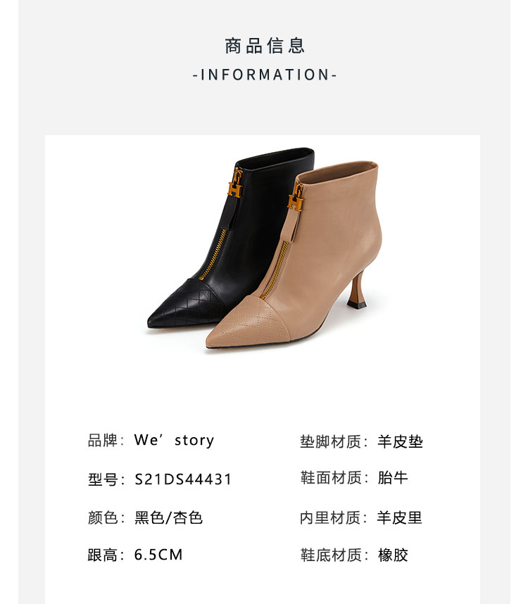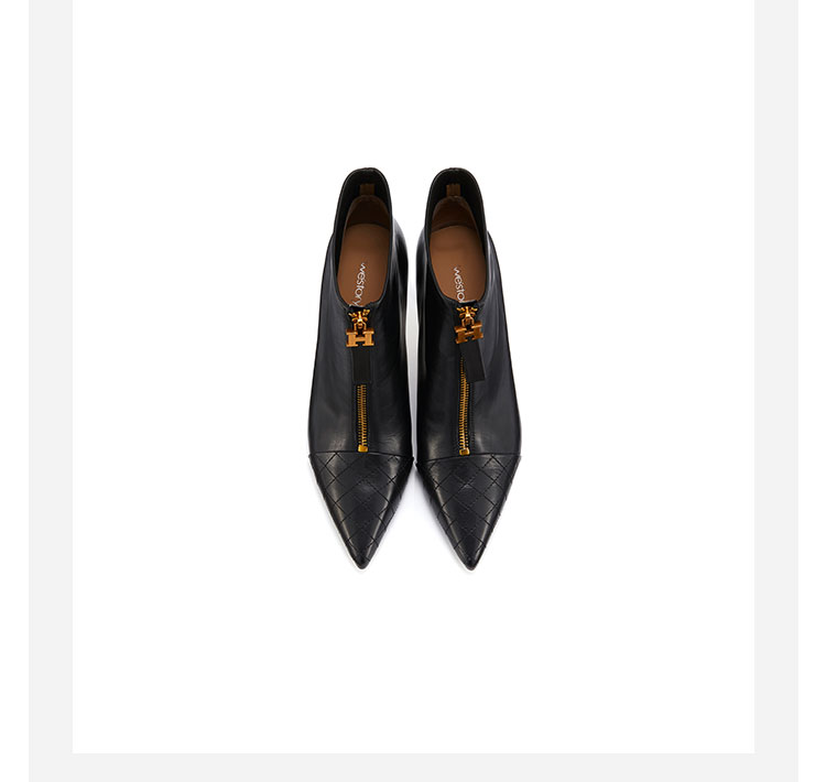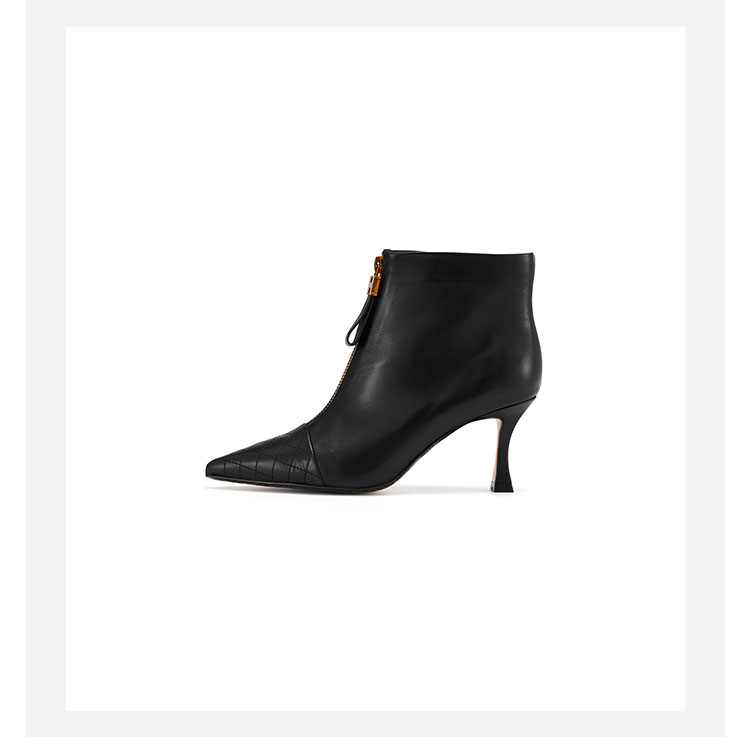 westory女鞋2021秋冬新款尖头气质款时装靴前拉链菱格纹细高跟短靴女S21DS44431
