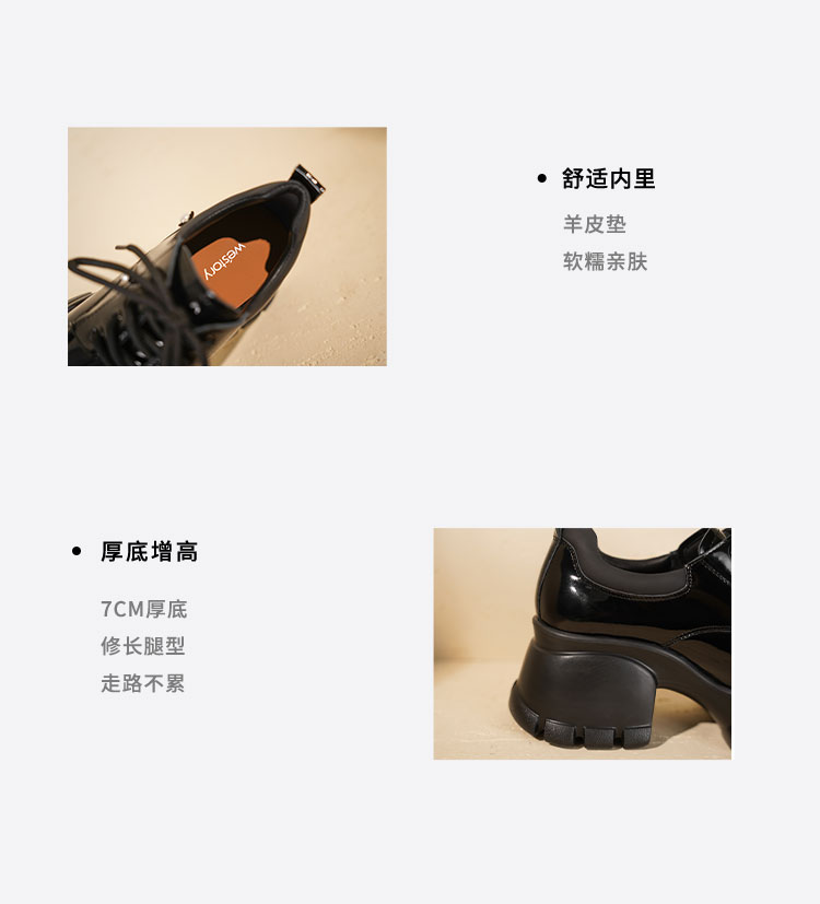 Westory2025年秋季厚底乐福鞋甜酷系带百搭深口单鞋S25CM76351