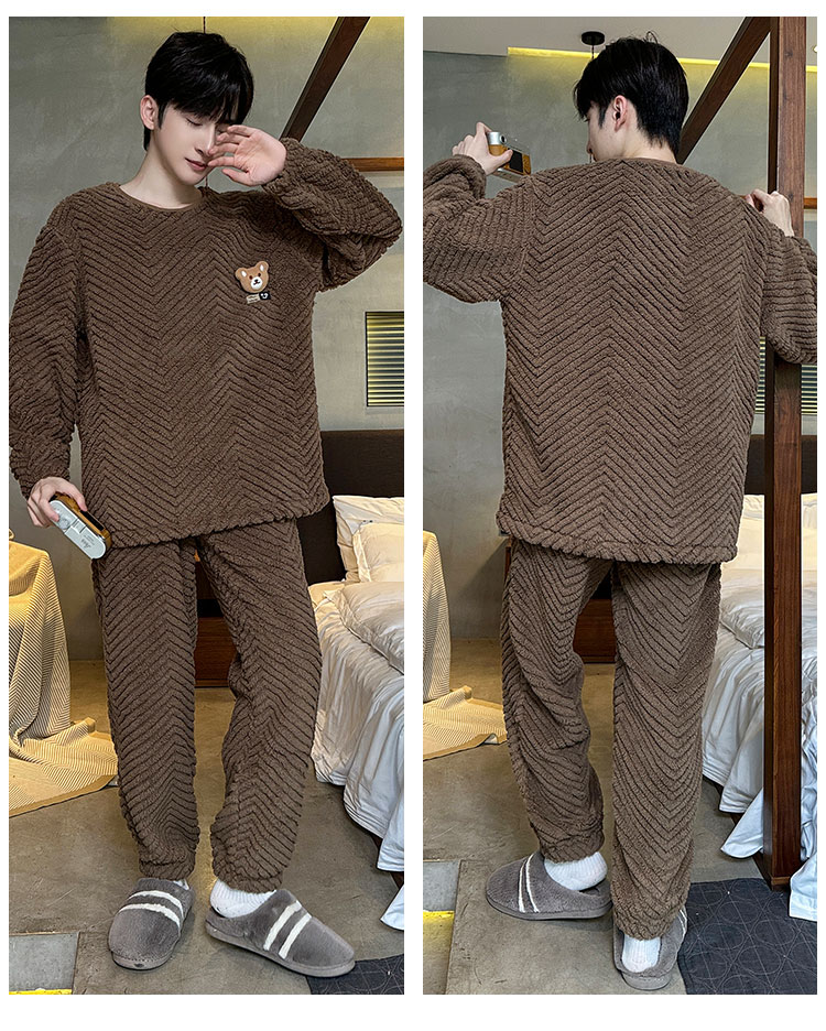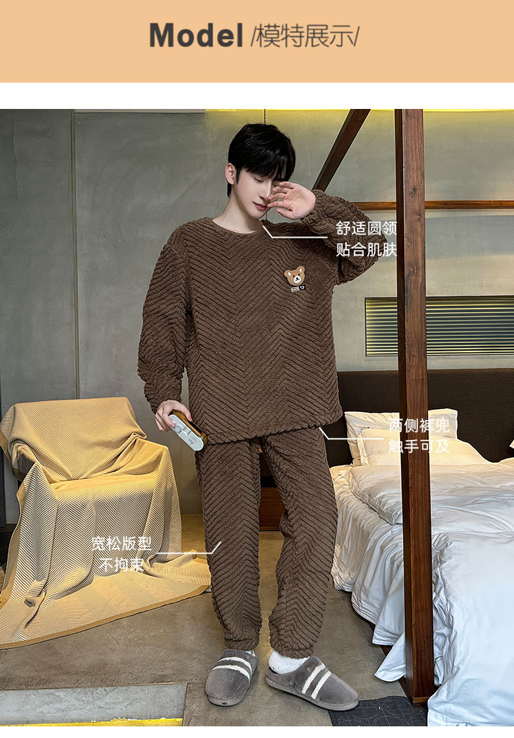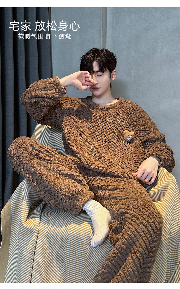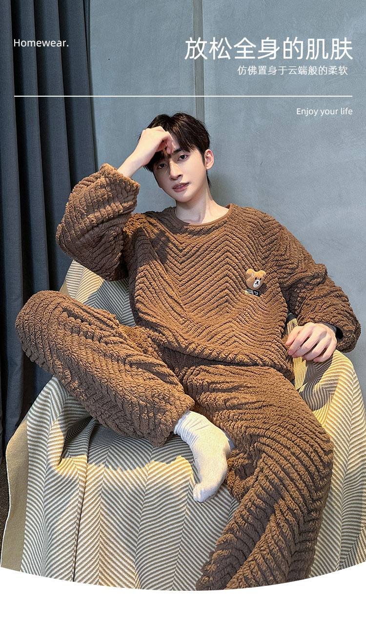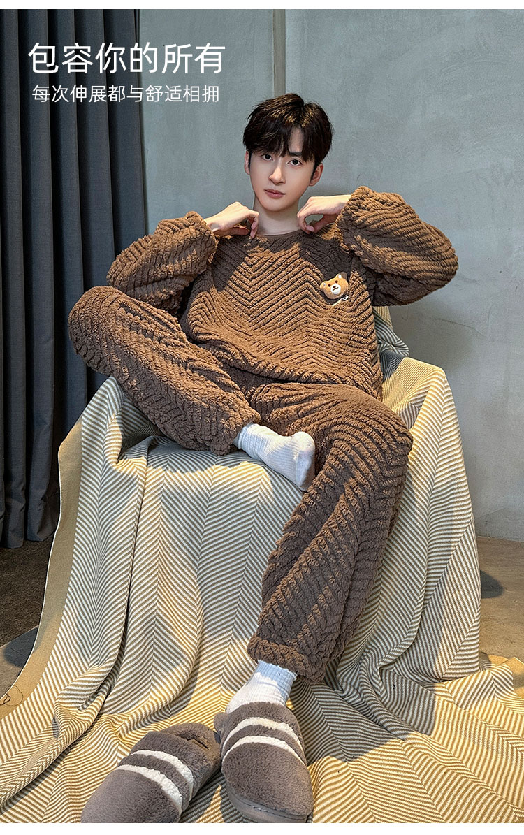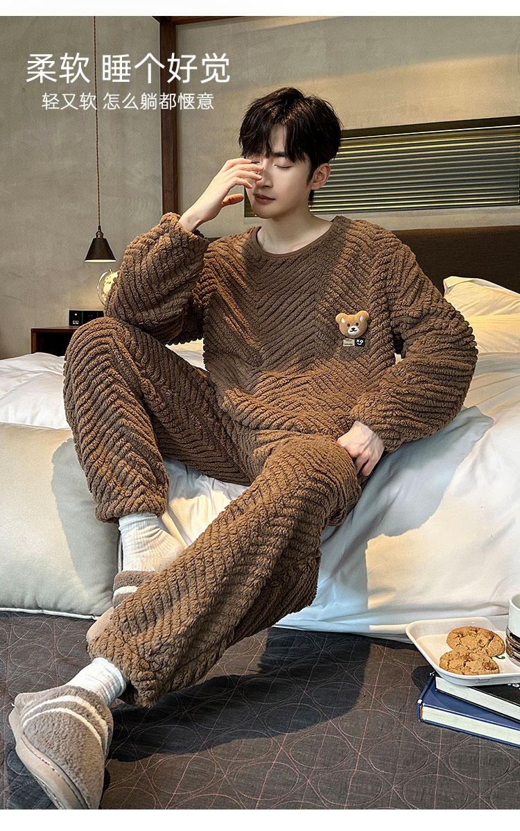 洁丽雅冬季大码男士珊瑚绒睡衣加绒加厚舒适亲肤保暖睡衣男秋冬款