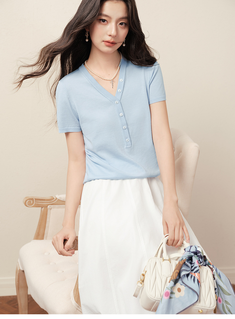 【商场同款】诗凡黎透气天丝针织衫2025秋新款短袖上衣3G7131261