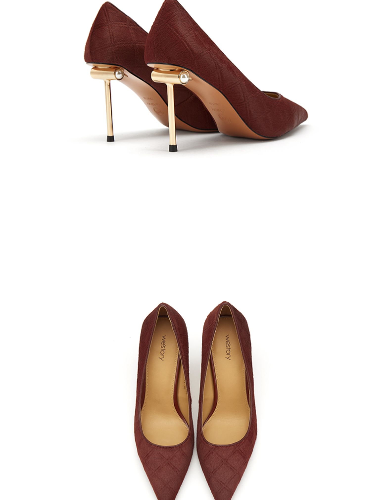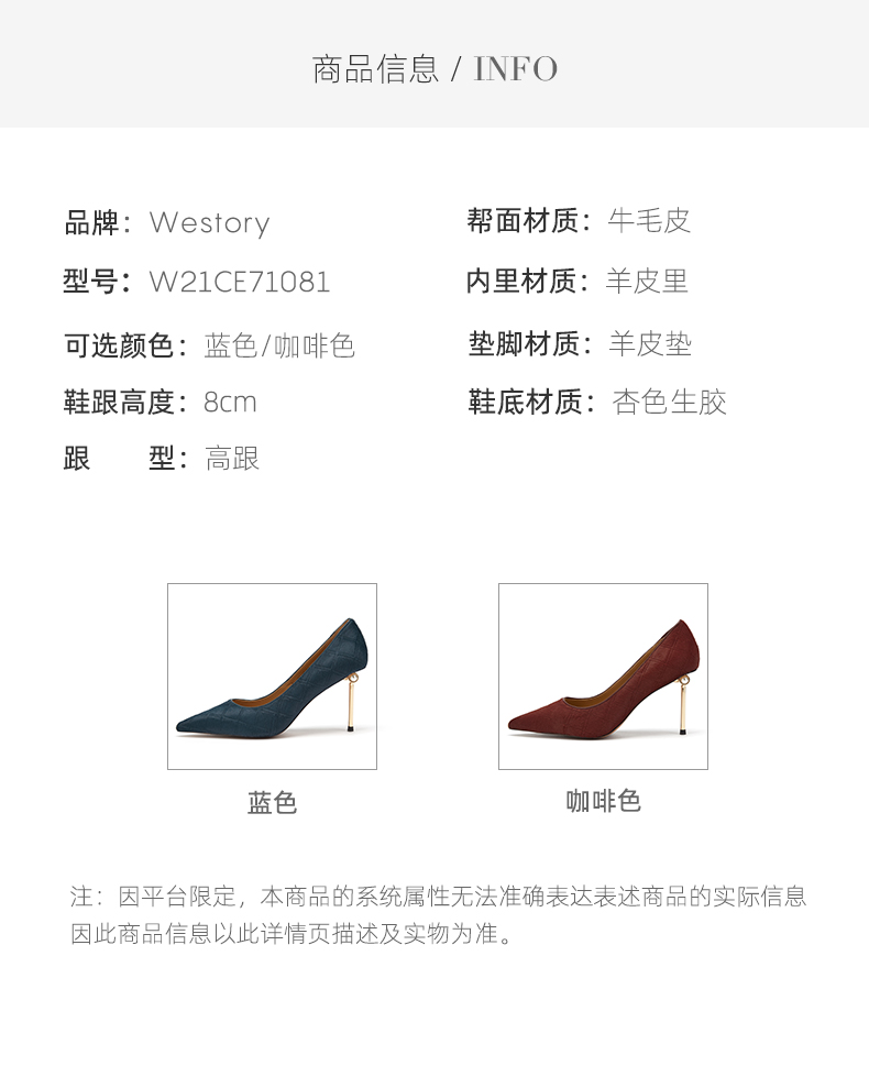 westory女鞋新款尖头高跟鞋细跟婚鞋单鞋纹71081