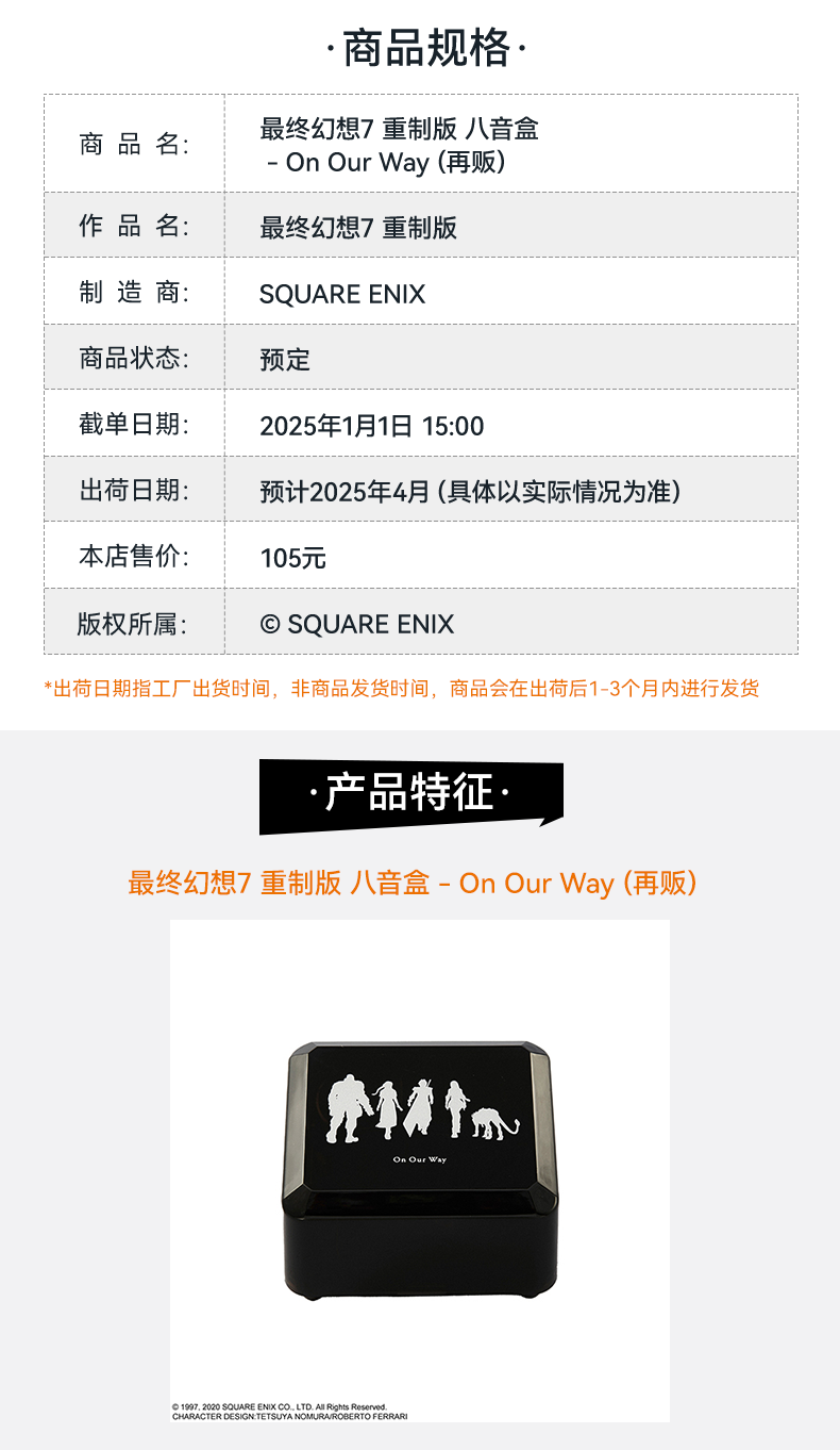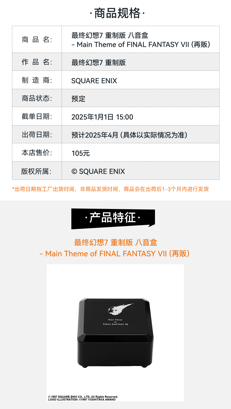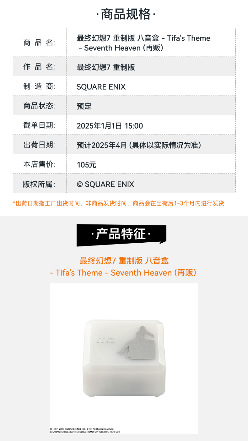 【GSC补款】最终幻想7 重制版 八音盒 Main Theme of FINAL FANTASY VII/On Our Way/Tifa's Theme - Seventh Heaven