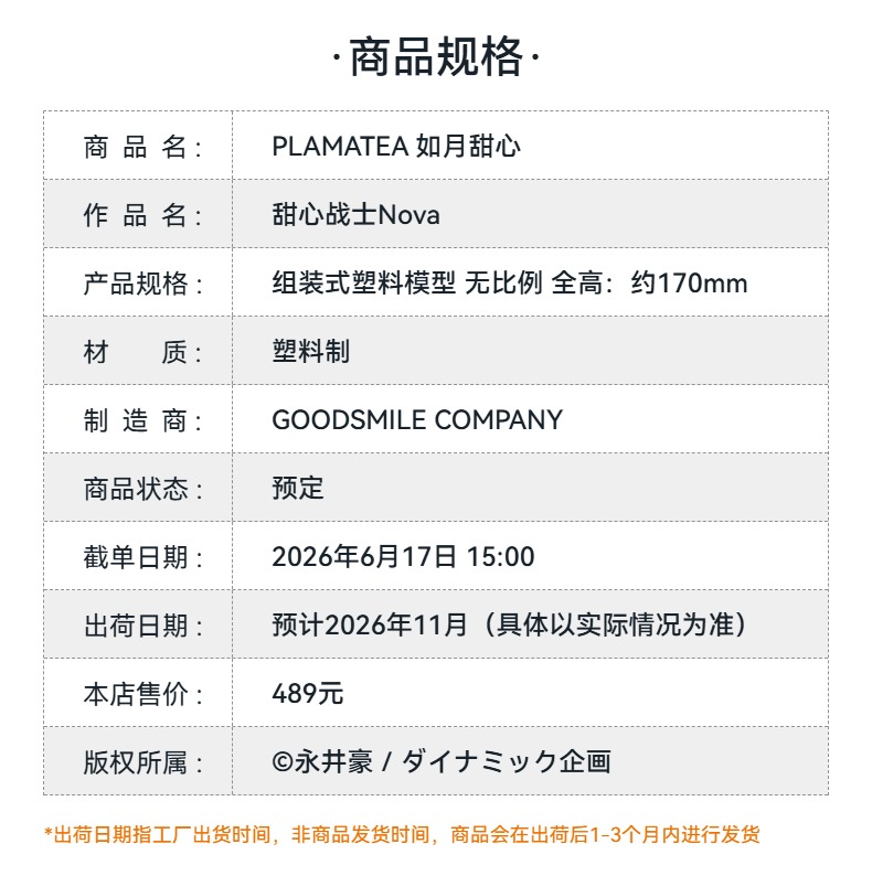 【GSC预售定金】PLAMATEA 如月甜心 甜心战士Nova 附官方限定特典