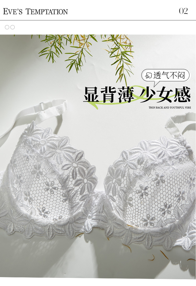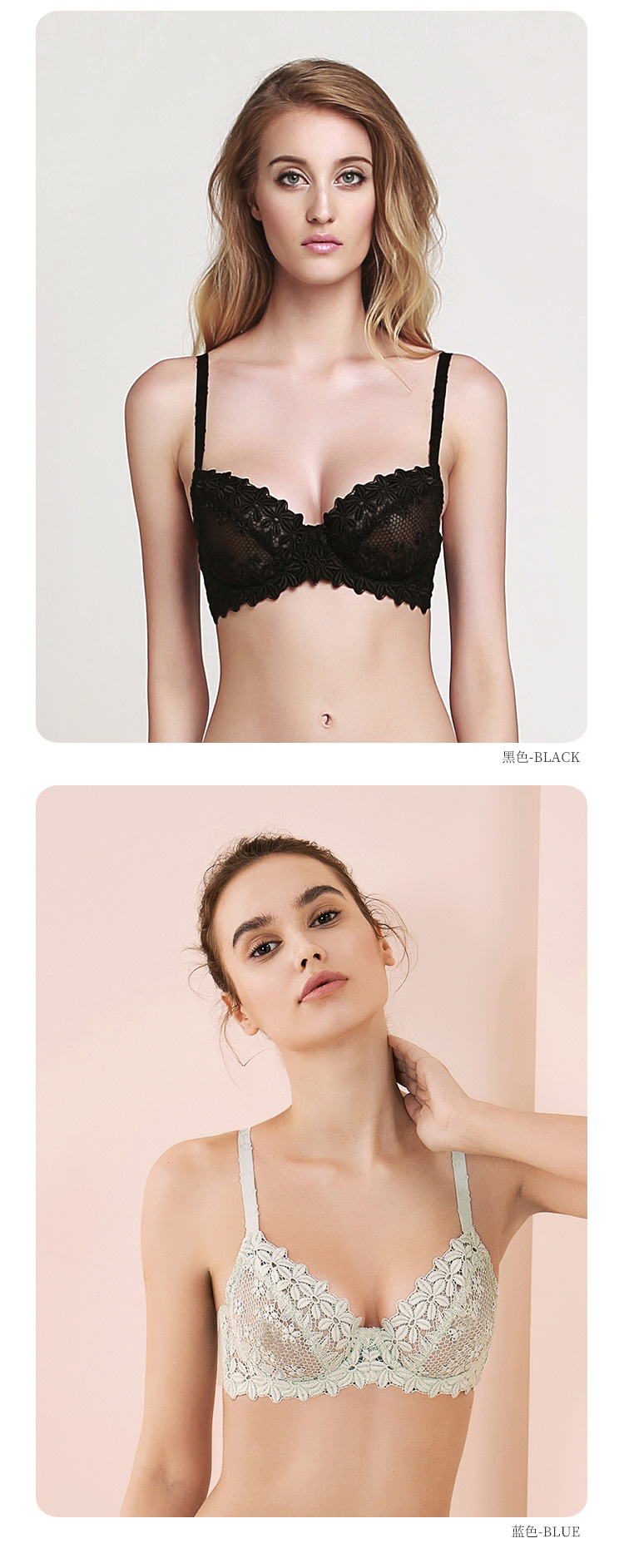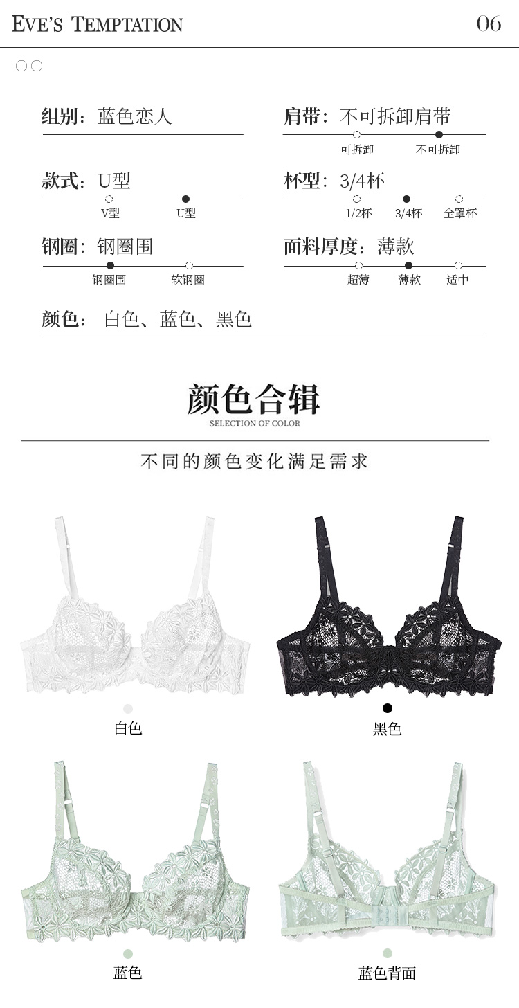 【云优选】夏娃的诱惑蓝色恋人内衣女大胸显小蕾丝夏季薄款文胸上托防下垂胸罩