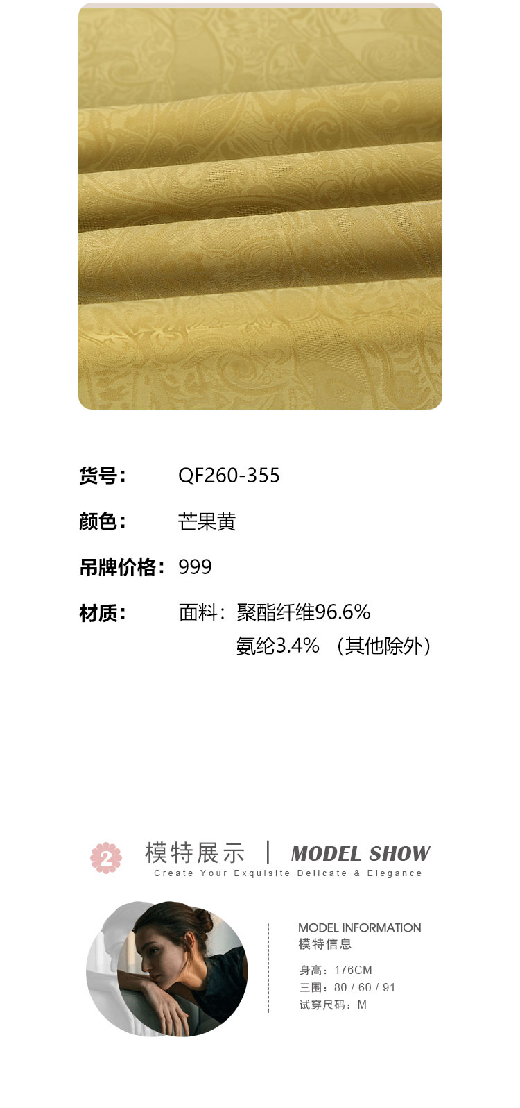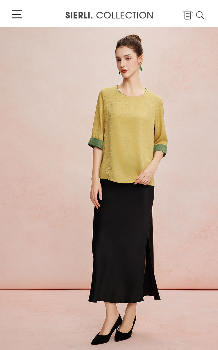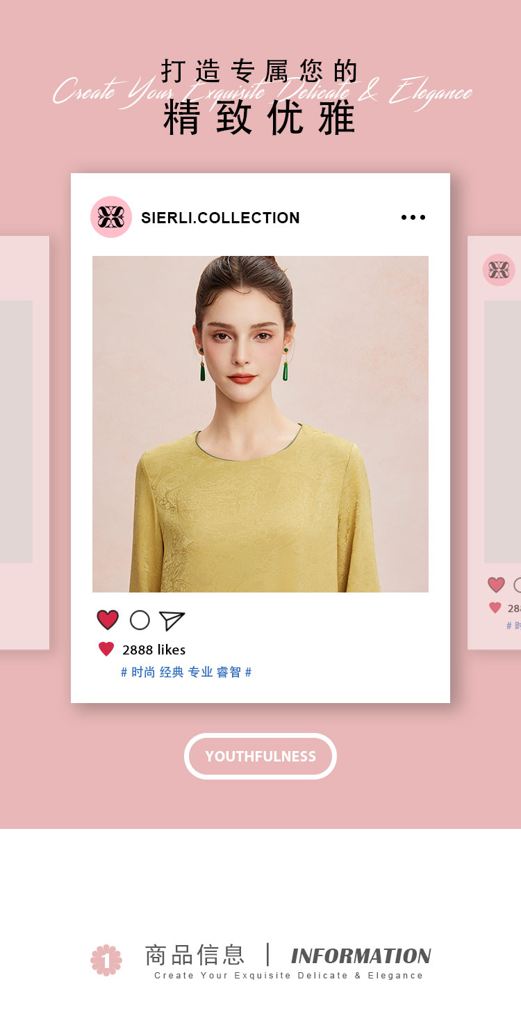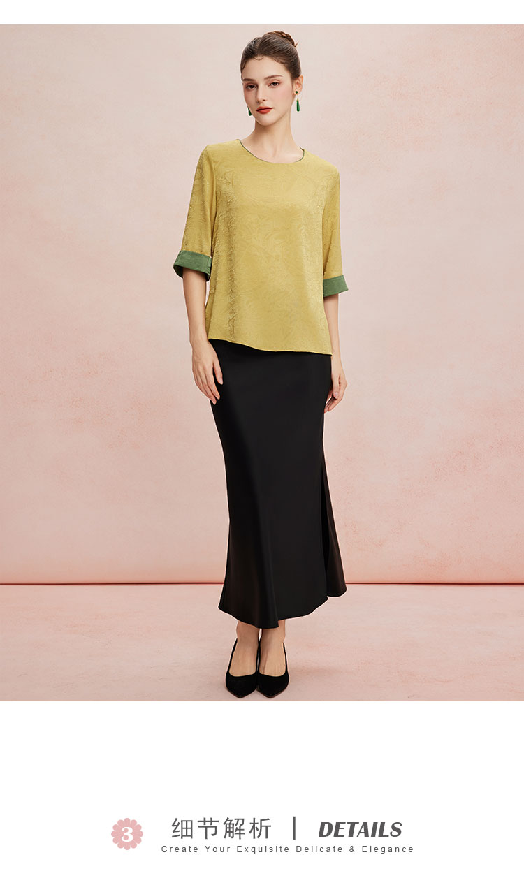 QF260斯尔丽25新款圆领国风系列精致提花工艺中袖撞色宽松显瘦上衣