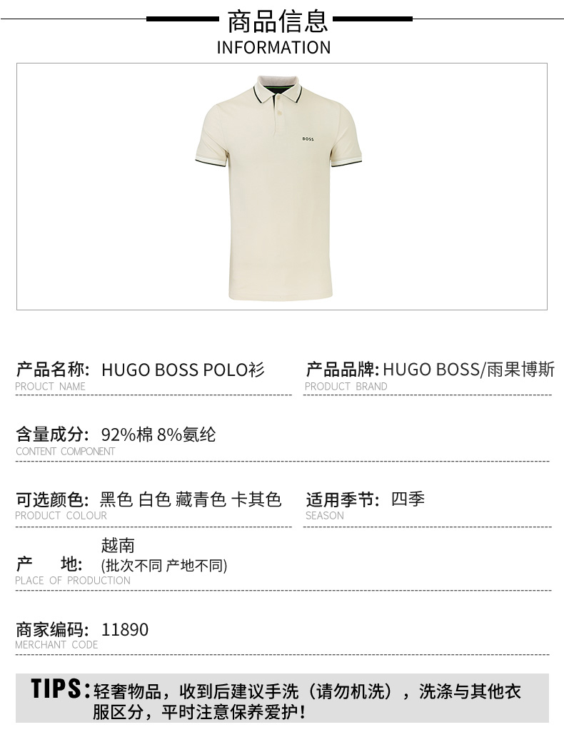 BOSS 男士弹棉短袖Polo T恤 11890