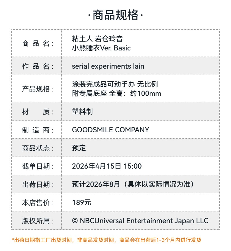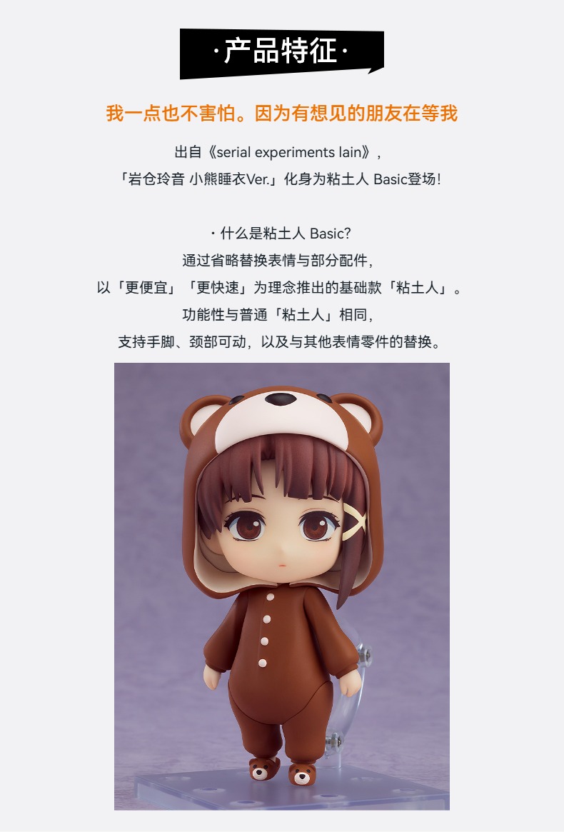 【GSC预售定金】粘土人 岩仓玲音 小熊睡衣Ver. Basic 附官方限定特典 serial experiments lain