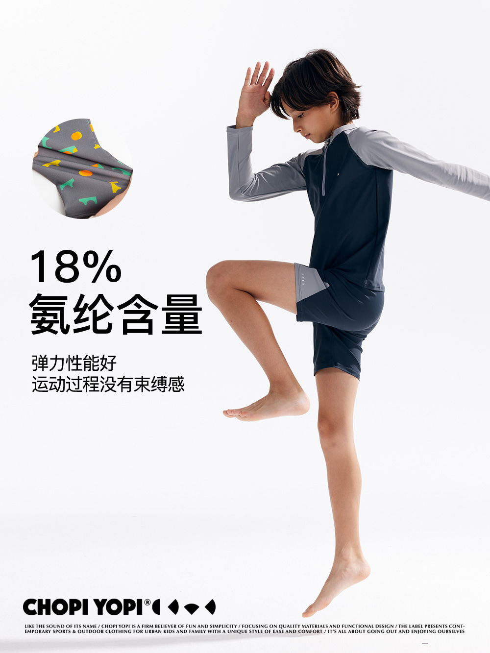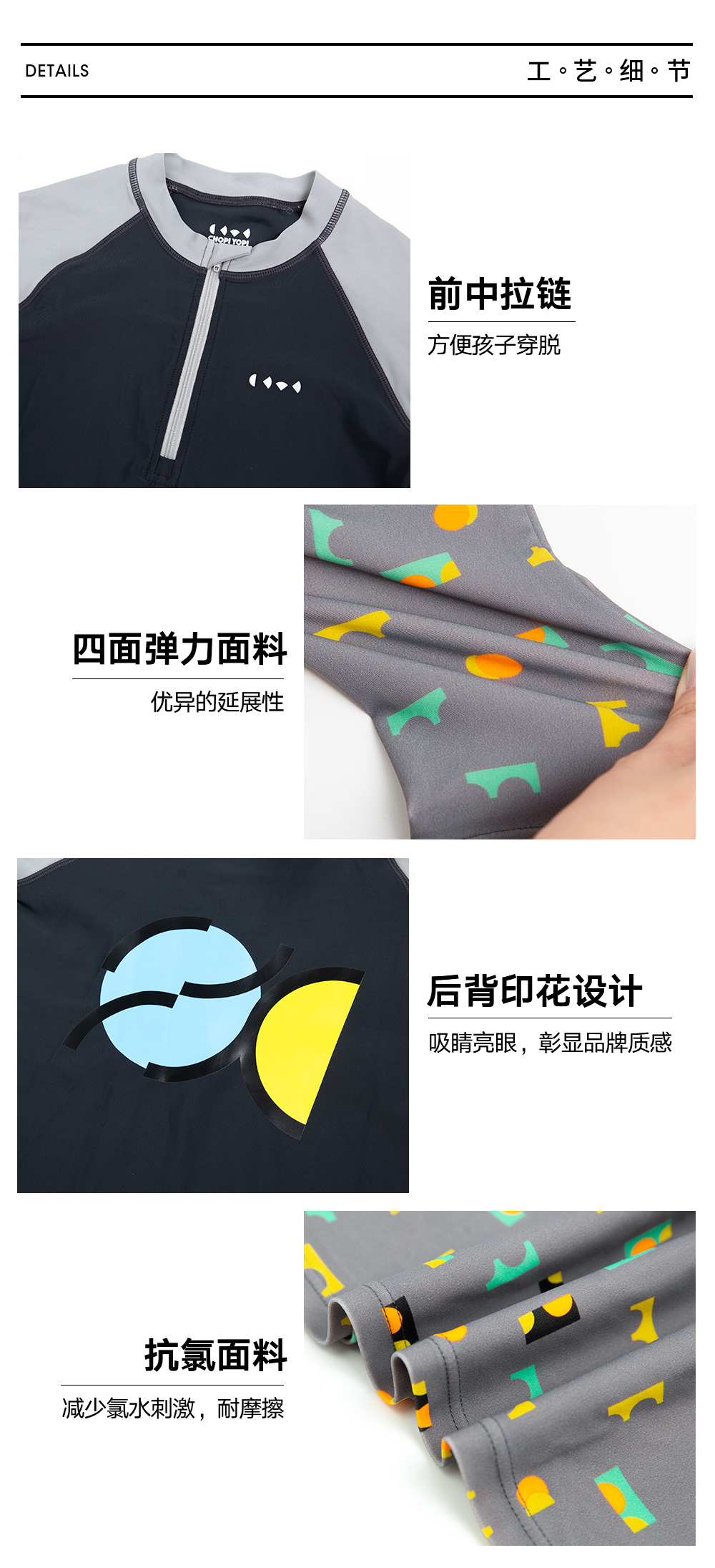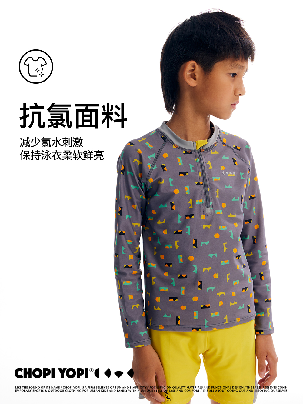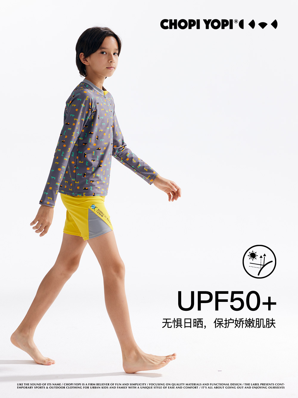 chopiyopi童装 儿童半拉链长袖泳衣短裤套装夏季防晒分体男童泳衣