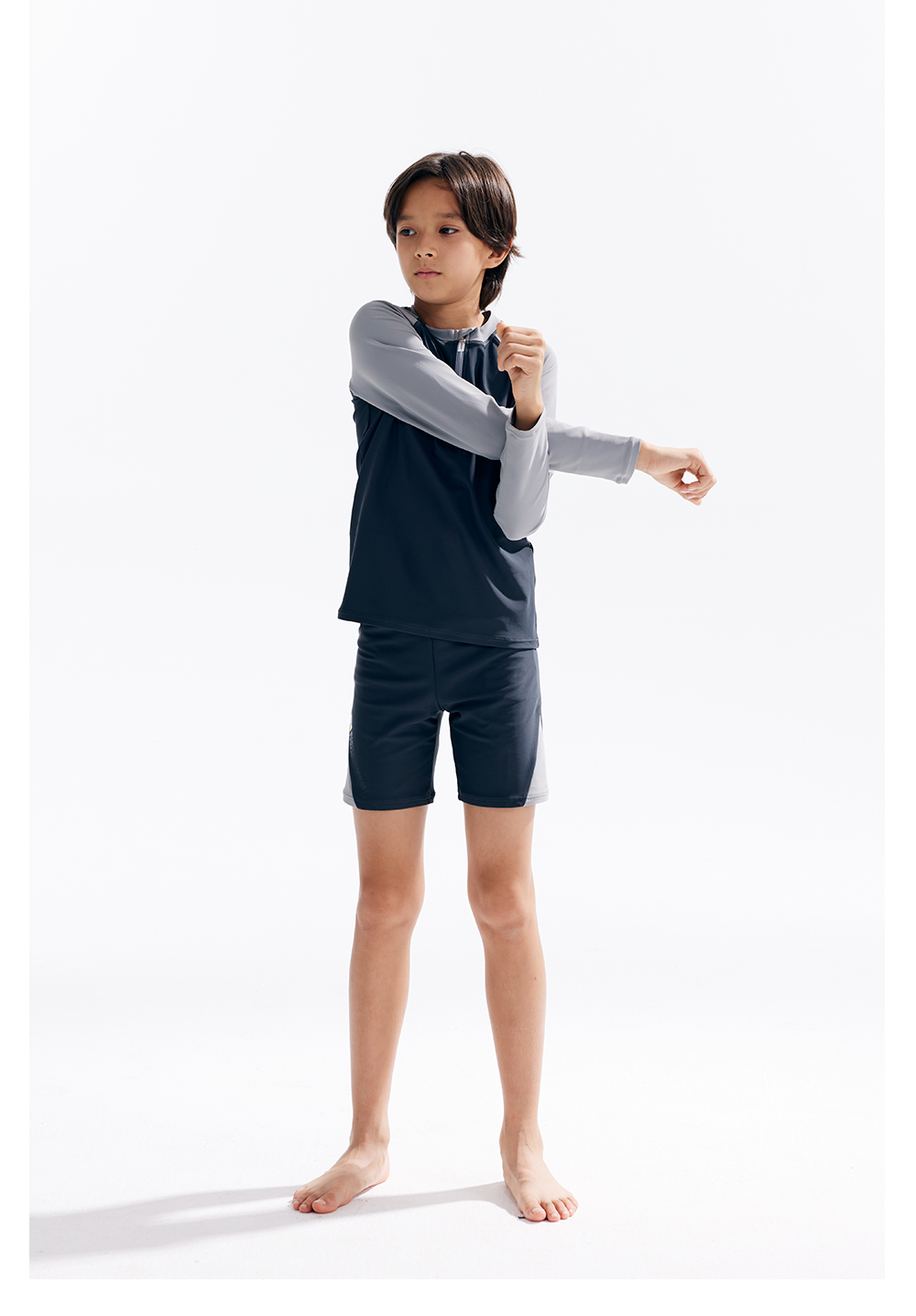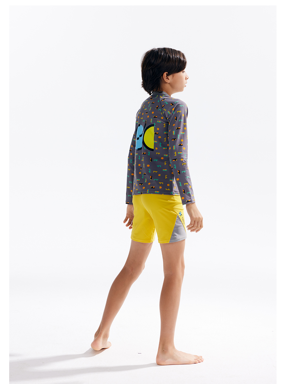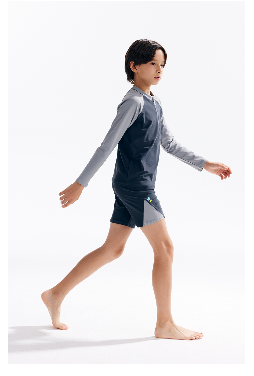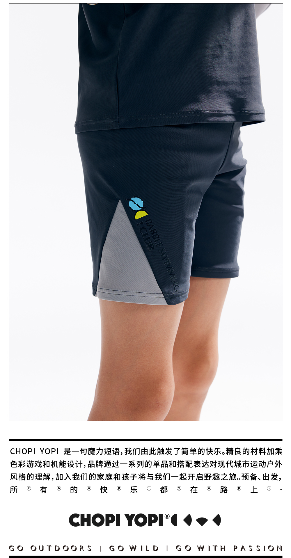 chopiyopi童装 儿童半拉链长袖泳衣短裤套装夏季防晒分体男童泳衣
