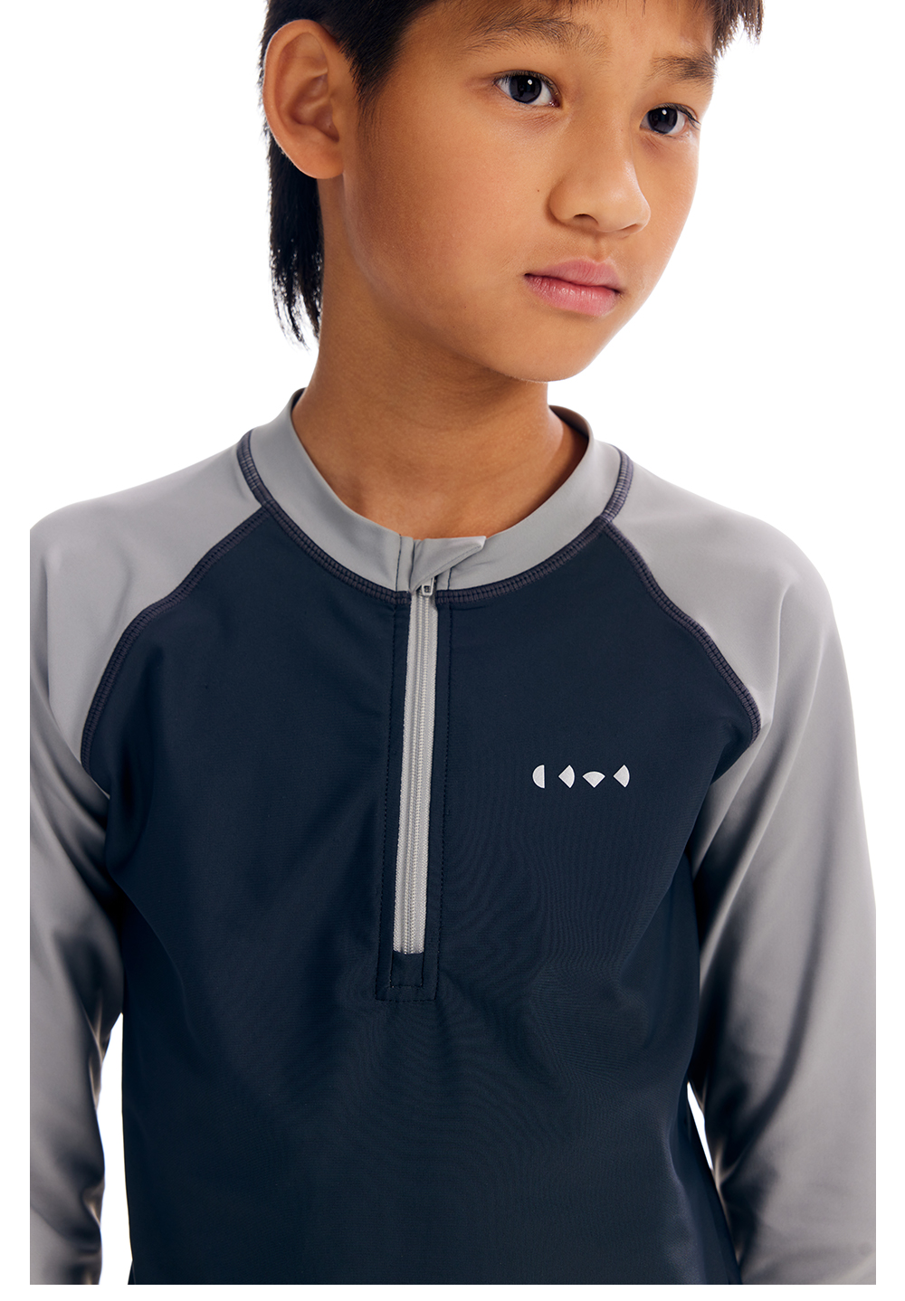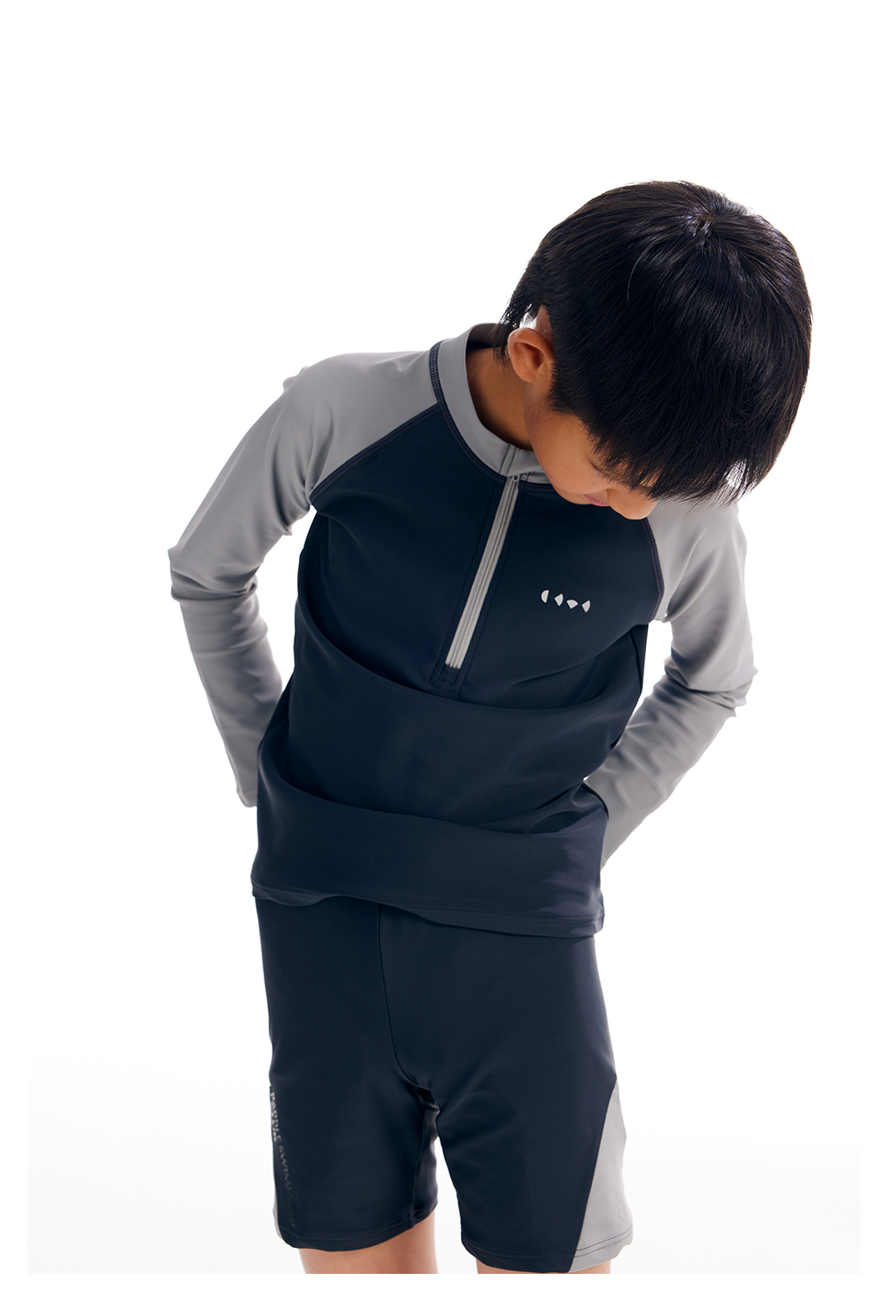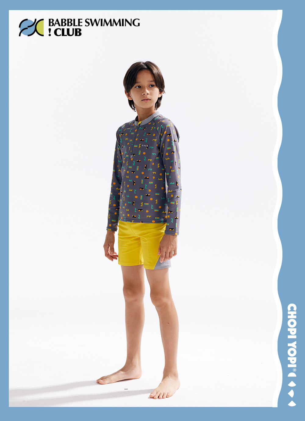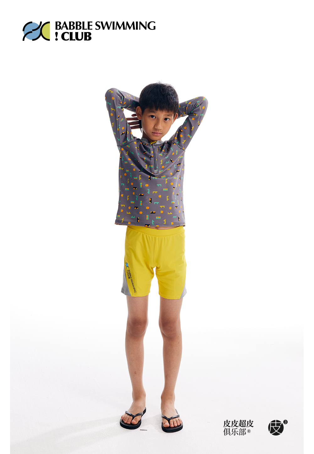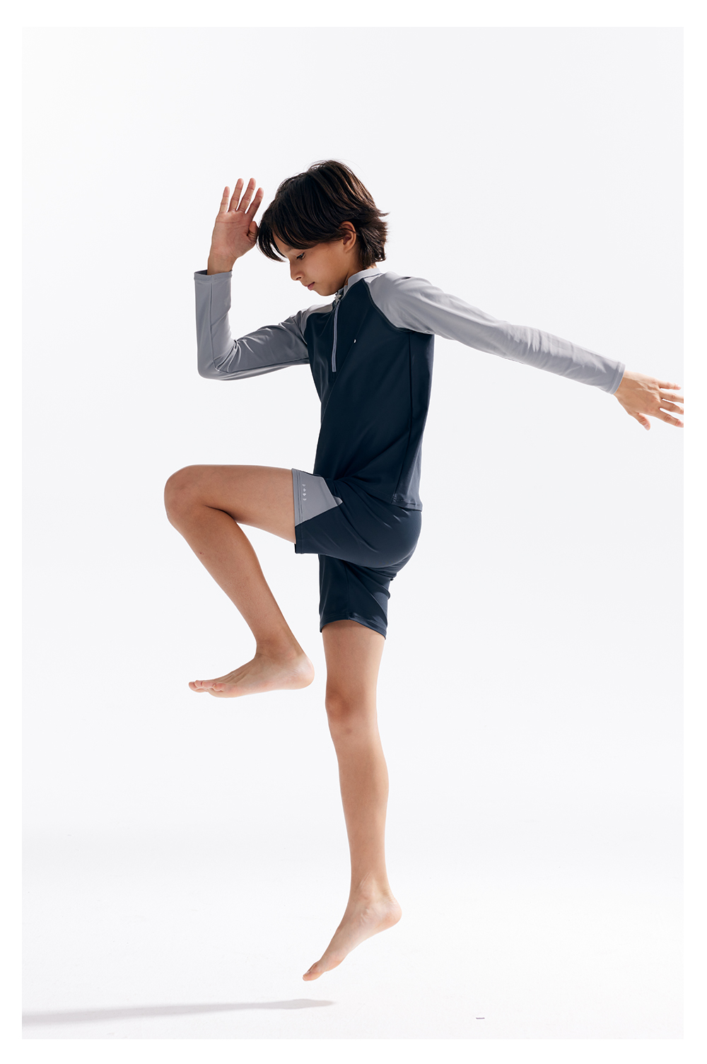 chopiyopi童装 儿童半拉链长袖泳衣短裤套装夏季防晒分体男童泳衣