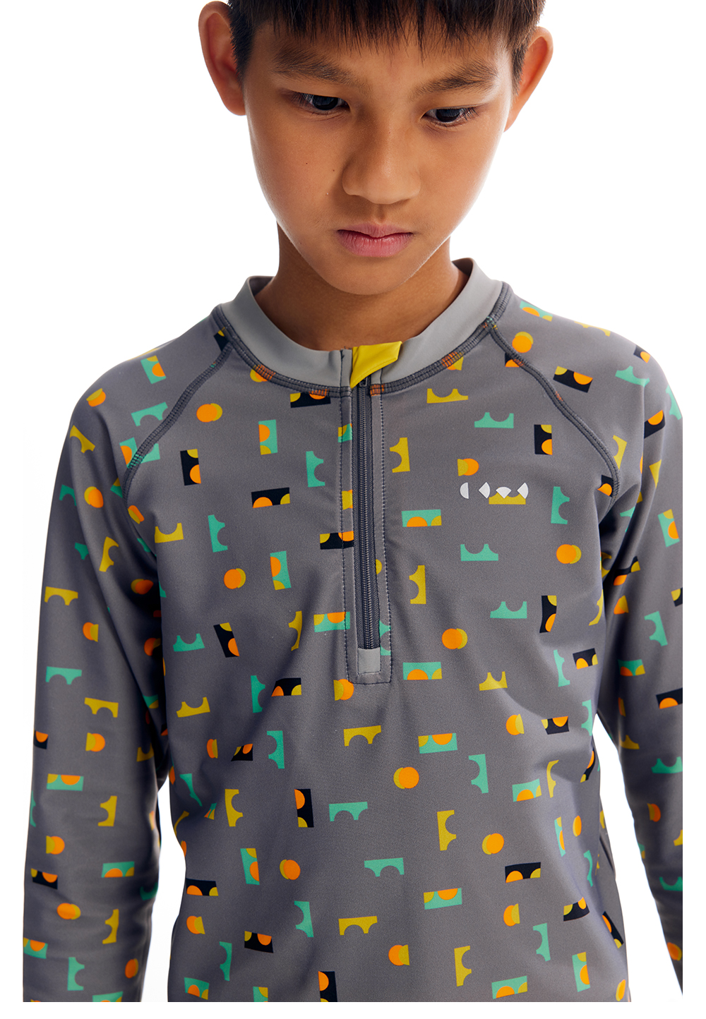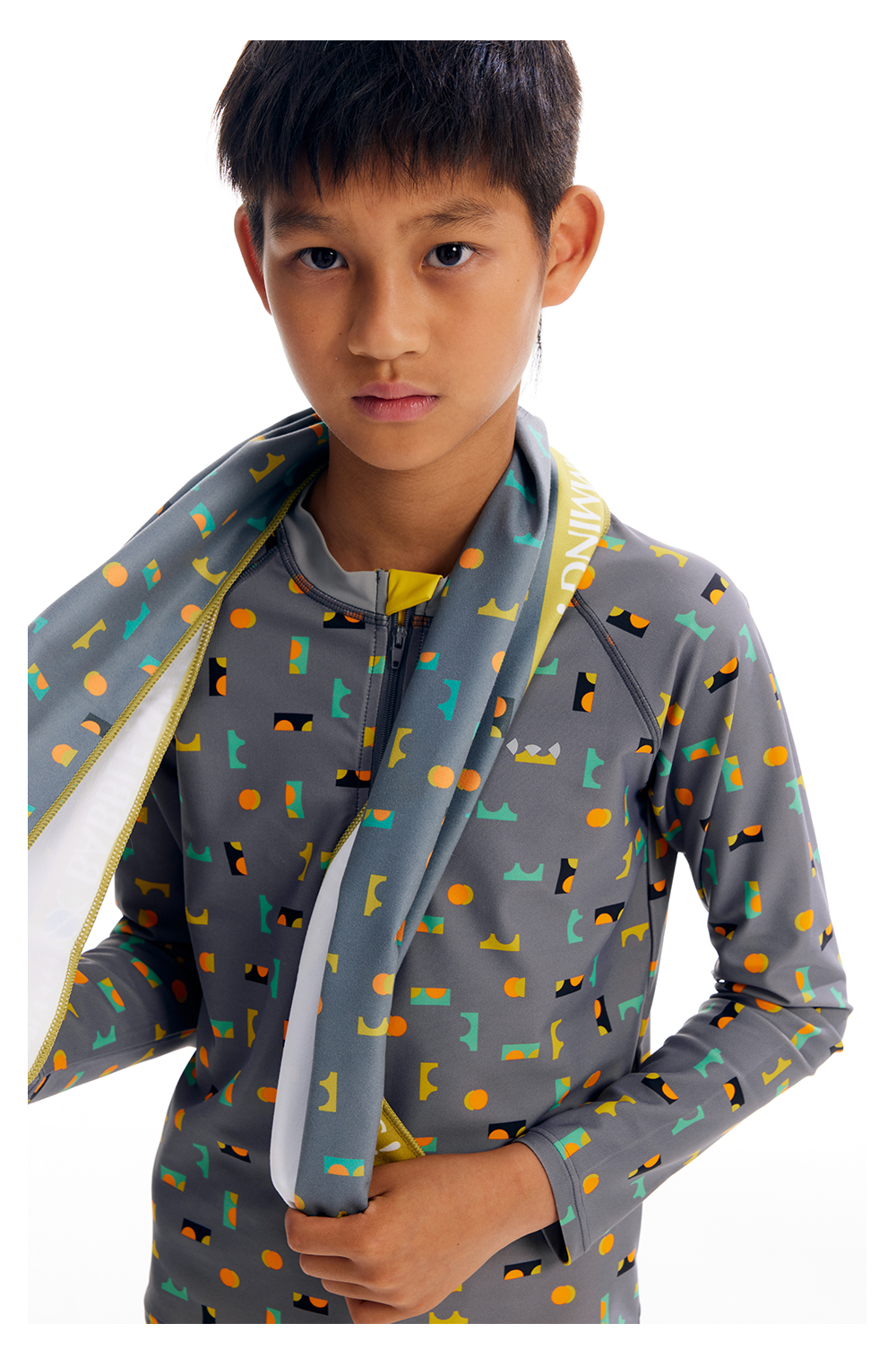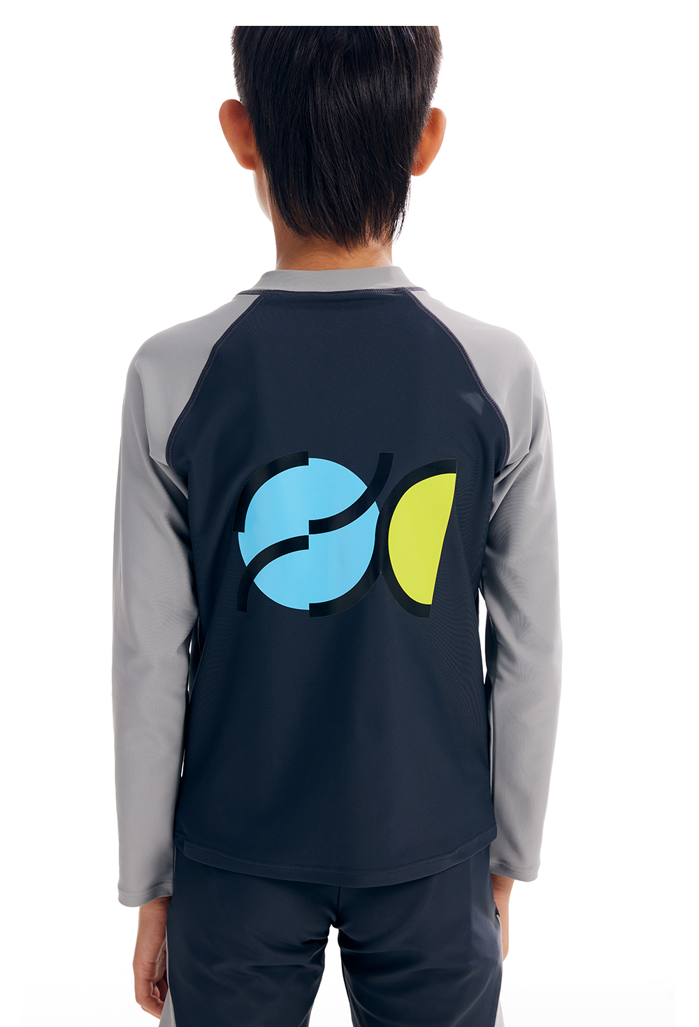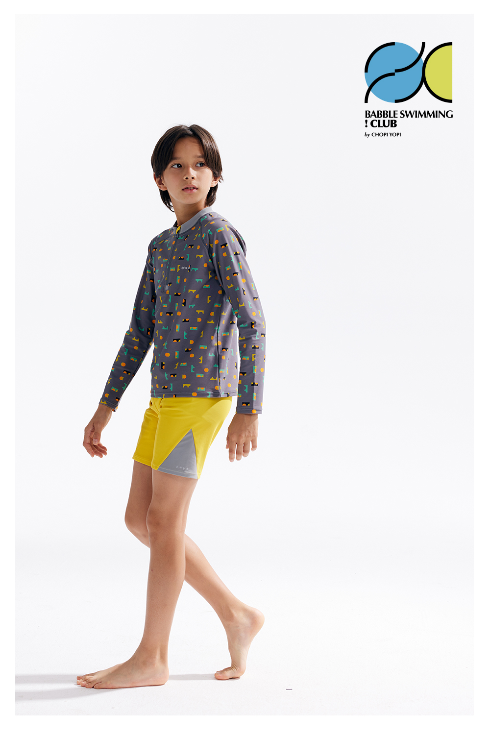 chopiyopi童装 儿童半拉链长袖泳衣短裤套装夏季防晒分体男童泳衣
