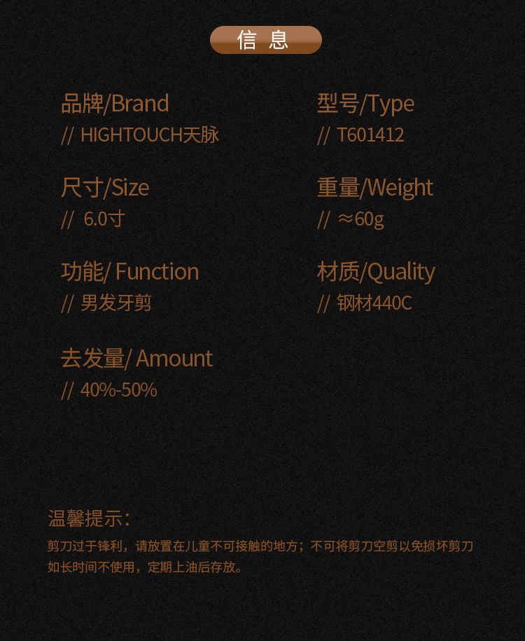 HIGHTOUCH天脉_T系列_牙剪_综合牙剪_平齿_45%-50%_HIGHTOUCH天脉牙剪T601412