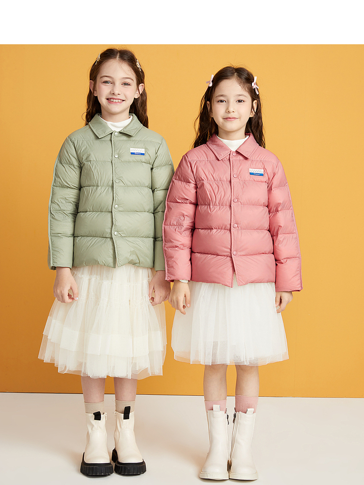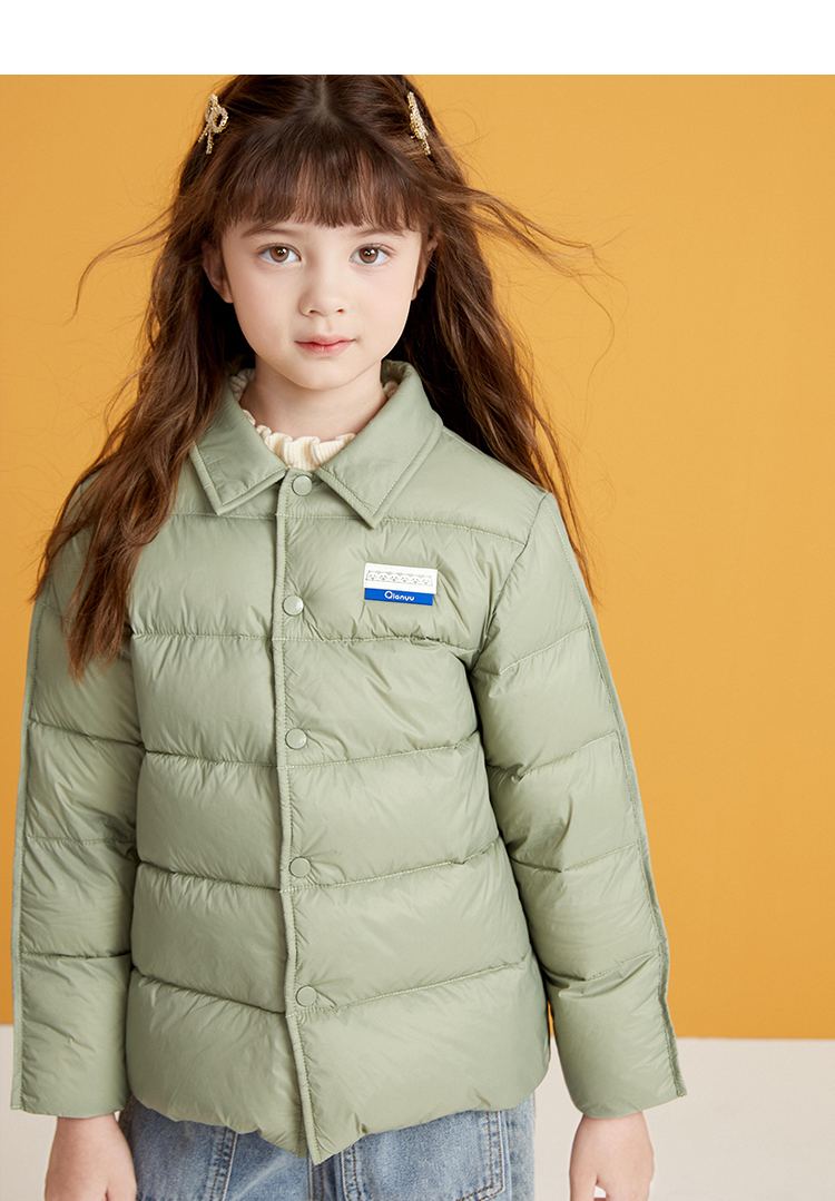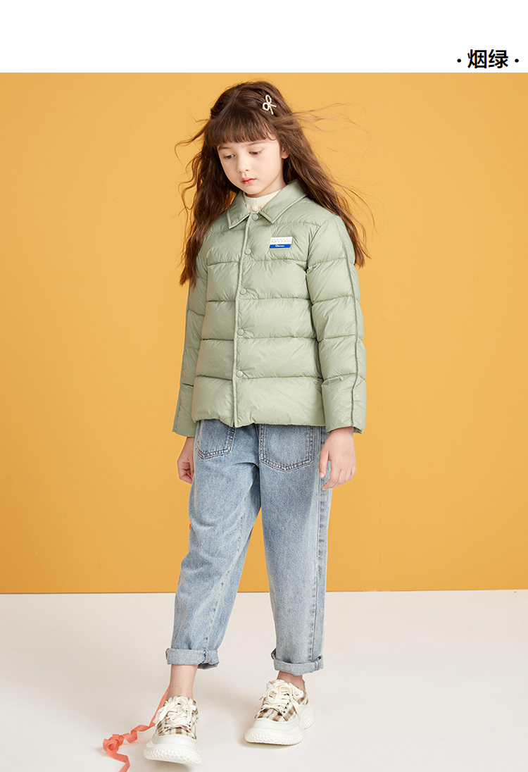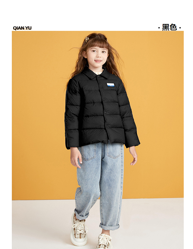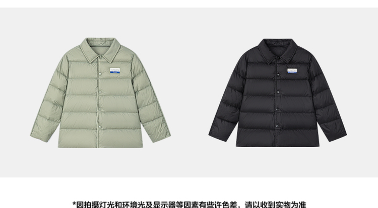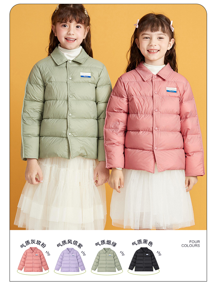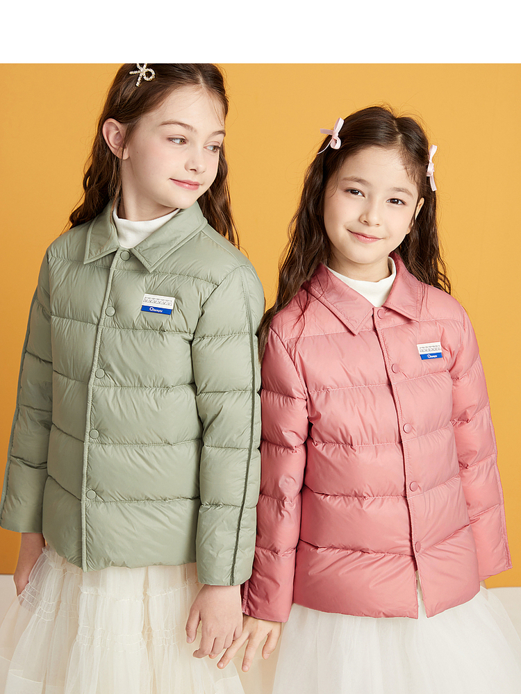 笛莎千与2024冬季新款男女童同款简约时尚衬衫式轻薄羽绒服