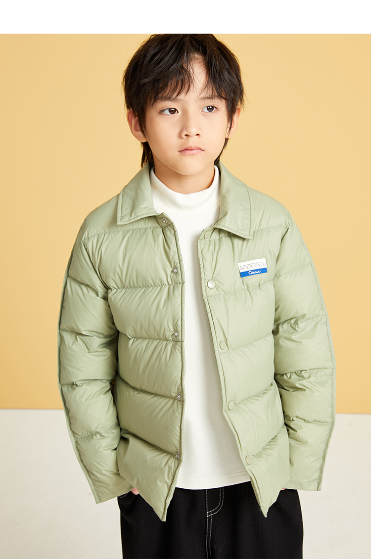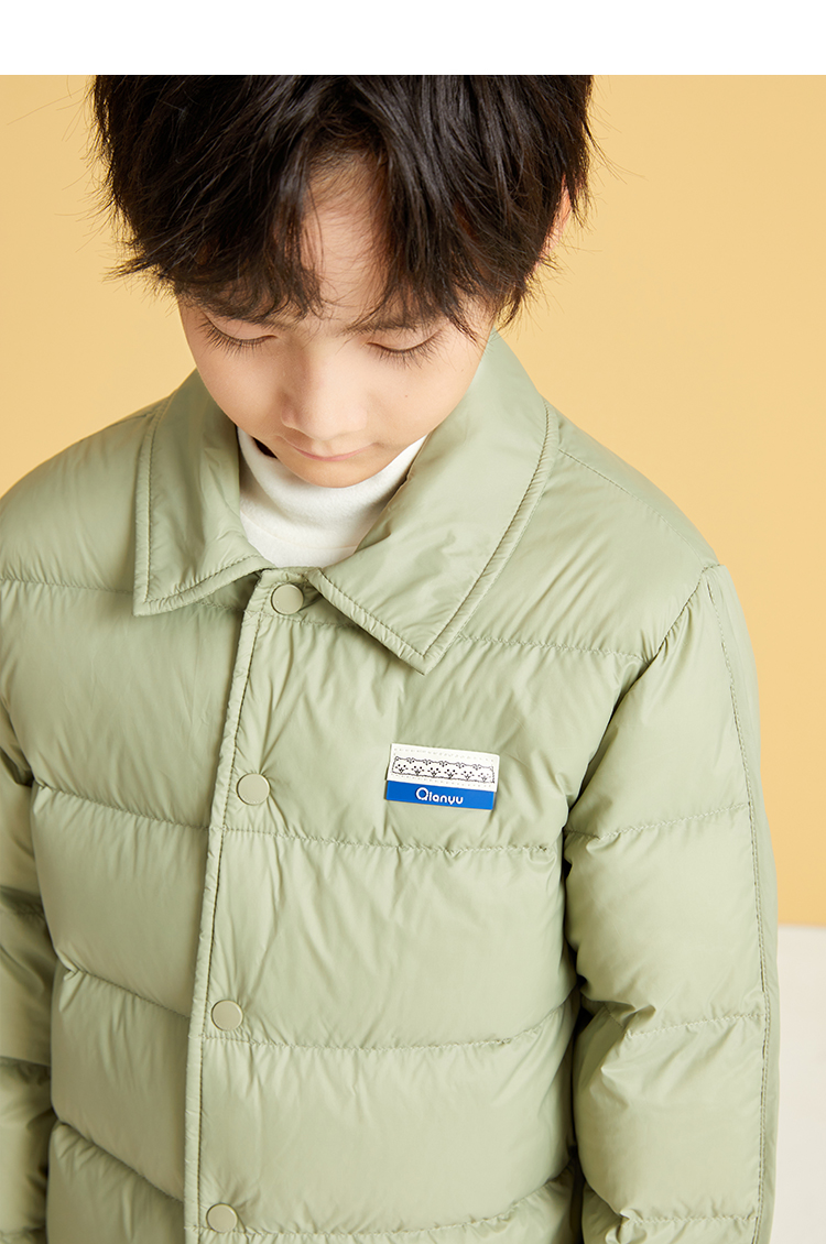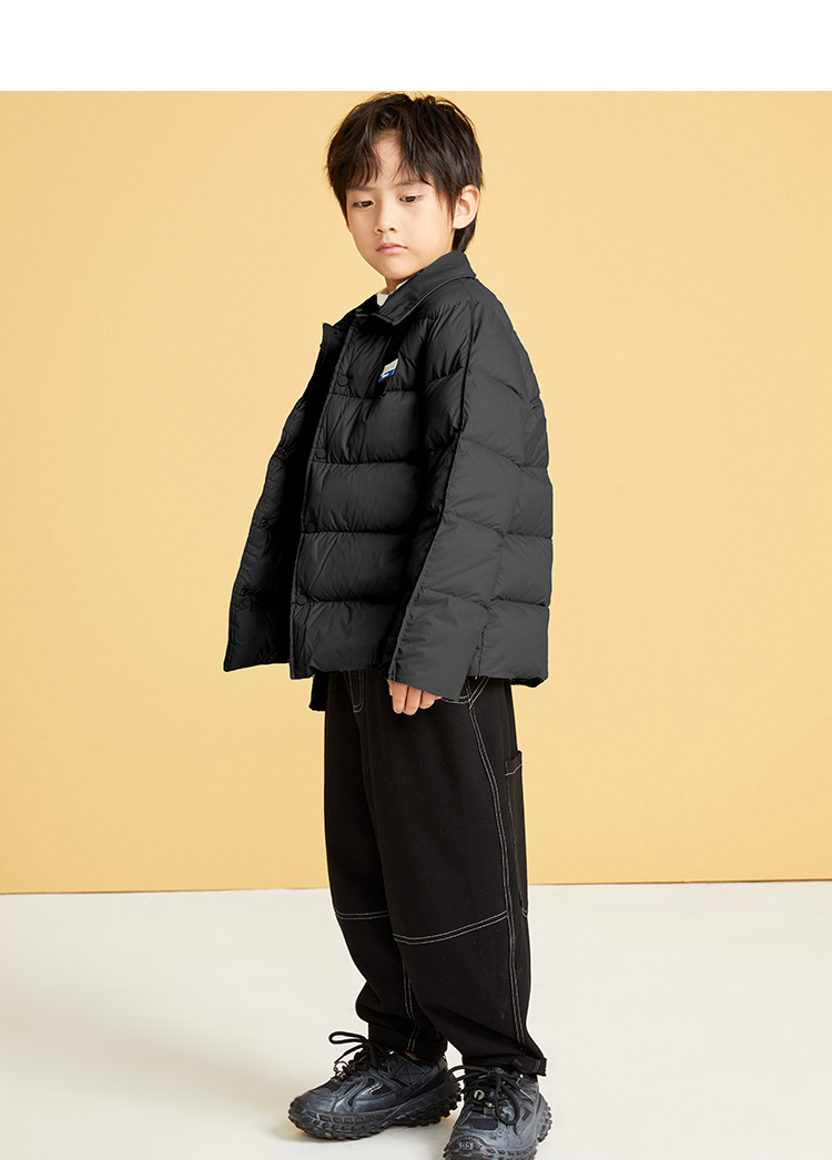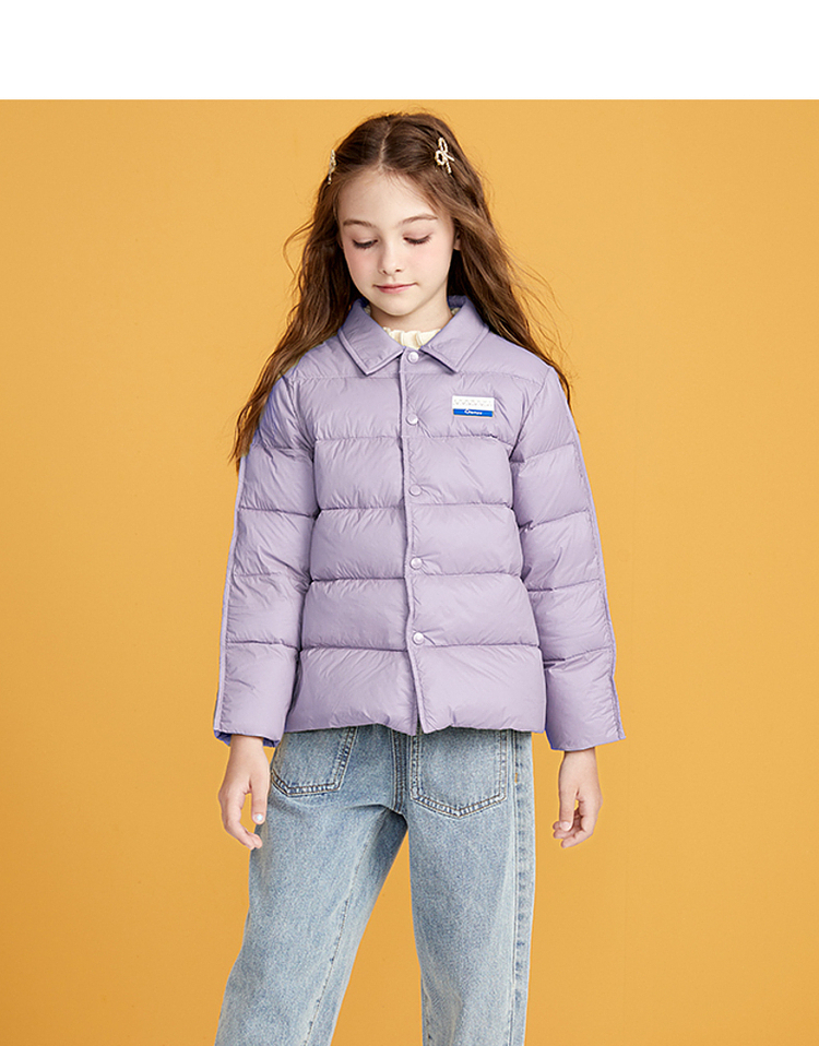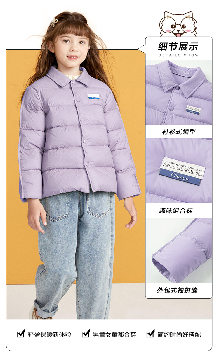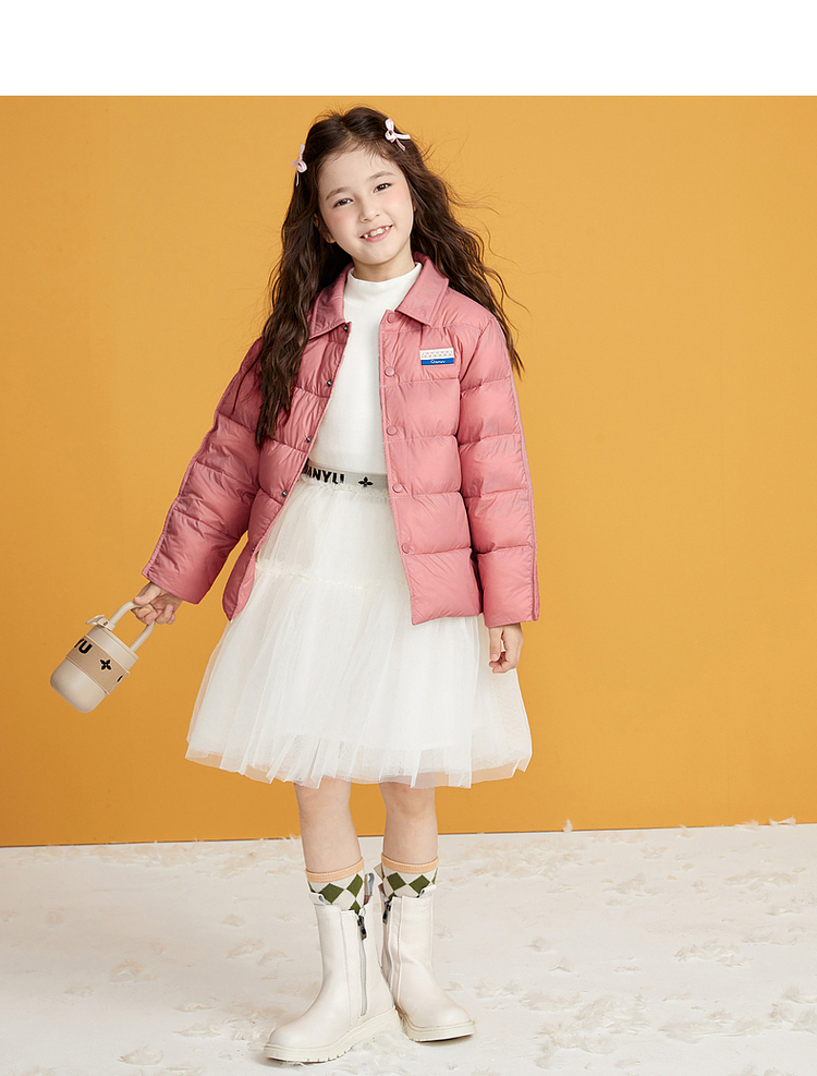 笛莎千与2024冬季新款男女童同款简约时尚衬衫式轻薄羽绒服