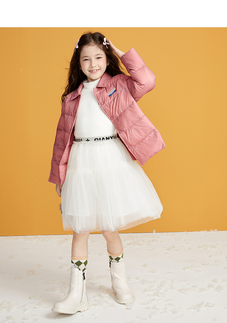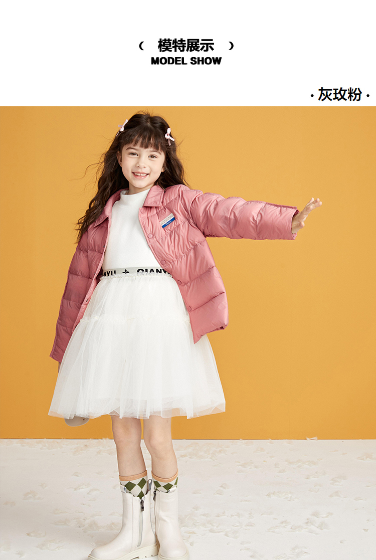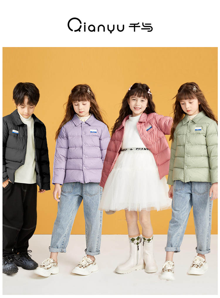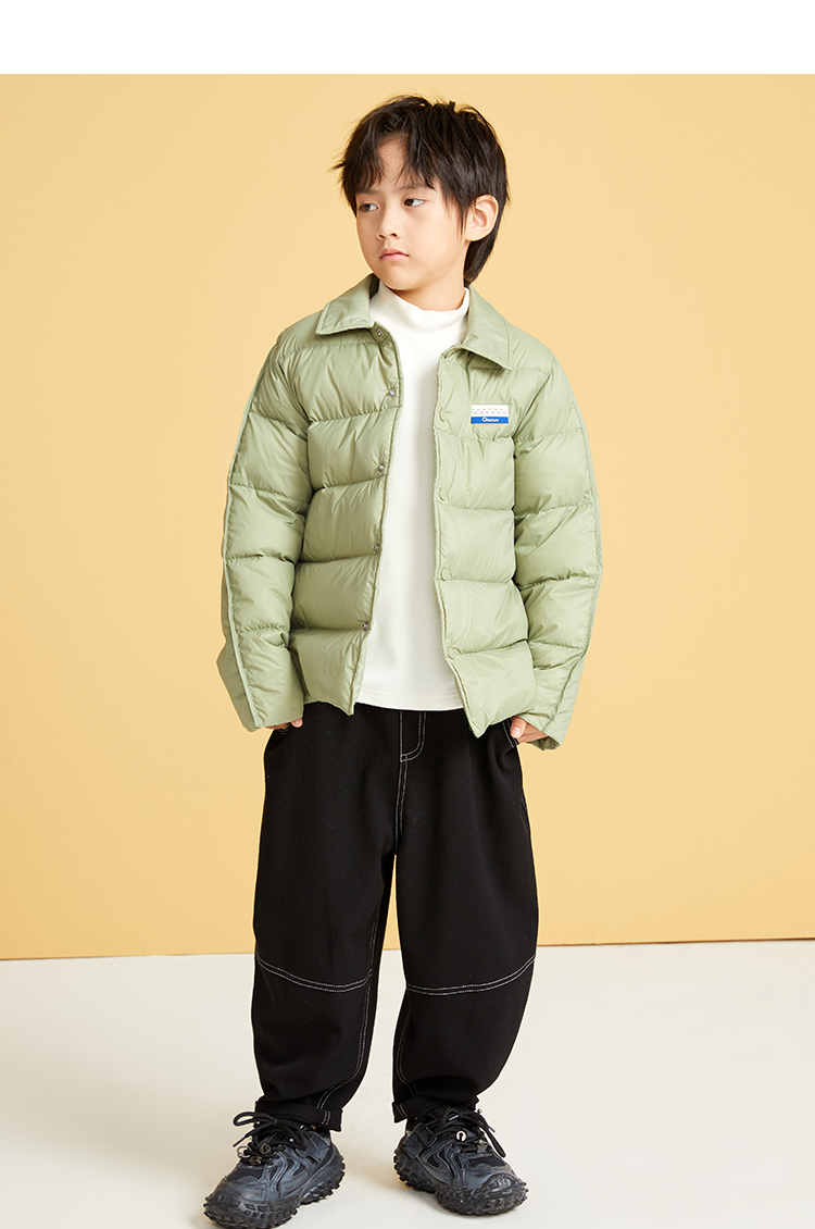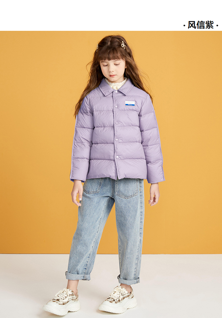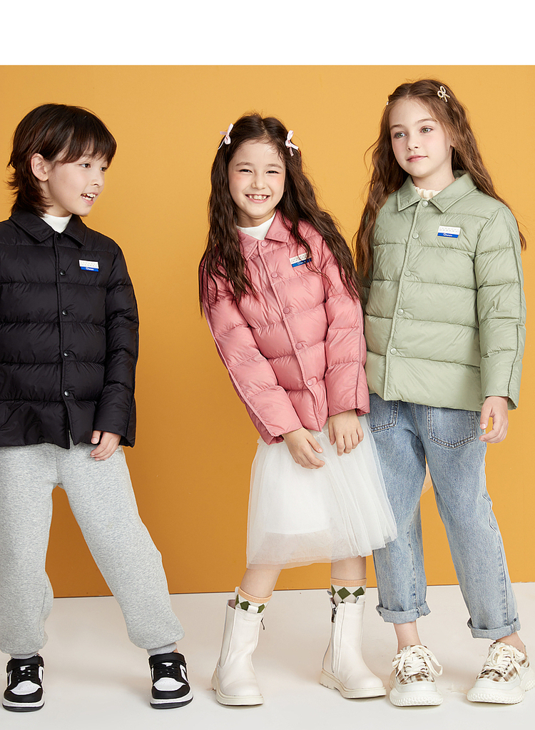 笛莎千与2024冬季新款男女童同款简约时尚衬衫式轻薄羽绒服