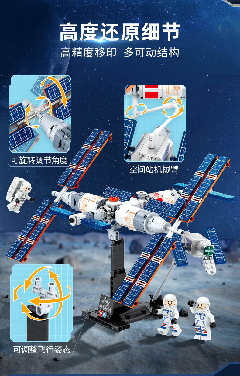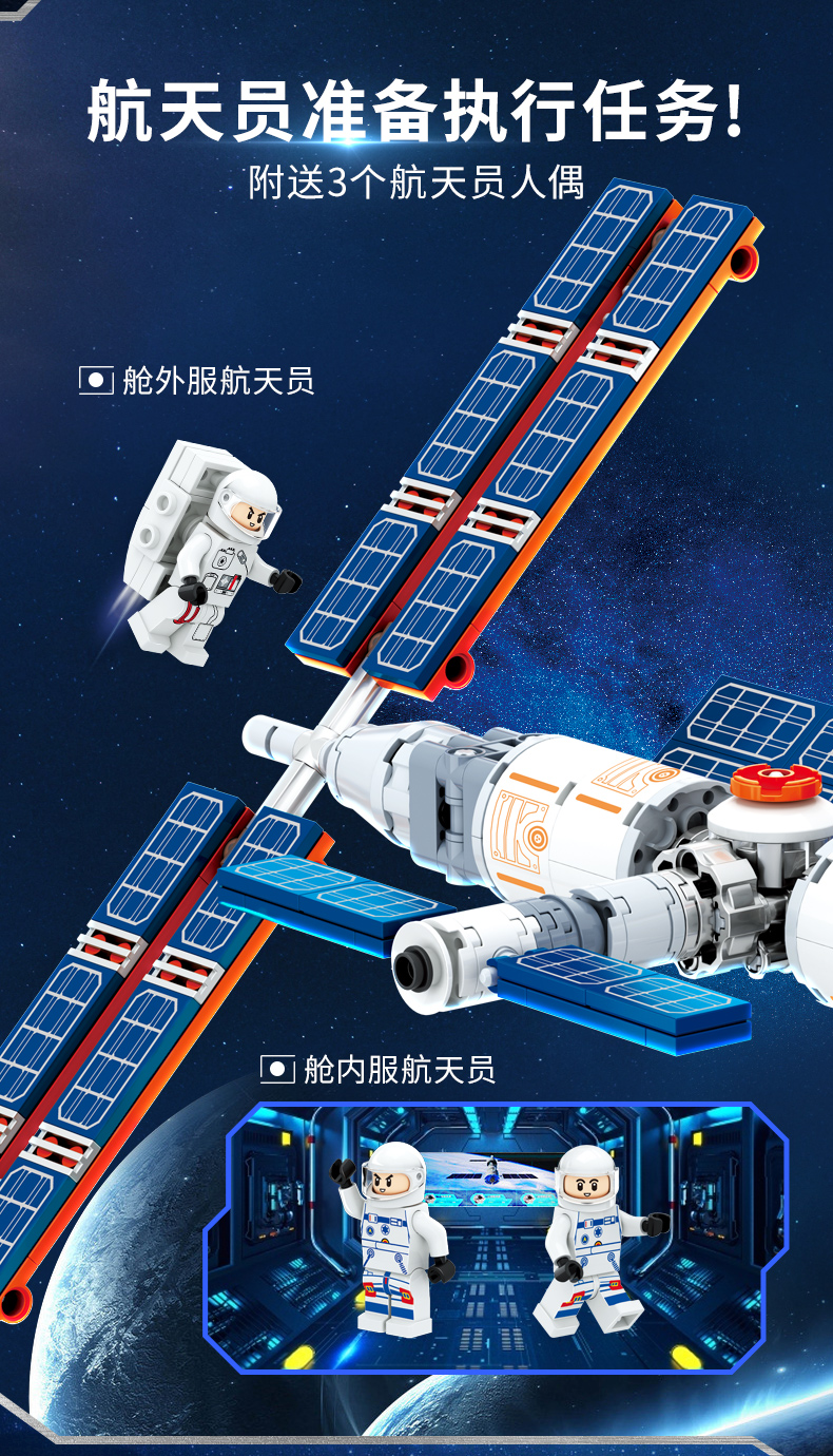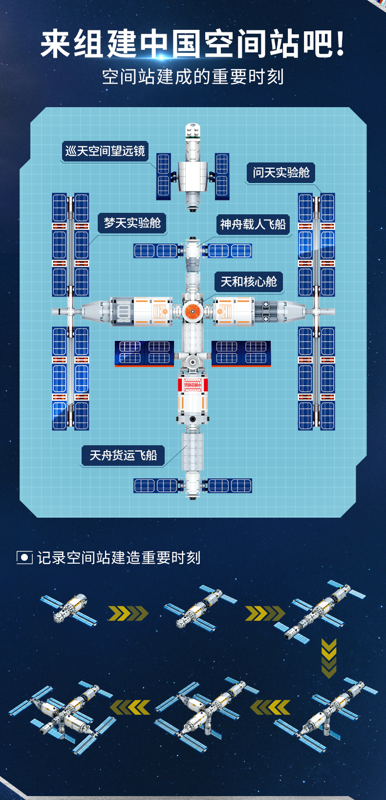 奥迪双钻(AULDEY)长征八号运载火箭积木空间站北斗卫星