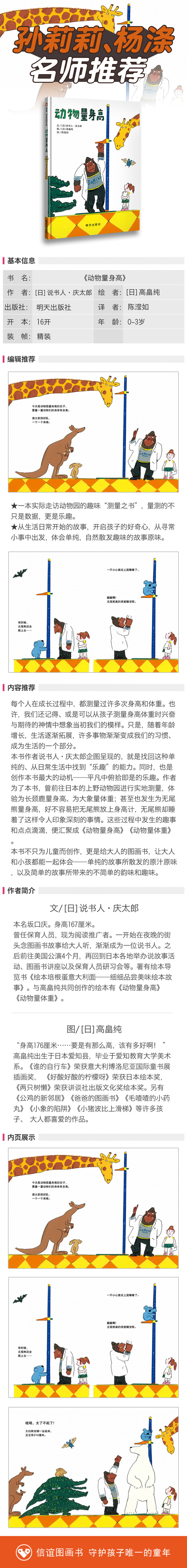 信谊 动物量身高 说书人.庆太郎 3-6岁儿童绘本 正版