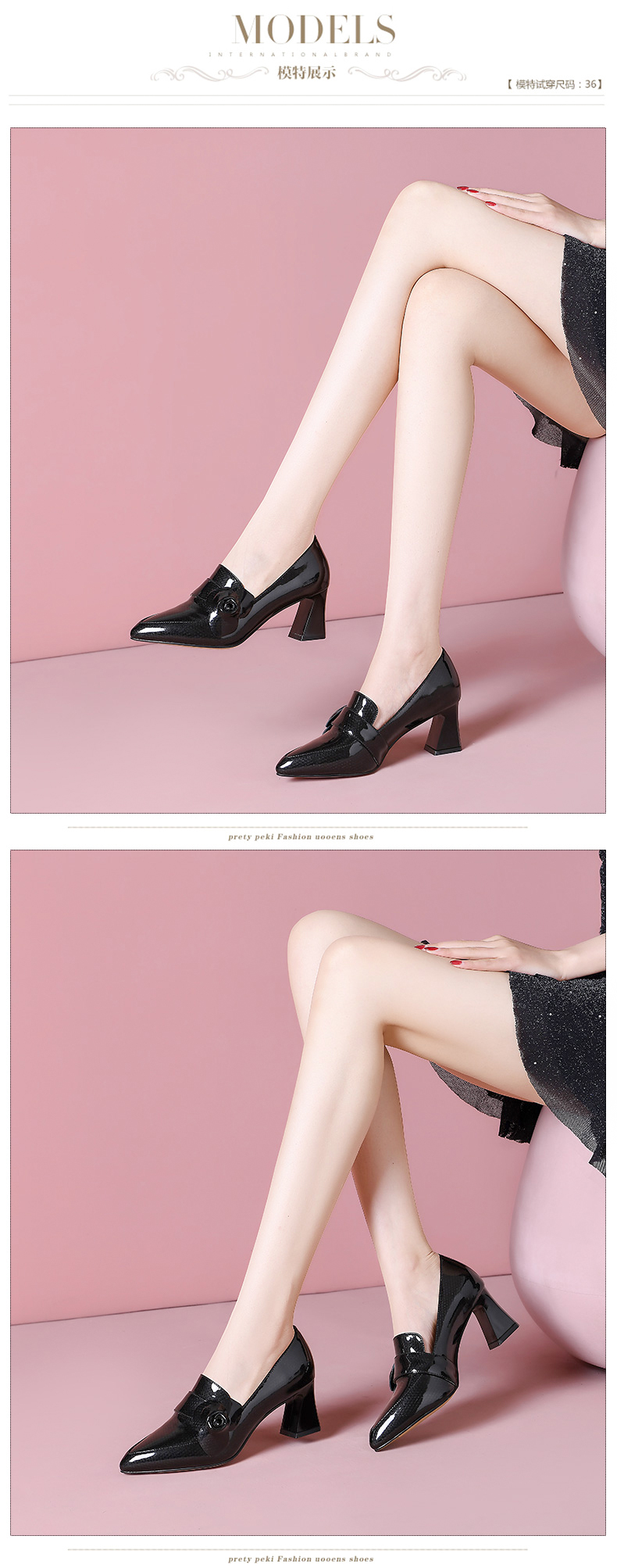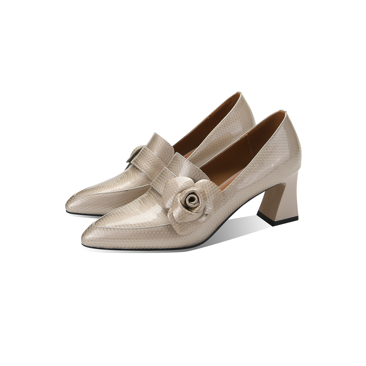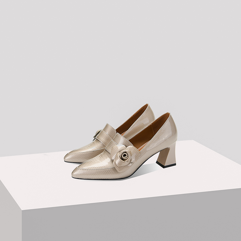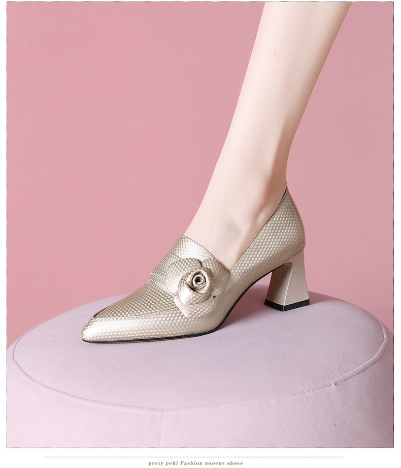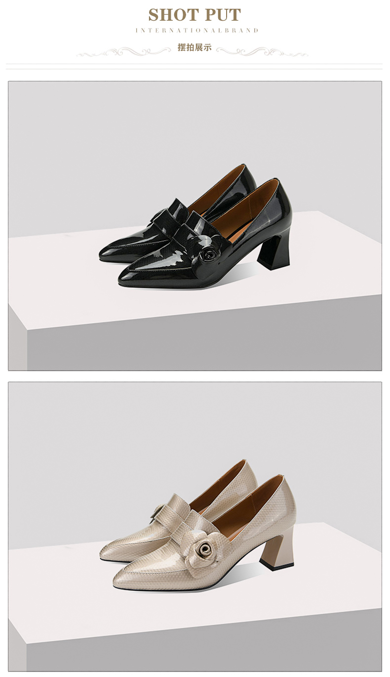 尖头粗跟高跟鞋,花朵时装乐福鞋单鞋女SY-217-125