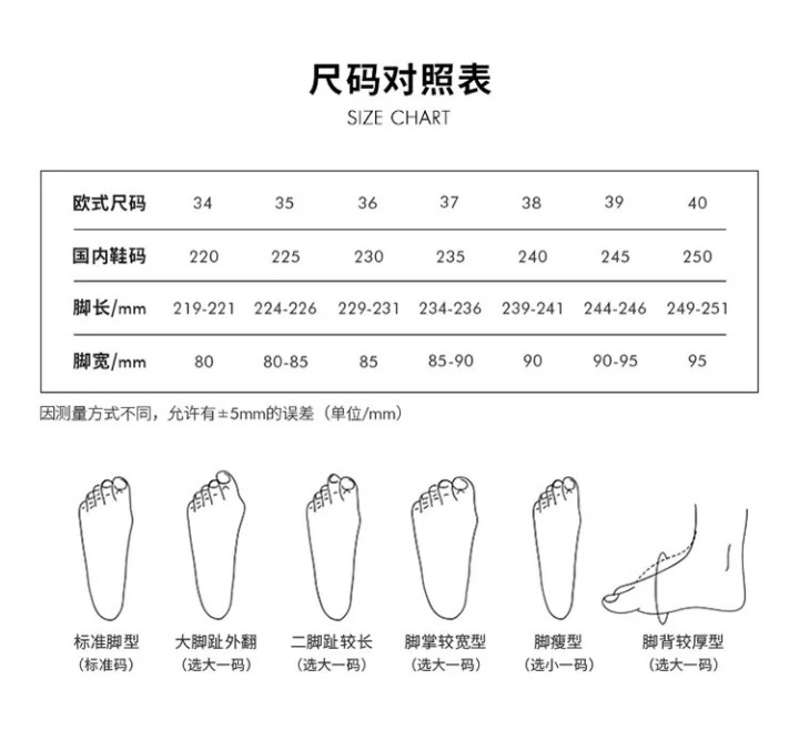 建议脚背较高,脚型肉多较宽的花粉选购大一码噢~