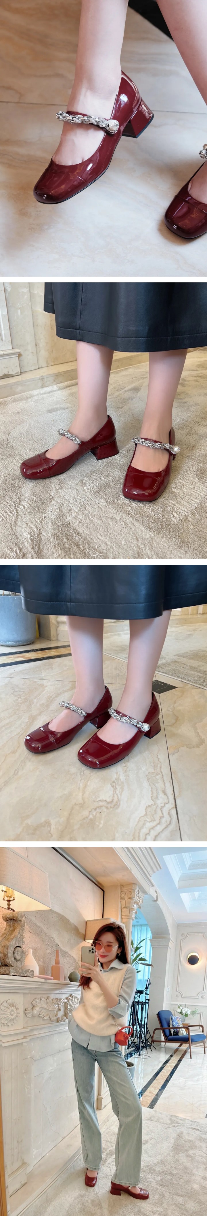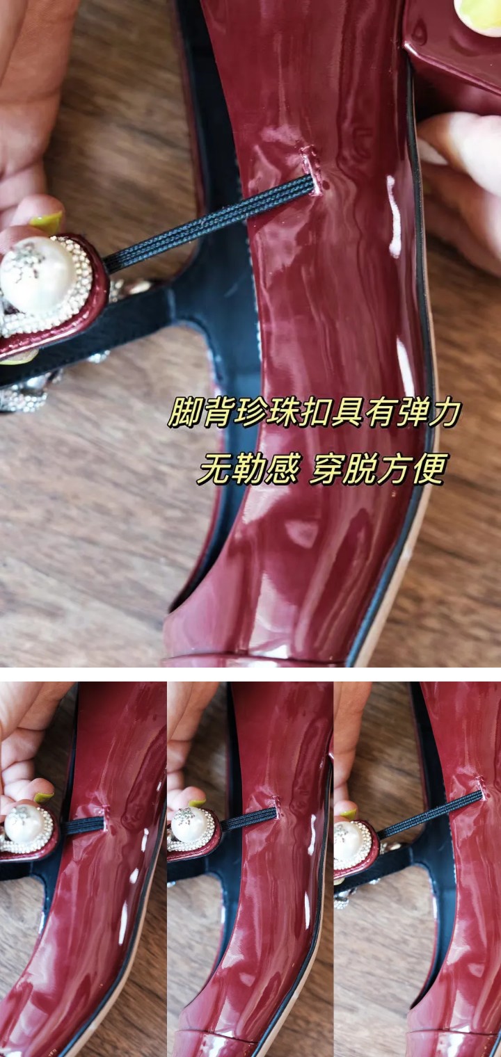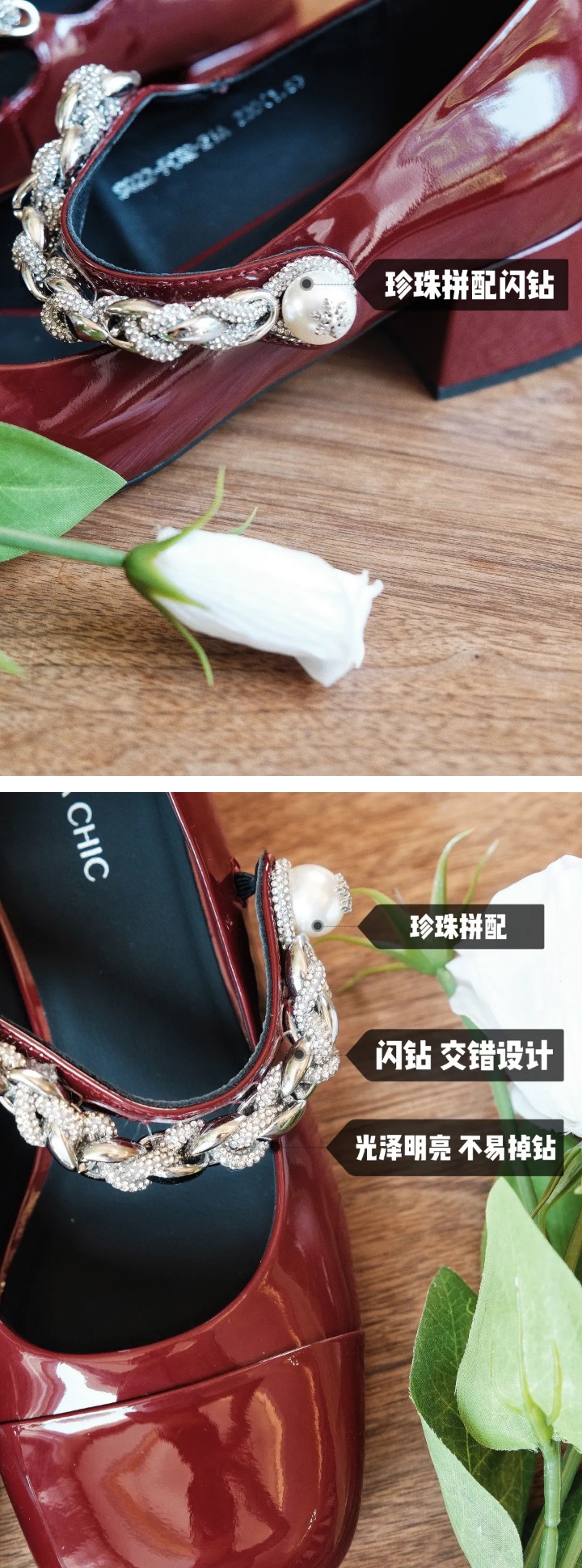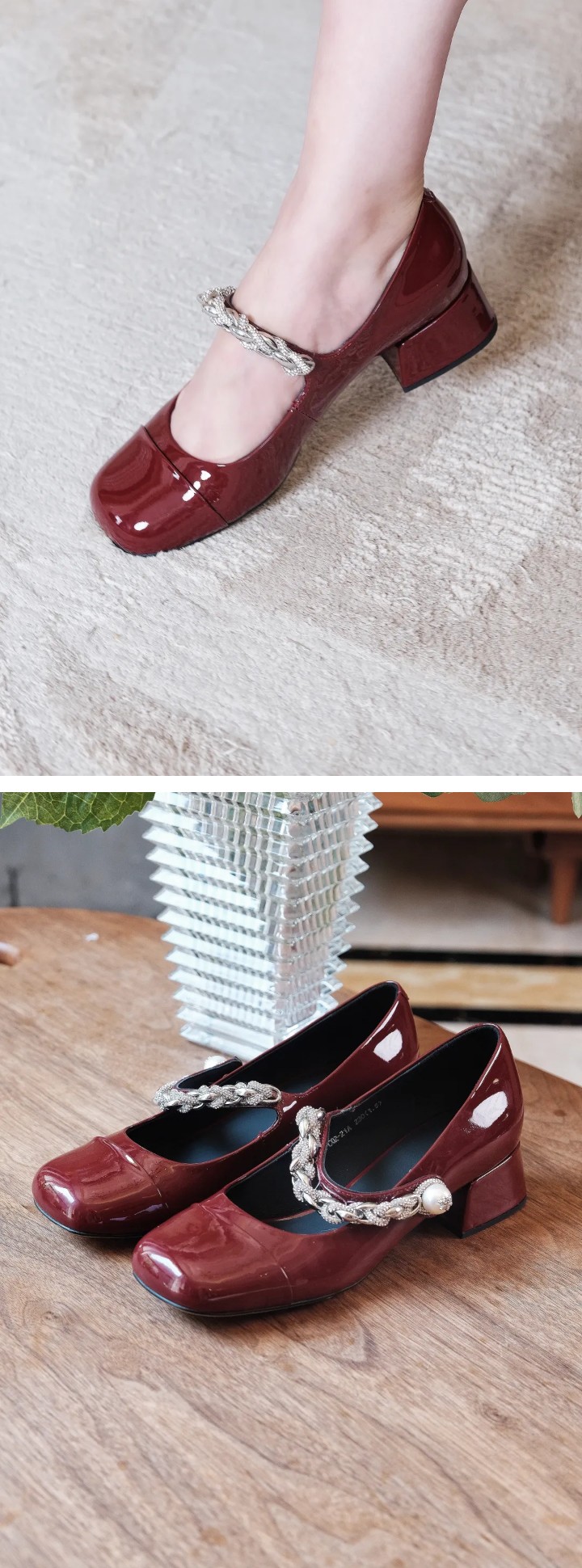 这次给大家团的有两双,一双车厘子红漆皮鞋,搭配珍珠拼配绑带,穿上立马显白一个度!无论是搭配半身裙、连衣裙还是牛仔裤,它都能很好的点亮你的装扮。甚至只需要简单的搭配,一双红鞋就完全能撑起整个搭配了,复古可爱又有女人味 !