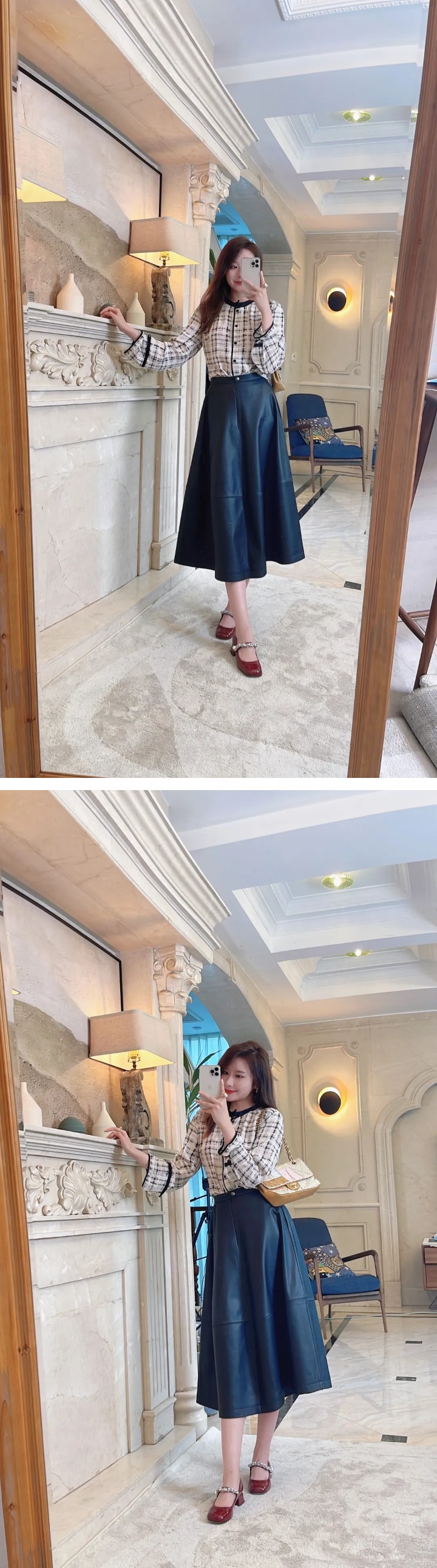 黑色小皮裙+红色漆皮玛丽珍鞋简直是绝配!