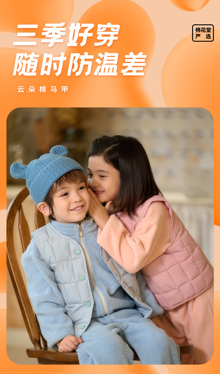 棉花堂儿童棉马甲秋装新款秋冬男童女童保暖透气小童背心坎肩