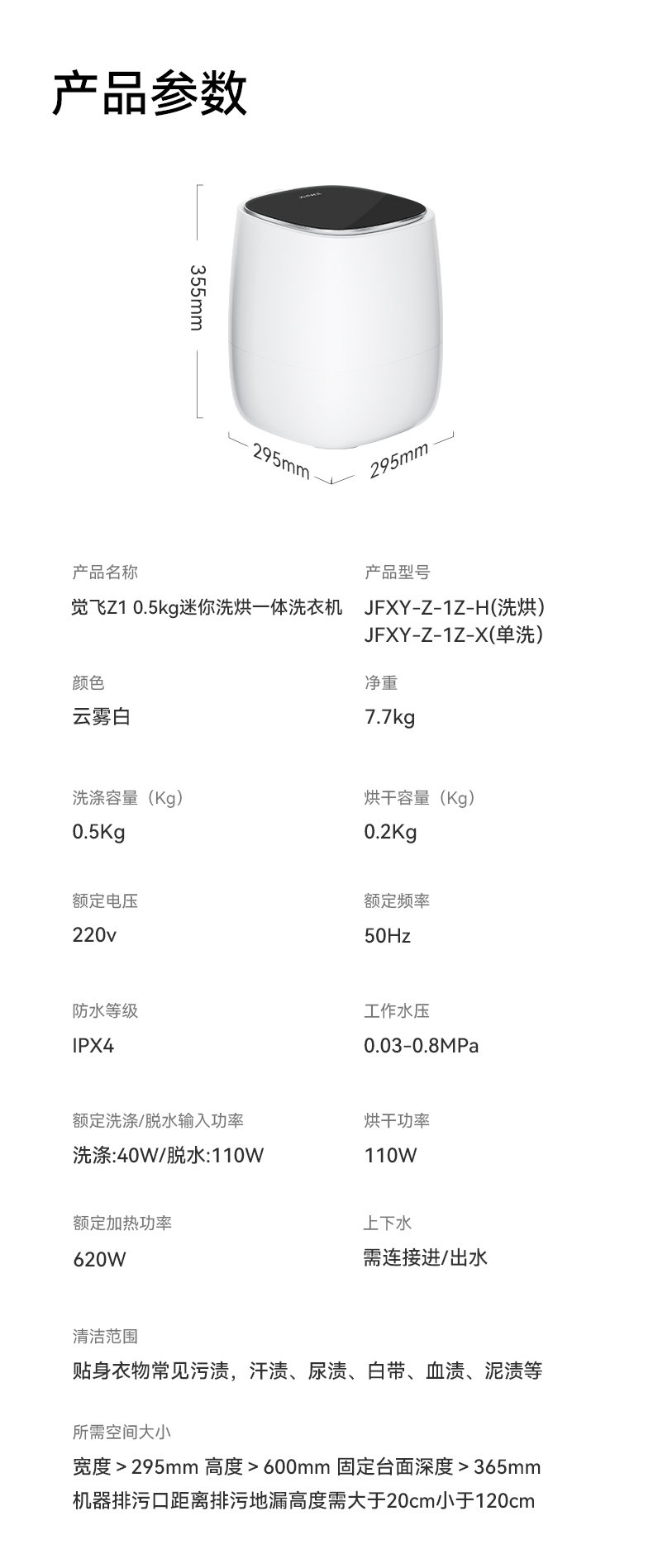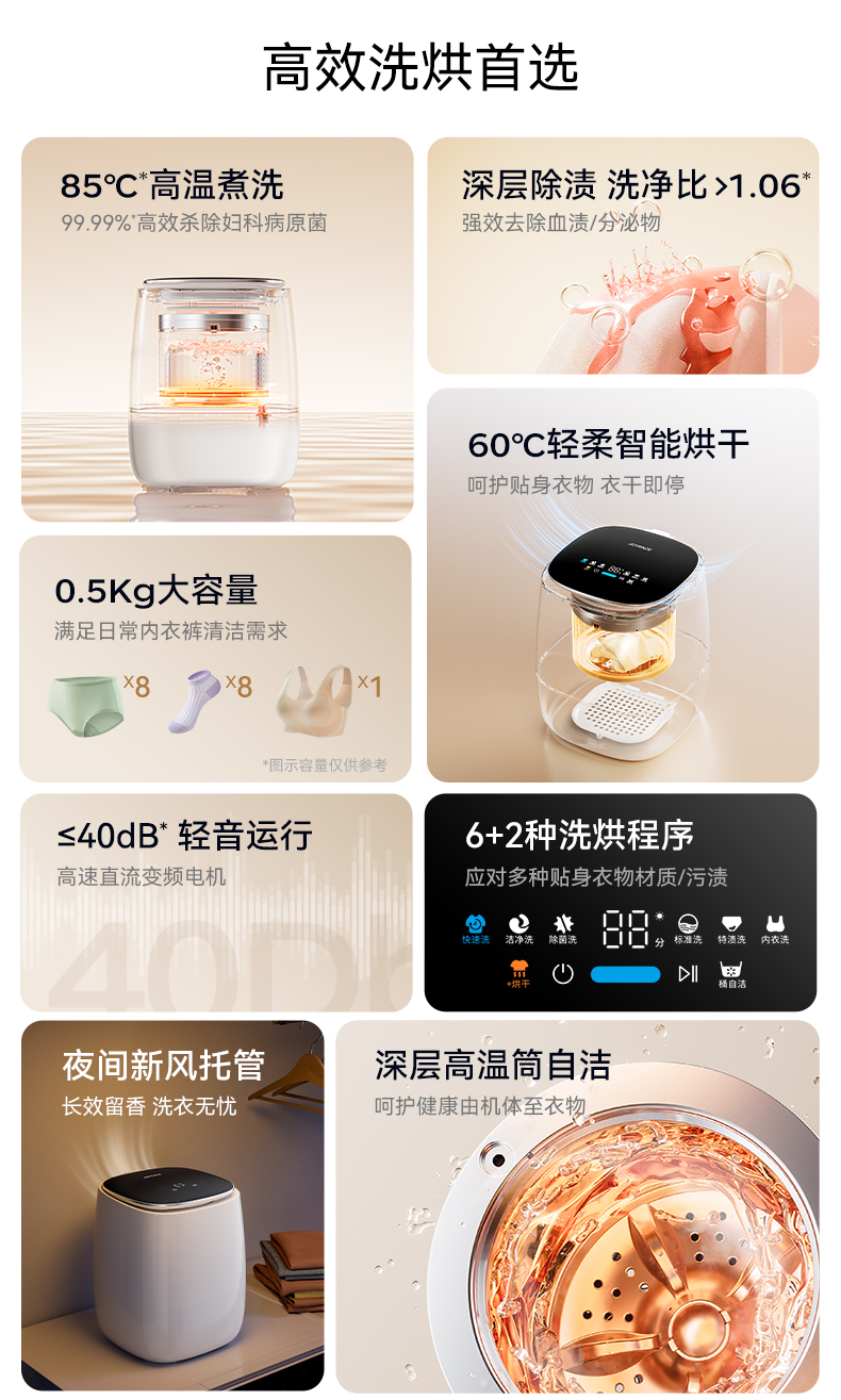 觉飞Z1内衣裤迷你洗衣机洗烘一体全自动0.5KG清洗机