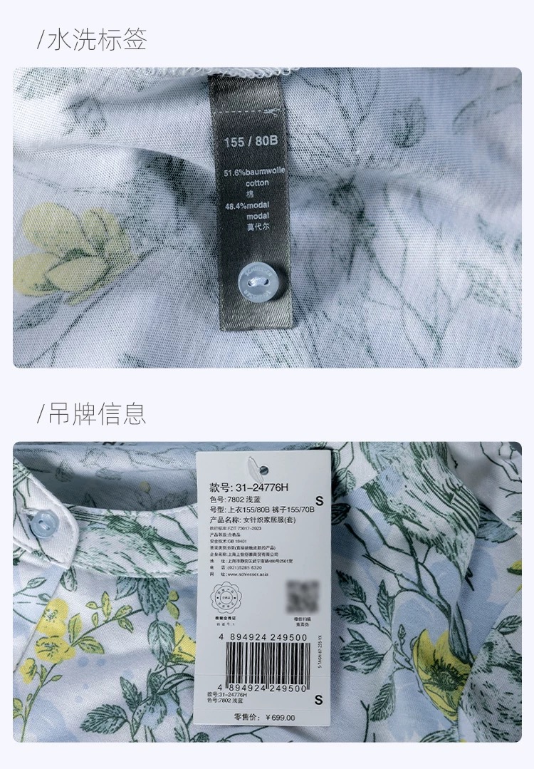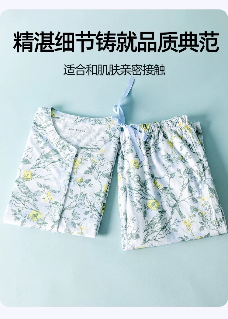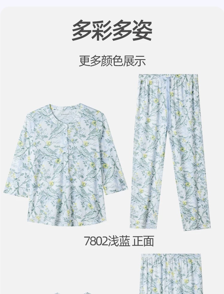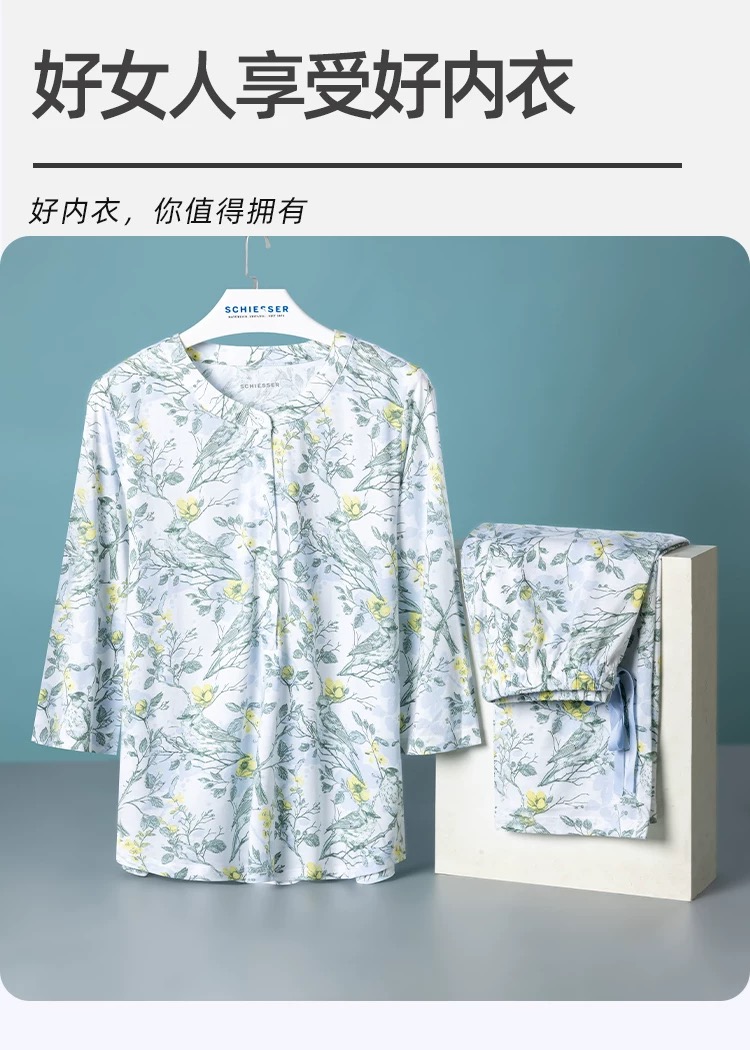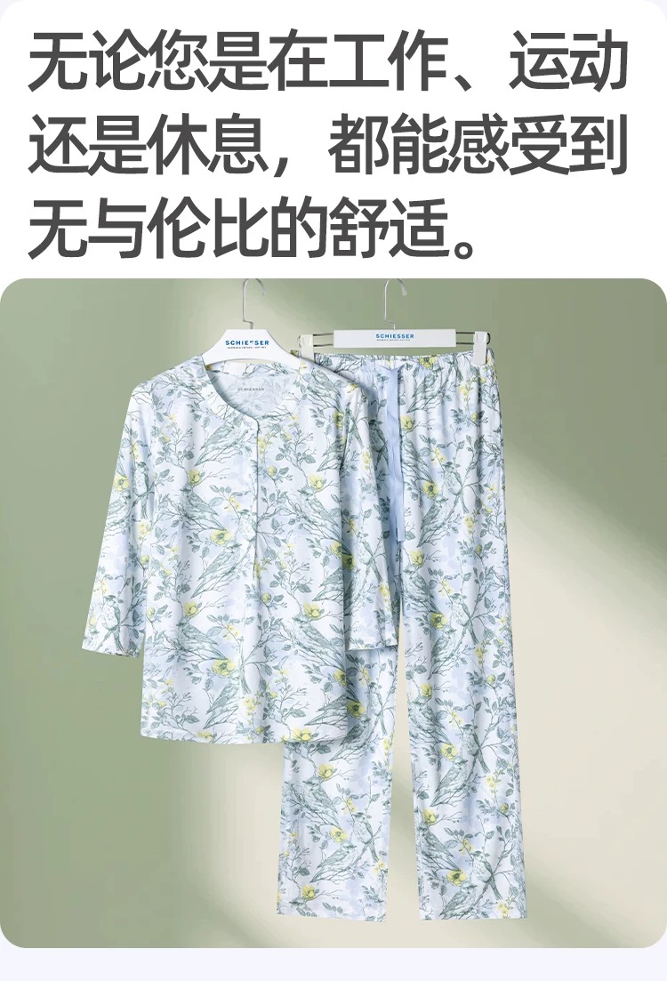 【32S棉莫】SCHIESSER德国舒雅女士七分袖套装32S棉莫单面布七分袖套装31/24776H